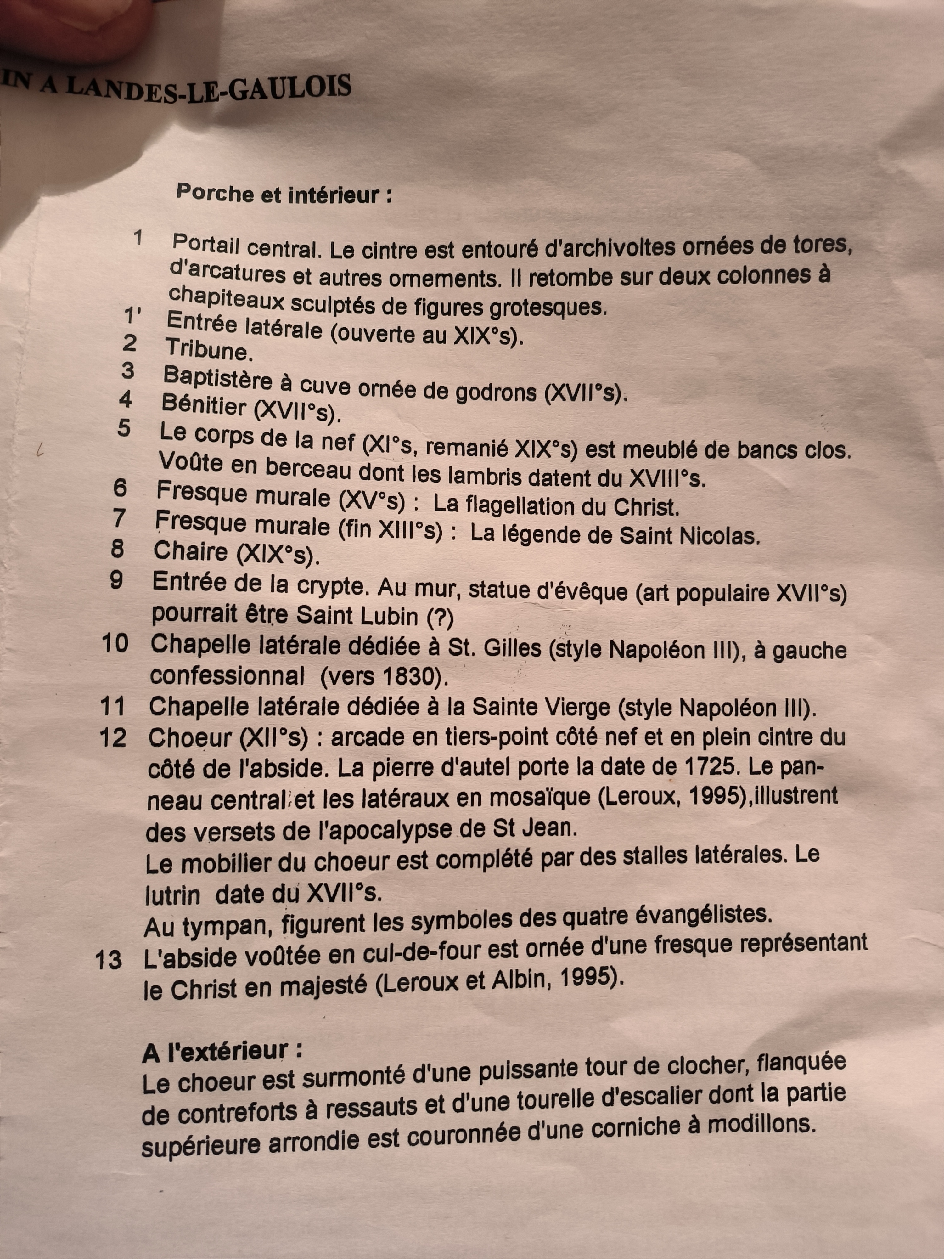 Une église du 11è, quelques décors du 13è, une crypte, deux chapelles du 19è lui ont offert un plan en croix. Protégée dans sa totalité depuis 1993 par les MH, la visite est guidée par des bénévoles ; mon guide était un homme savant et pédagogue, j'encourage chacun à faire la découverte de cet édifice millénaire. Les extérieurs sont déjà superbes, le portail Ouest du 12è est une merveille, le mur sud dont les baies ont été agrandies au 19è garde dans sa maçonnerie les arcs romans primitifs. Le clocher qui surplombe la crypte a perdu de la hauteur au 17è, les parties hautes se sont effondrées en 1970 par manque d'entretien.