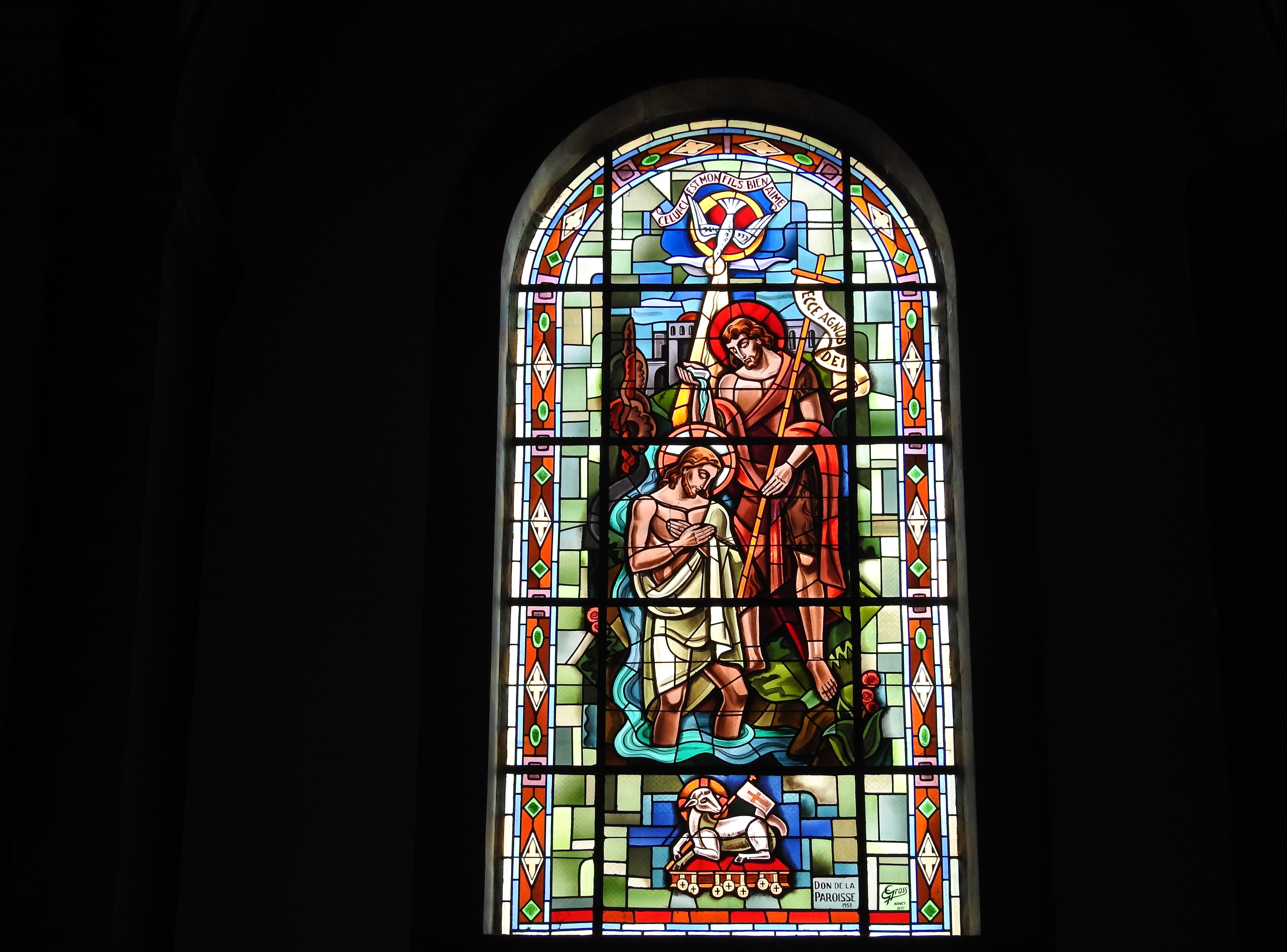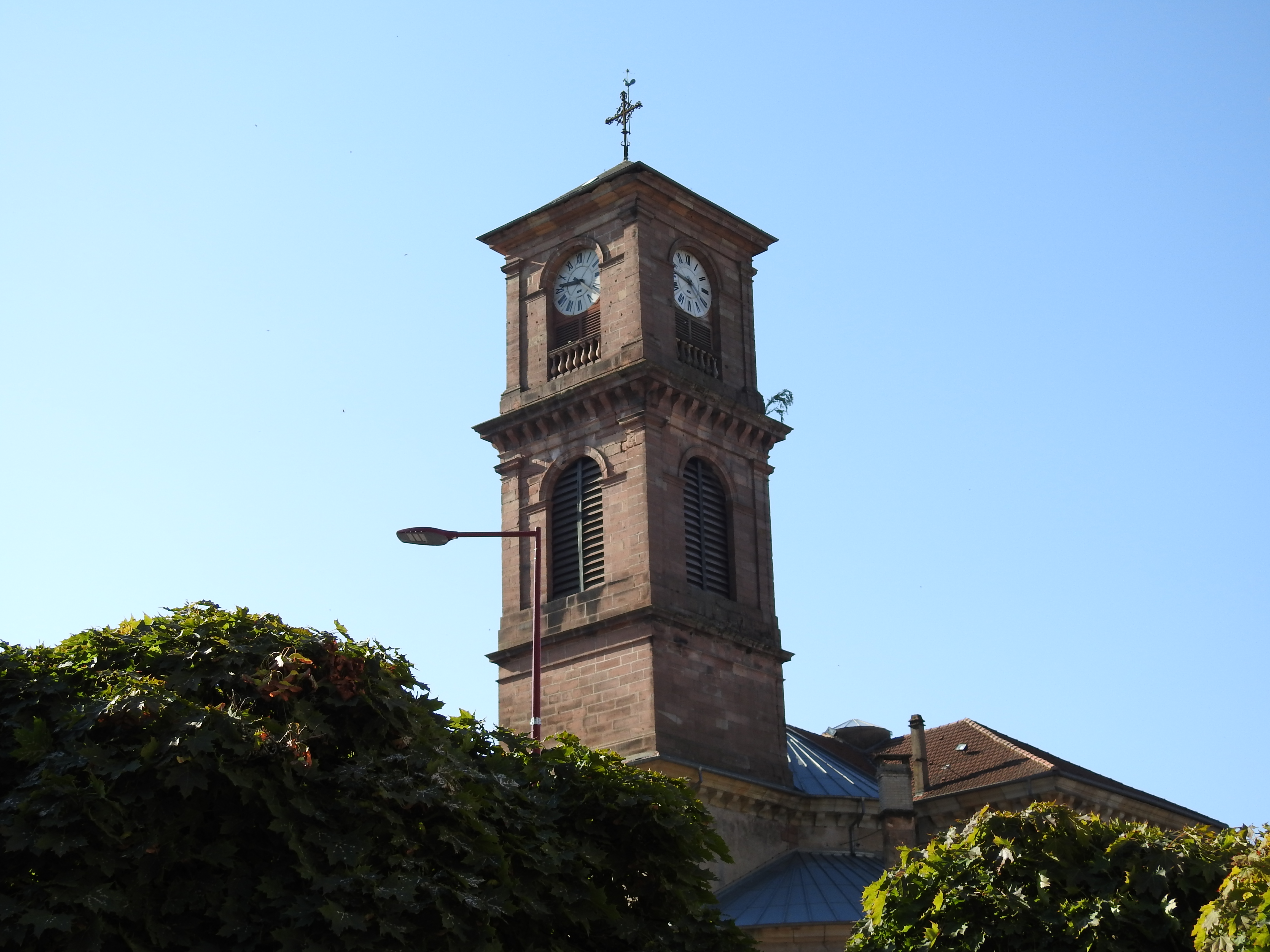Jolie église au cœur de Raon près de la Mairie au cœur du centre ville, l’église à encore les impacts de la souffrance de la guerre est depuis l’horloge est illuminé la nuit ses magnifiques.