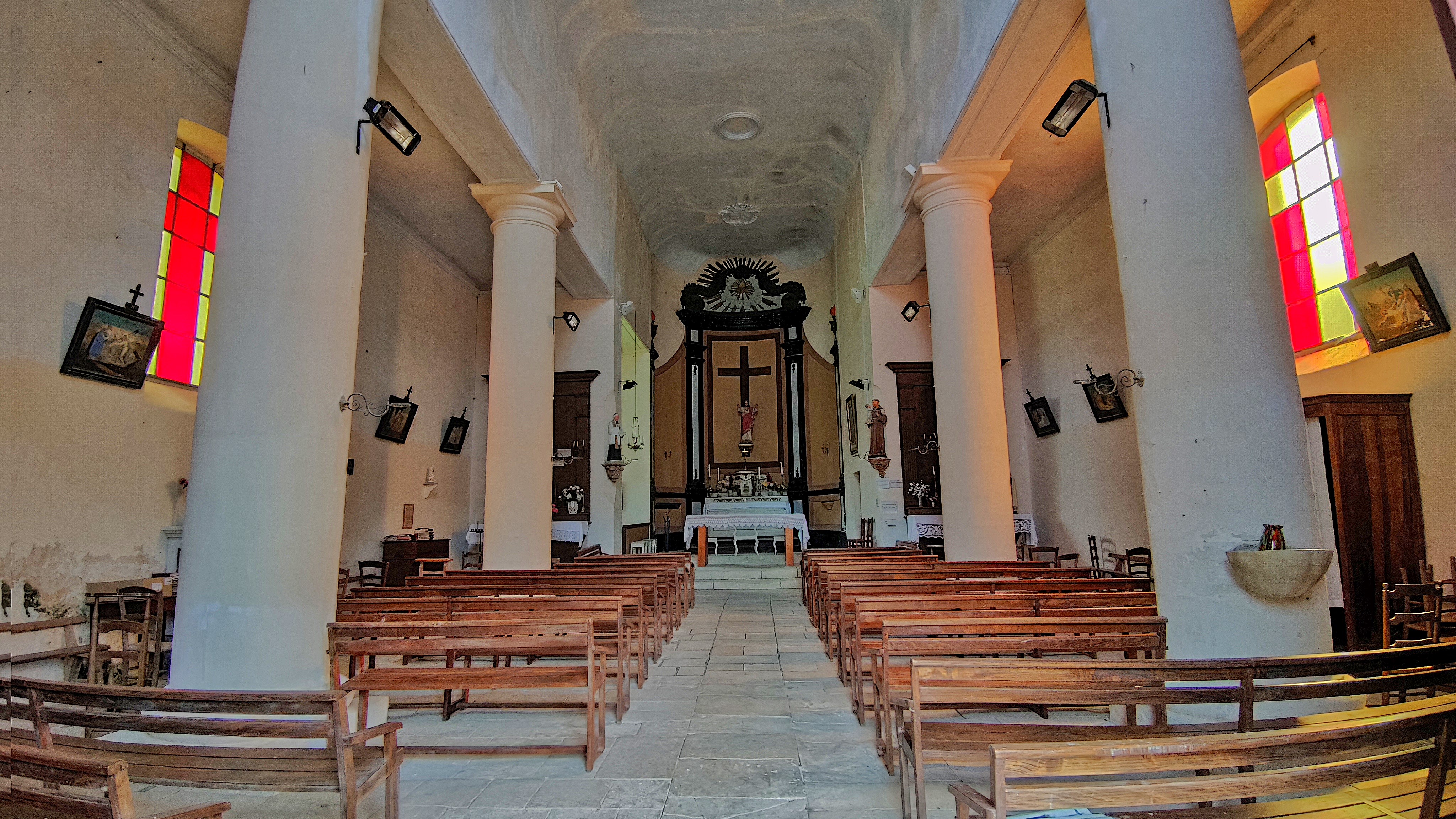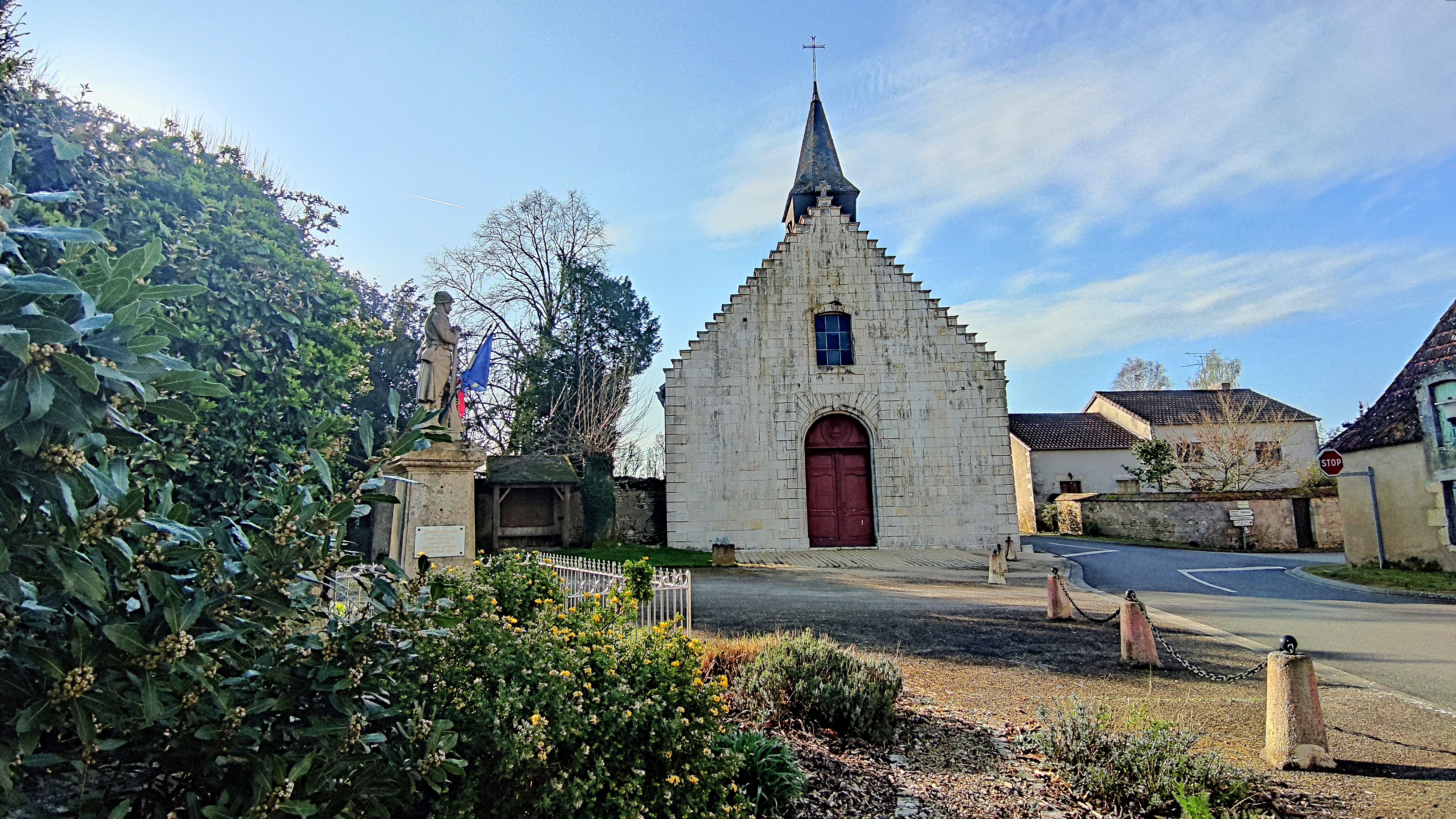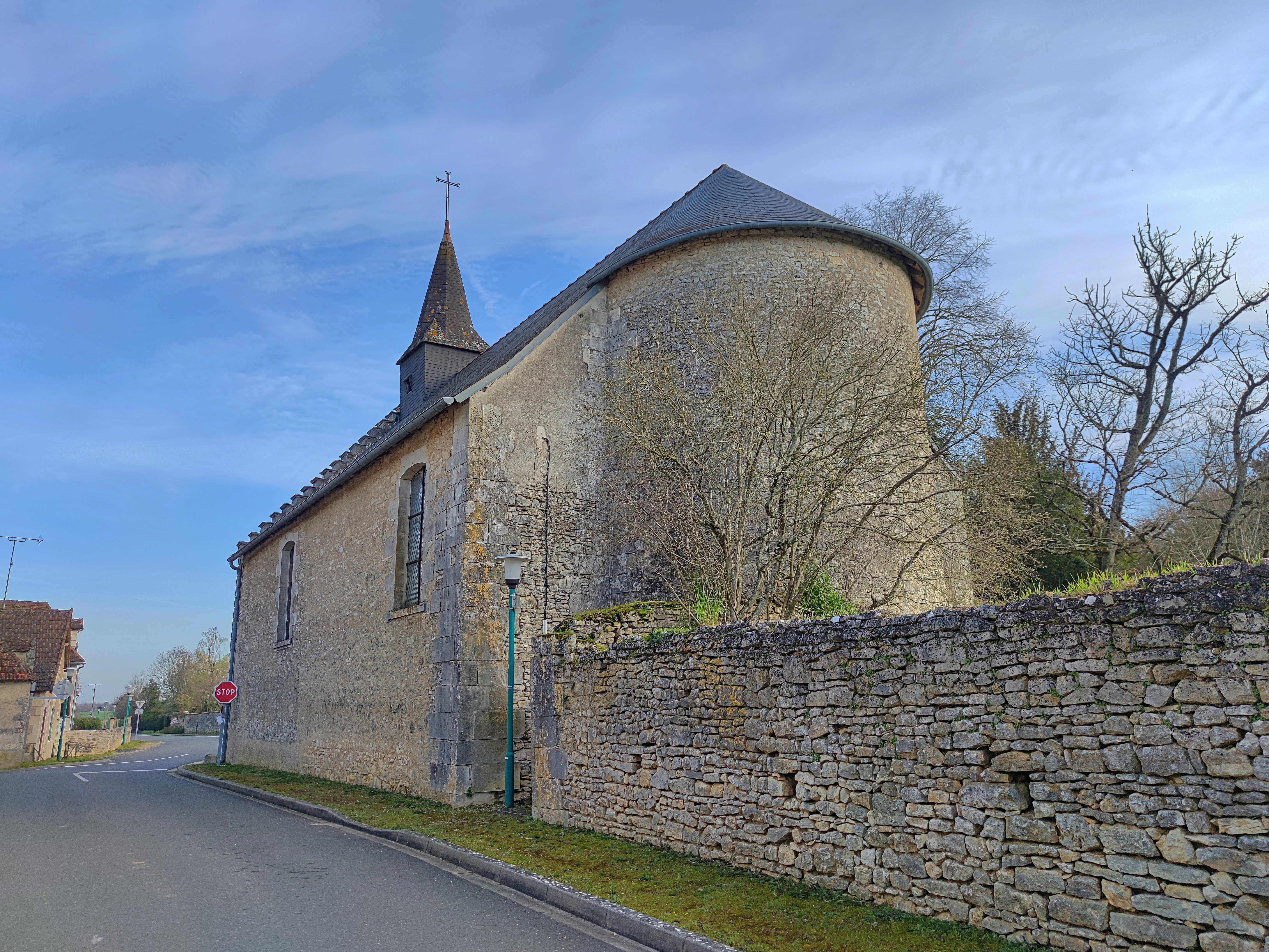 En 1782, sous Louis XVI, cette église fut construite dans le style classique, style rare dans la région proche. Jusqu'en 1782, dans ce village qui n'était pas une paroisse, les messes étaient célébrées dans la chapelle du château. Créée en 1776 à la demande du seigneur local, la paroisse vit son premier curé incarcéré et exilé par les révolutionnaires en 1792, le culte paroissial fut rétabli avec un autre curé en 1810. Cet édifice témoigne d'une histoire pré et post révolutionnaire, son architecture est un modèle de l'époque, le style a été préservé, aucune modification n'est venue ruiner son authenticité. Originale, chaleureuse et accueillante, il faut s'adresser à la mairie pour pouvoir la visiter. Sur le site PARVIS du diocèse de Poitiers, un PDF propose de nombreuses informations, sorte de visite guidée impérative pour mieux comprendre l'histoire de cette église.