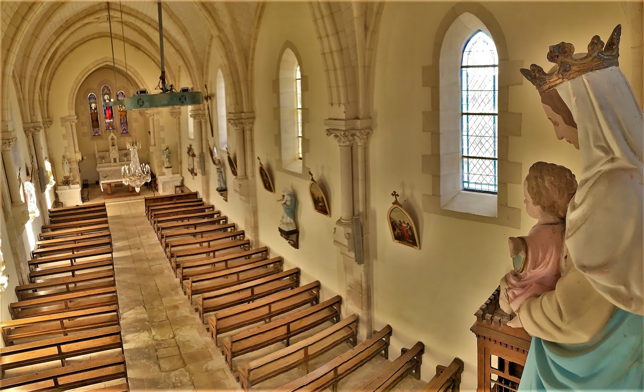 L'église Saint-Maixent est un édifice du 19ème siècle qui a remplacé une église du 12ème siècle en ruine. C'est un monument néogothique, tel qu'on les construisait, parait-il, au 17ème siècle. Pour visiter, il faut s'adresser à la mairie, située à côté. C'est une église en bon état, fort accueillante, bien mise en valeur, et point de repère historique dans les hauteurs du village. Elle n'a rien d'exceptionnel, mais une certaine harmonie préside, démontrant que l'art et la beauté sont expressions de la foi dans les églises catholiques.