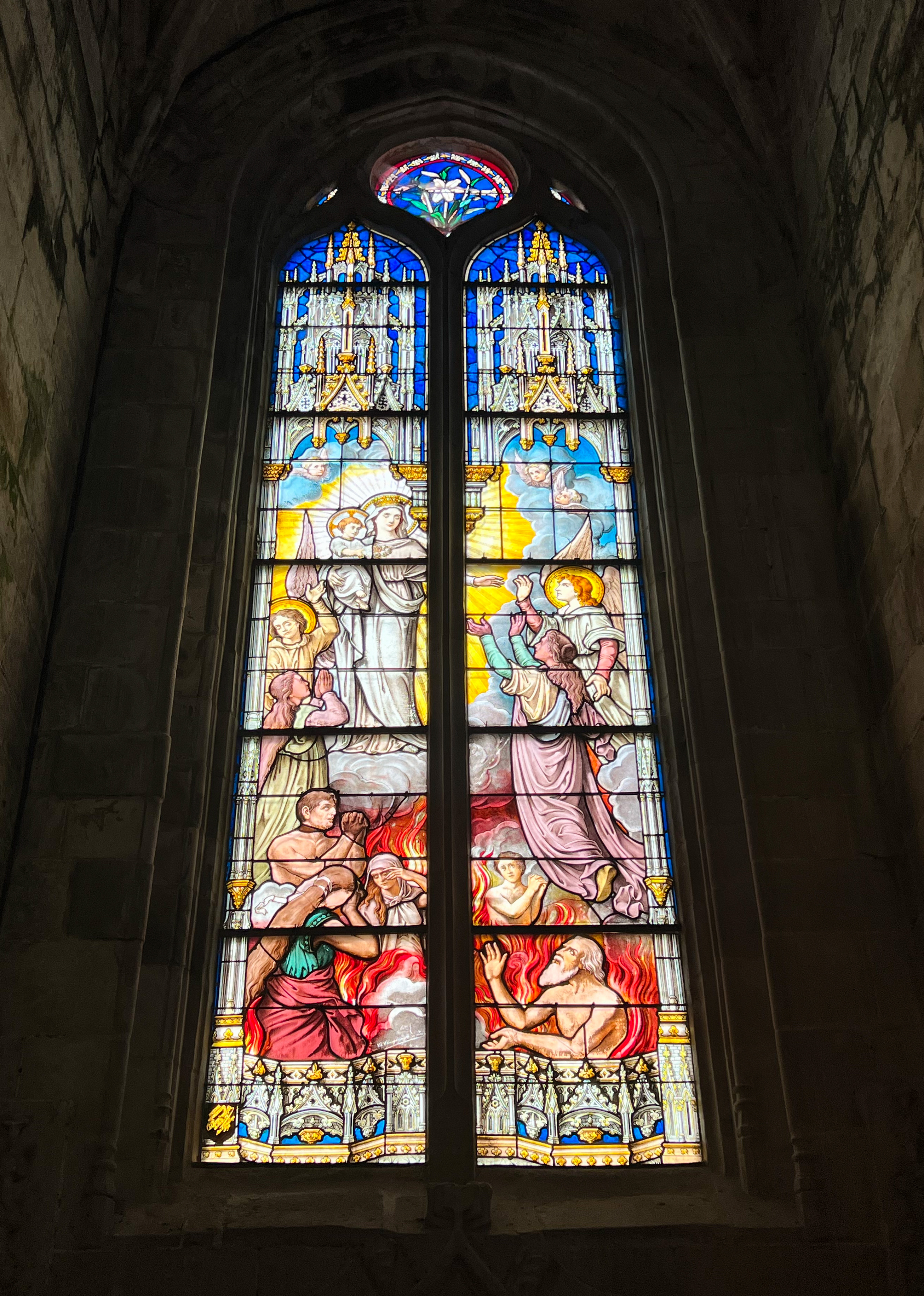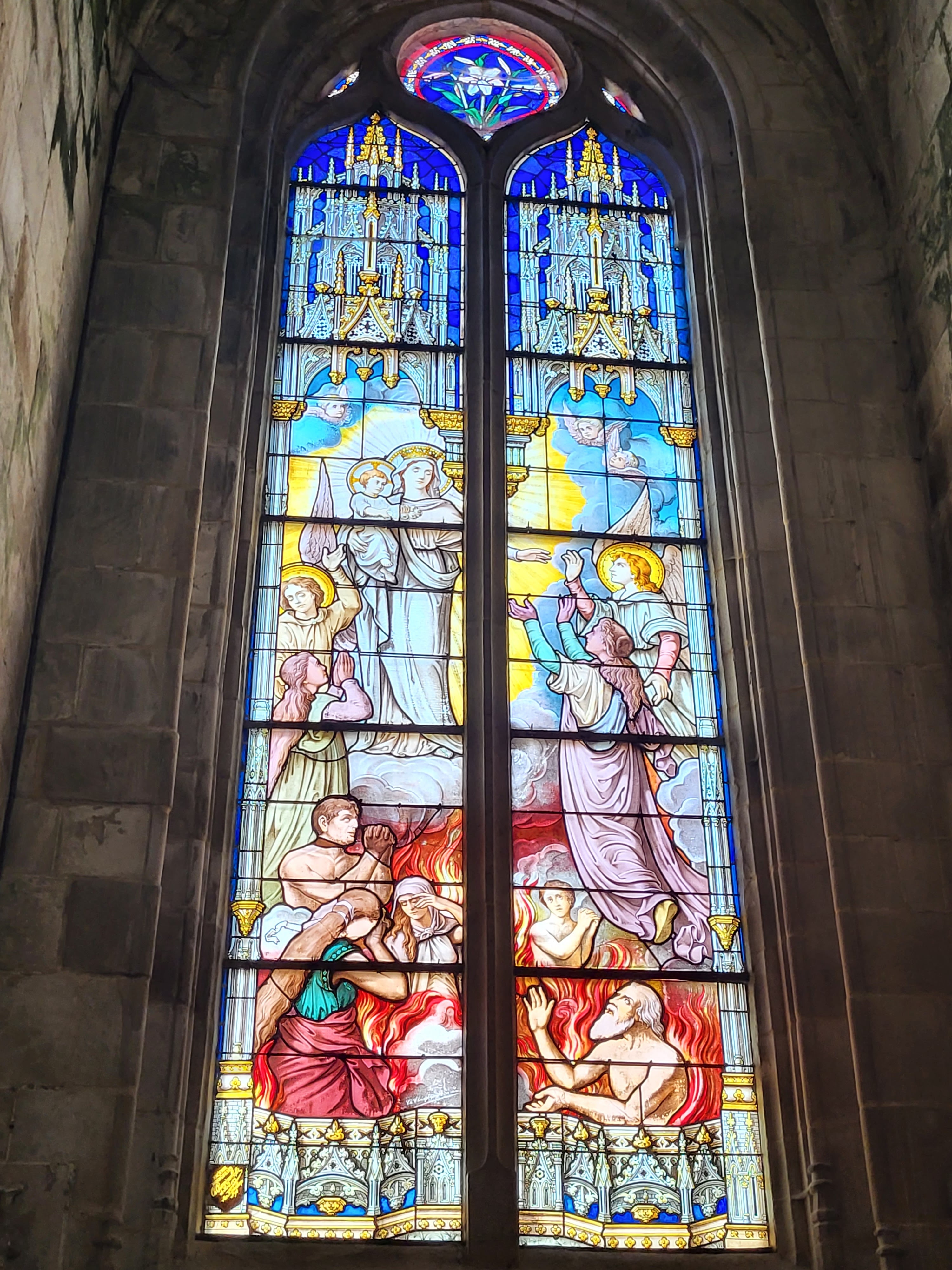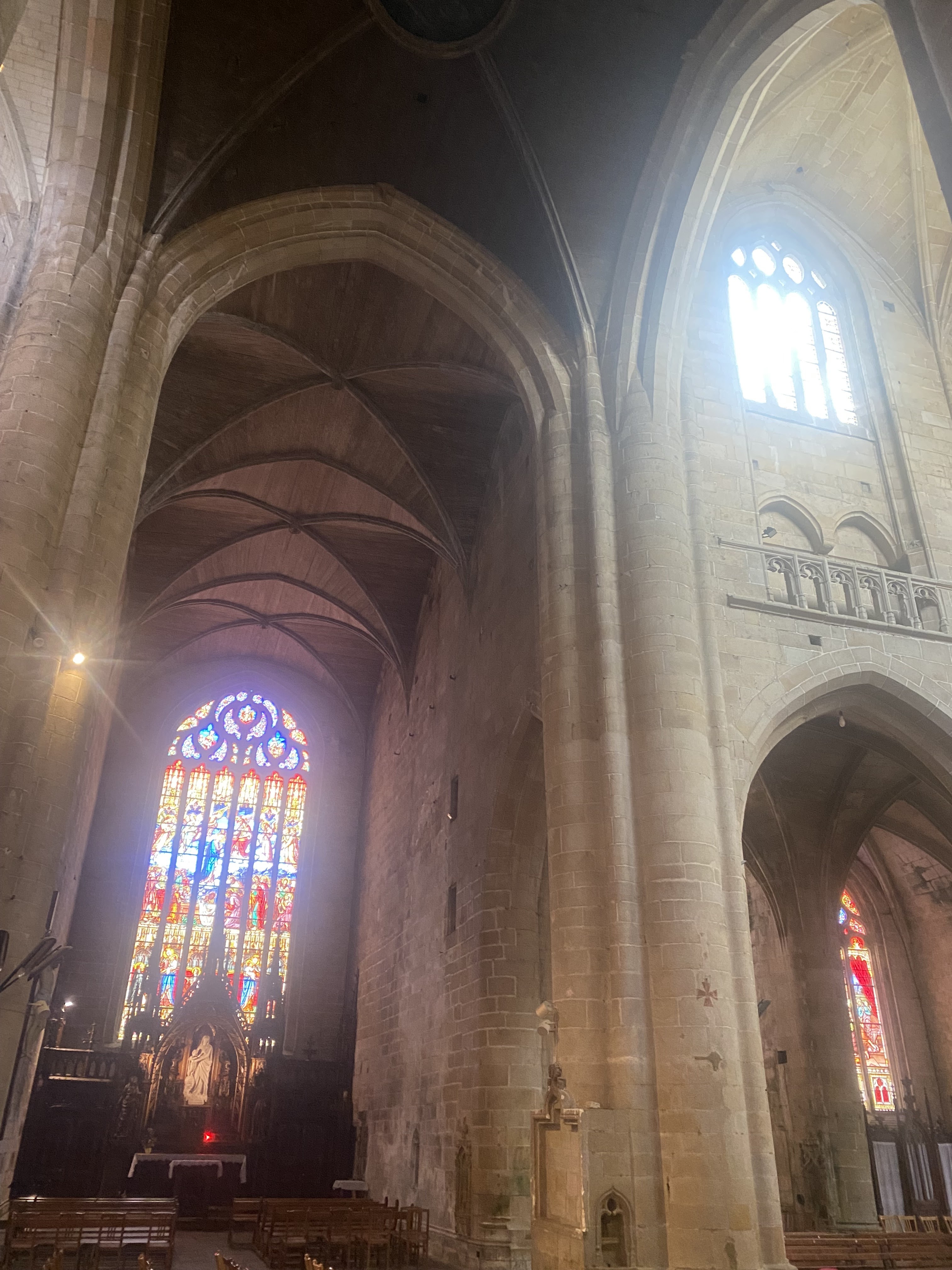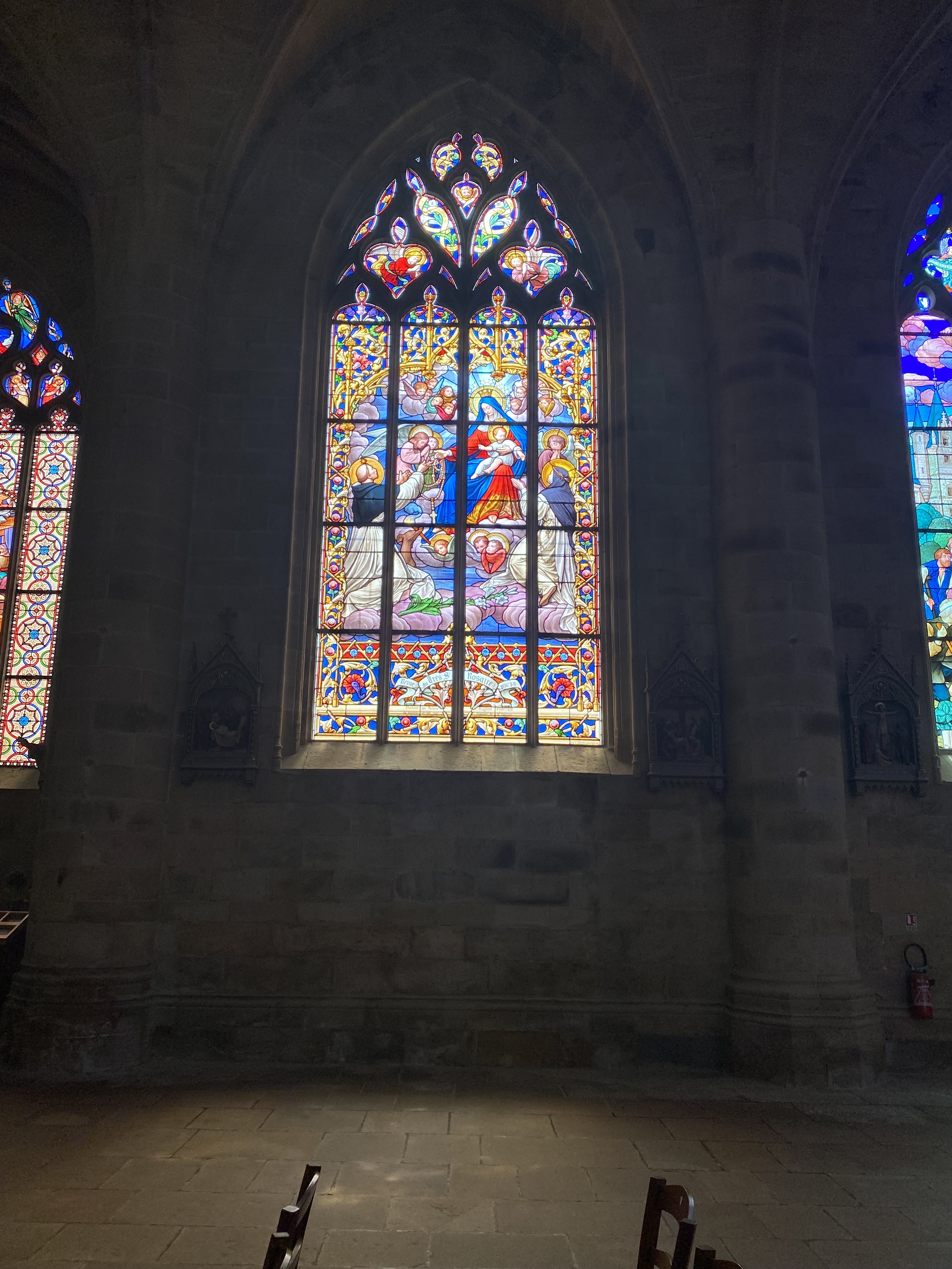 Cette église est magnifique question architecture intérieure et extérieure compris c'est une des plus belles que j'ai vu ,des vitraux superbe de toutes les couleurs et ça fait comme des projecteurs de toutes sortes de couleurs à l'intérieur