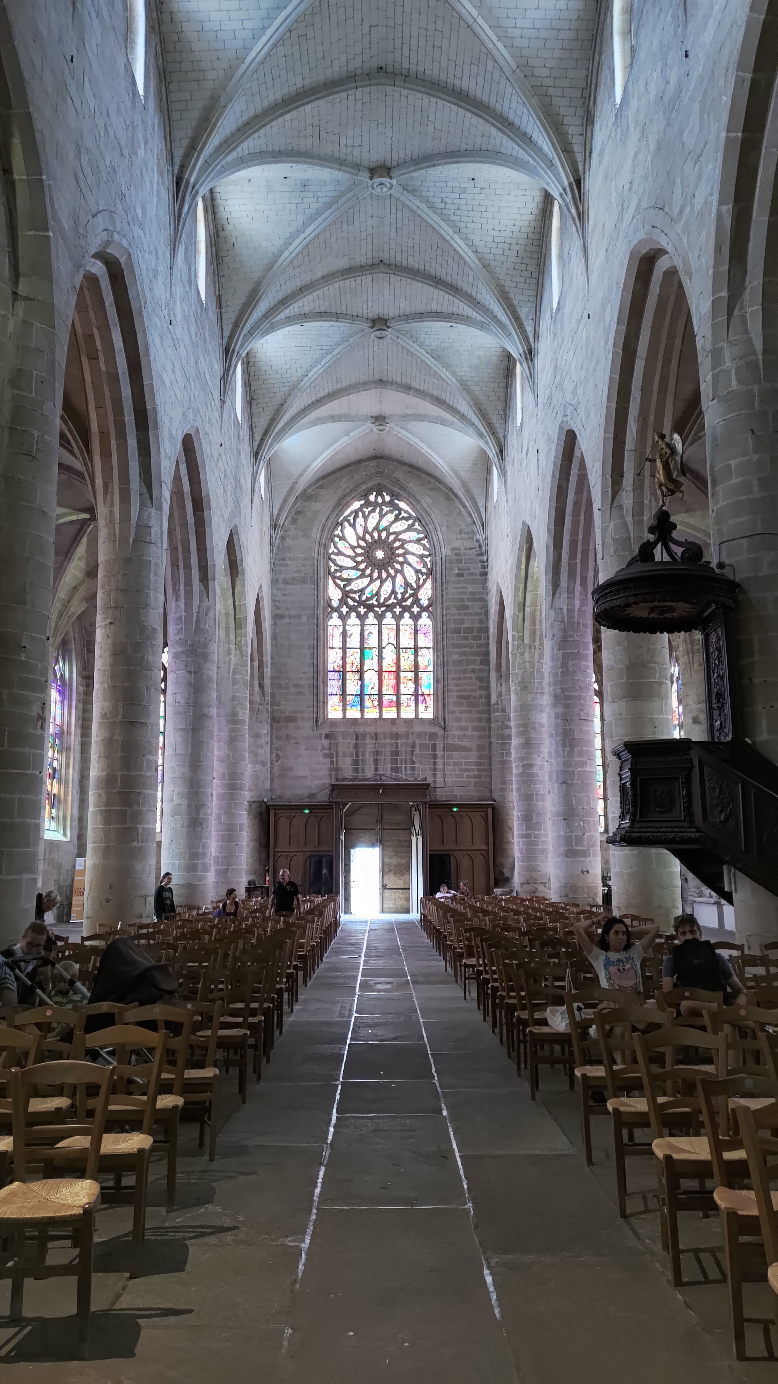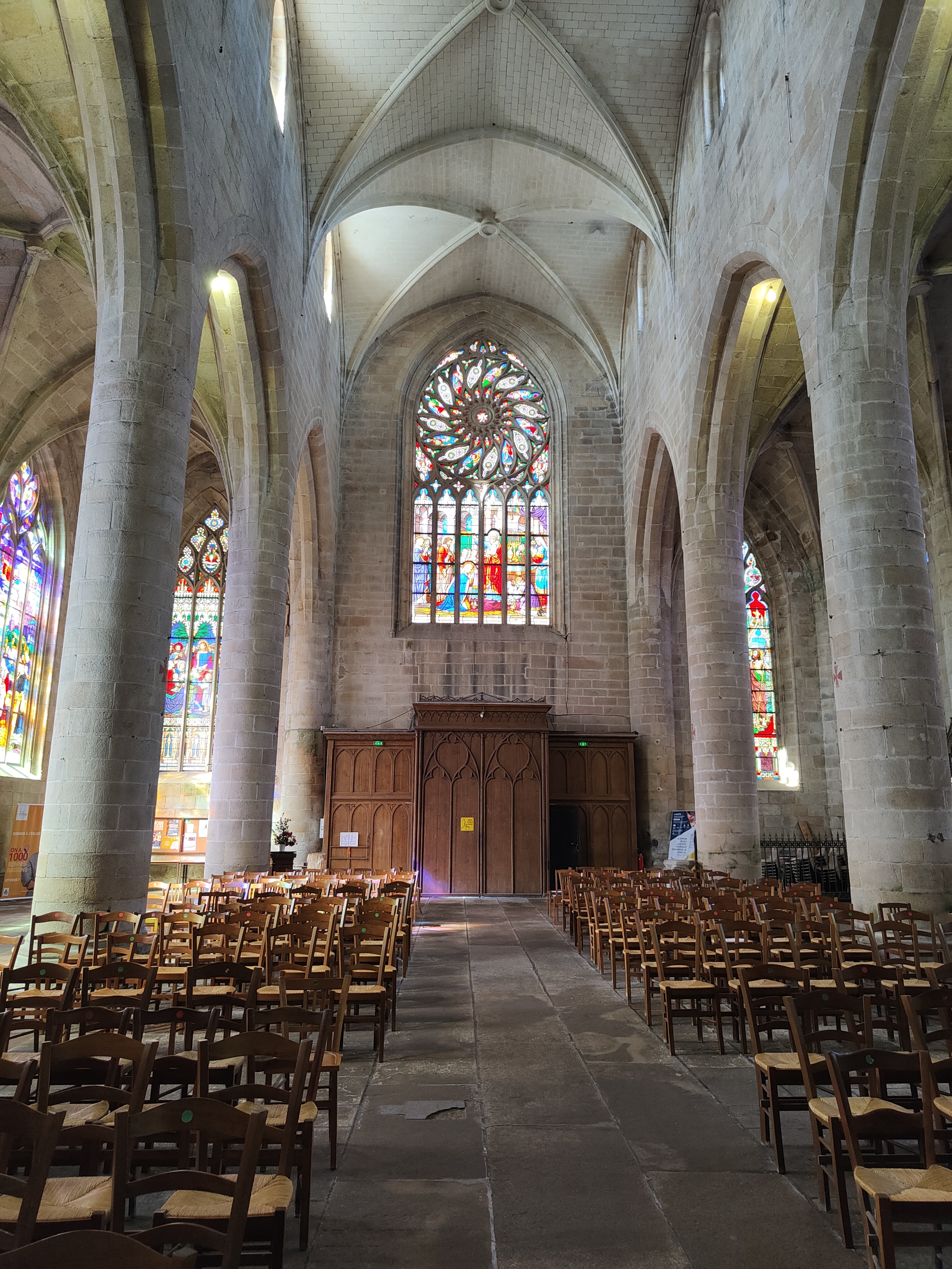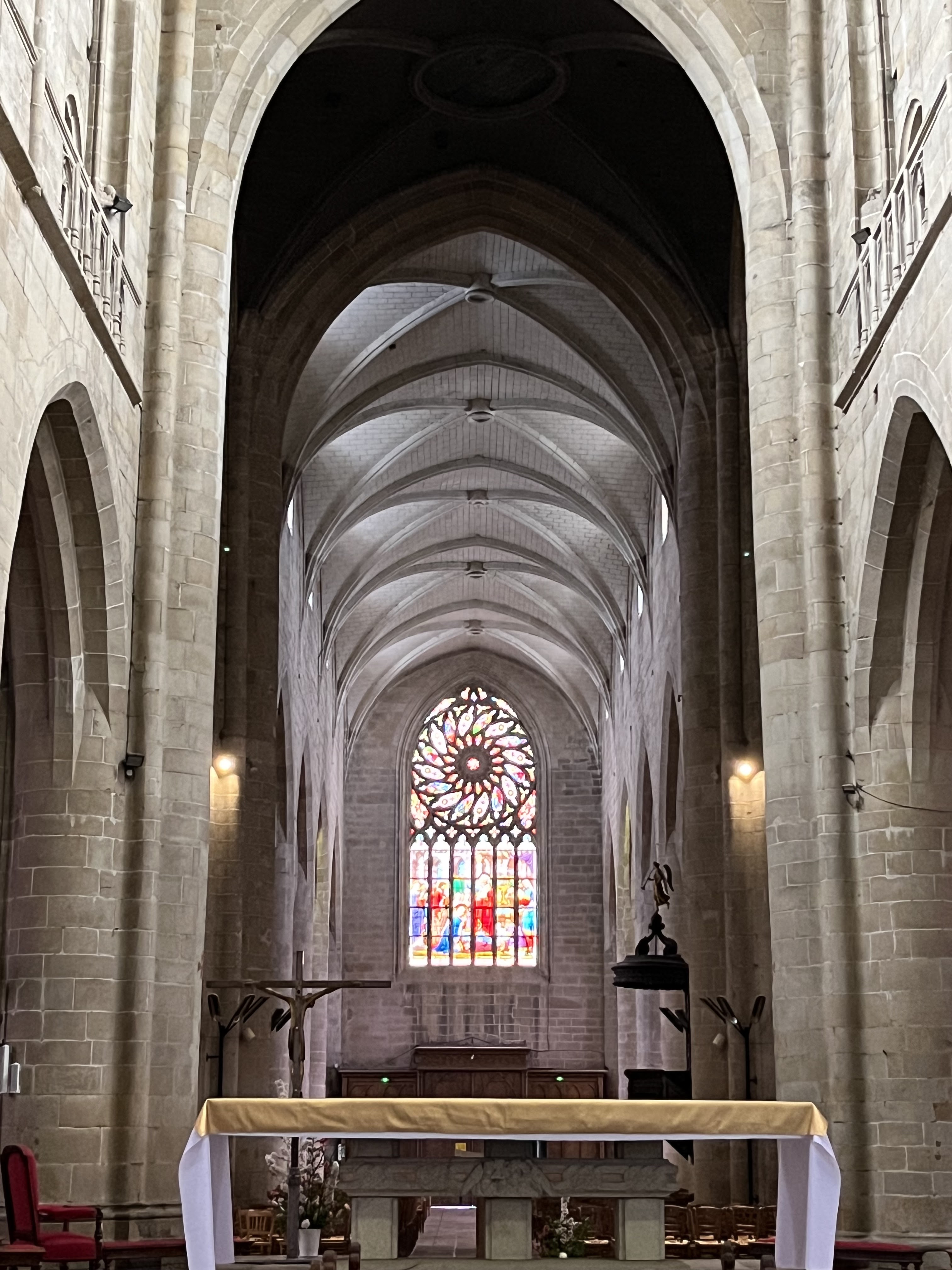 Imposante, à l'intérieur belle avec ses vitraux, et pourtant une froideur se dégage... C'est très beau avec une atmosphère particulière.