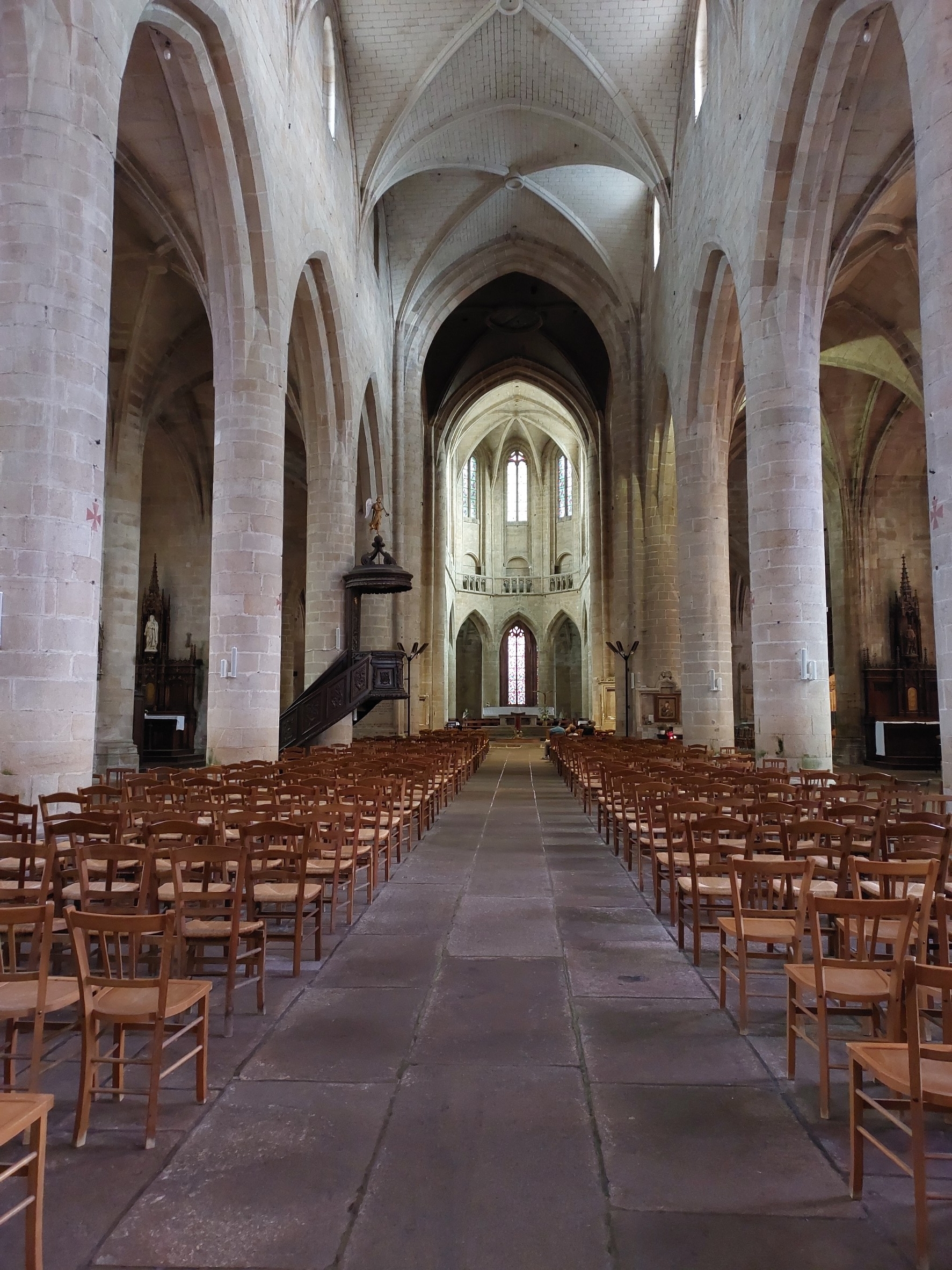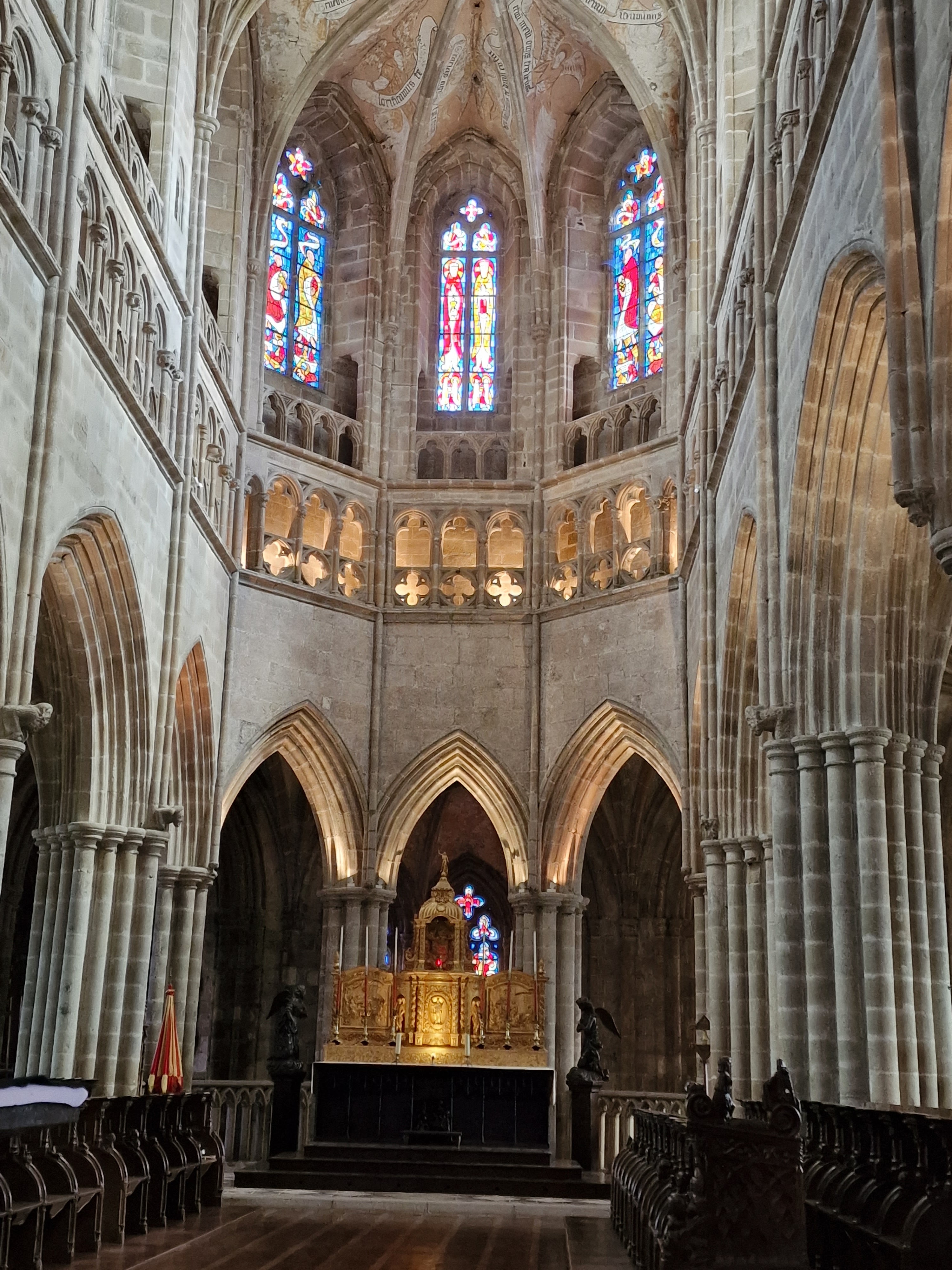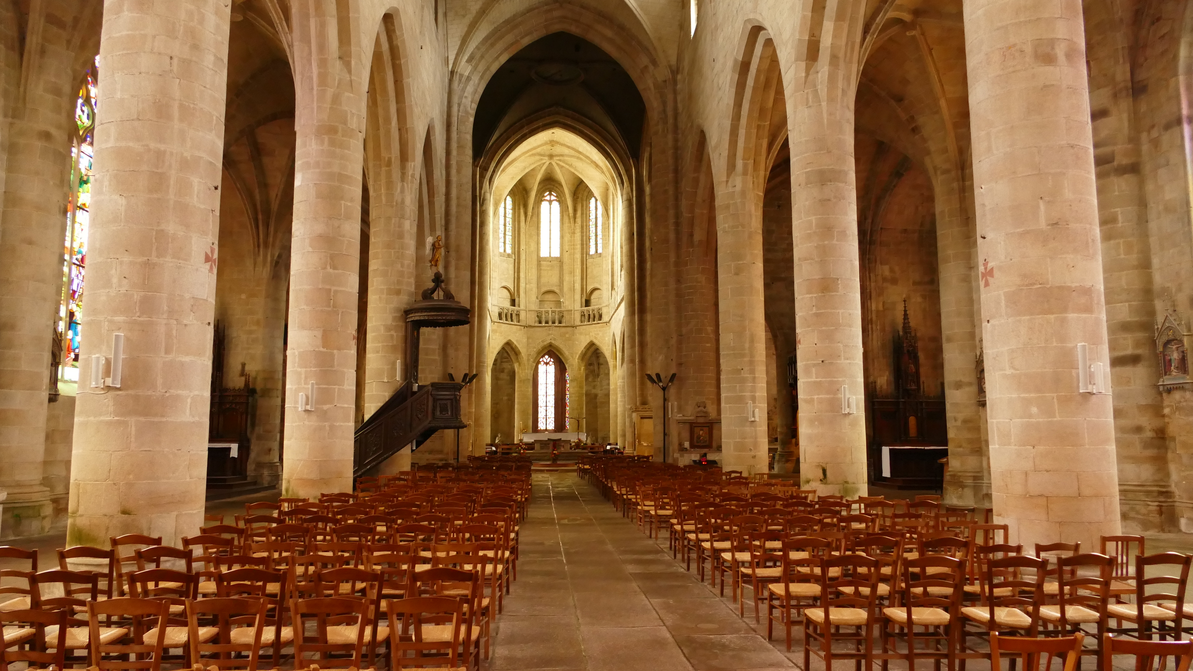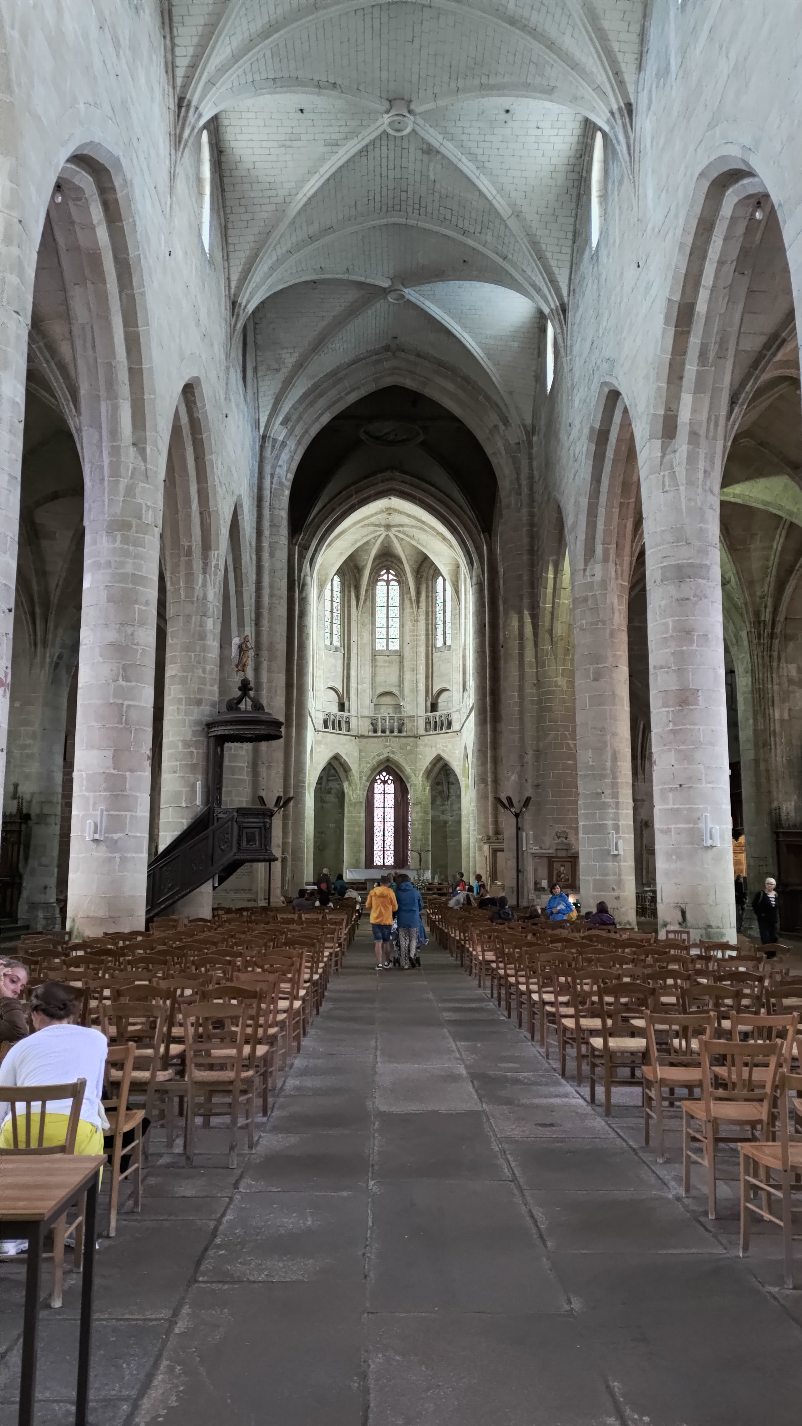 Imposante, à l'intérieur belle avec ses vitraux, et pourtant une froideur se dégage... C'est très beau avec une atmosphère particulière.