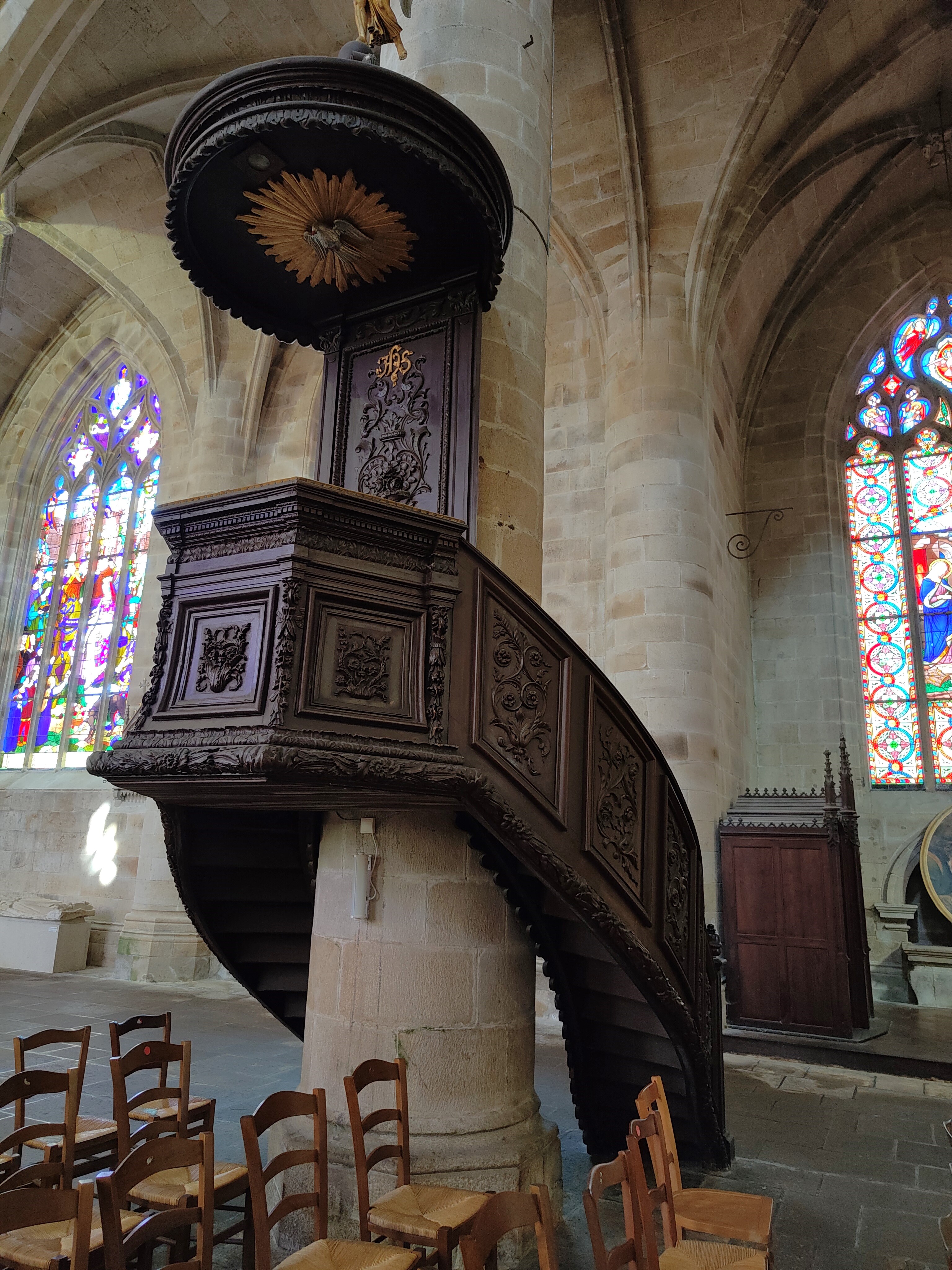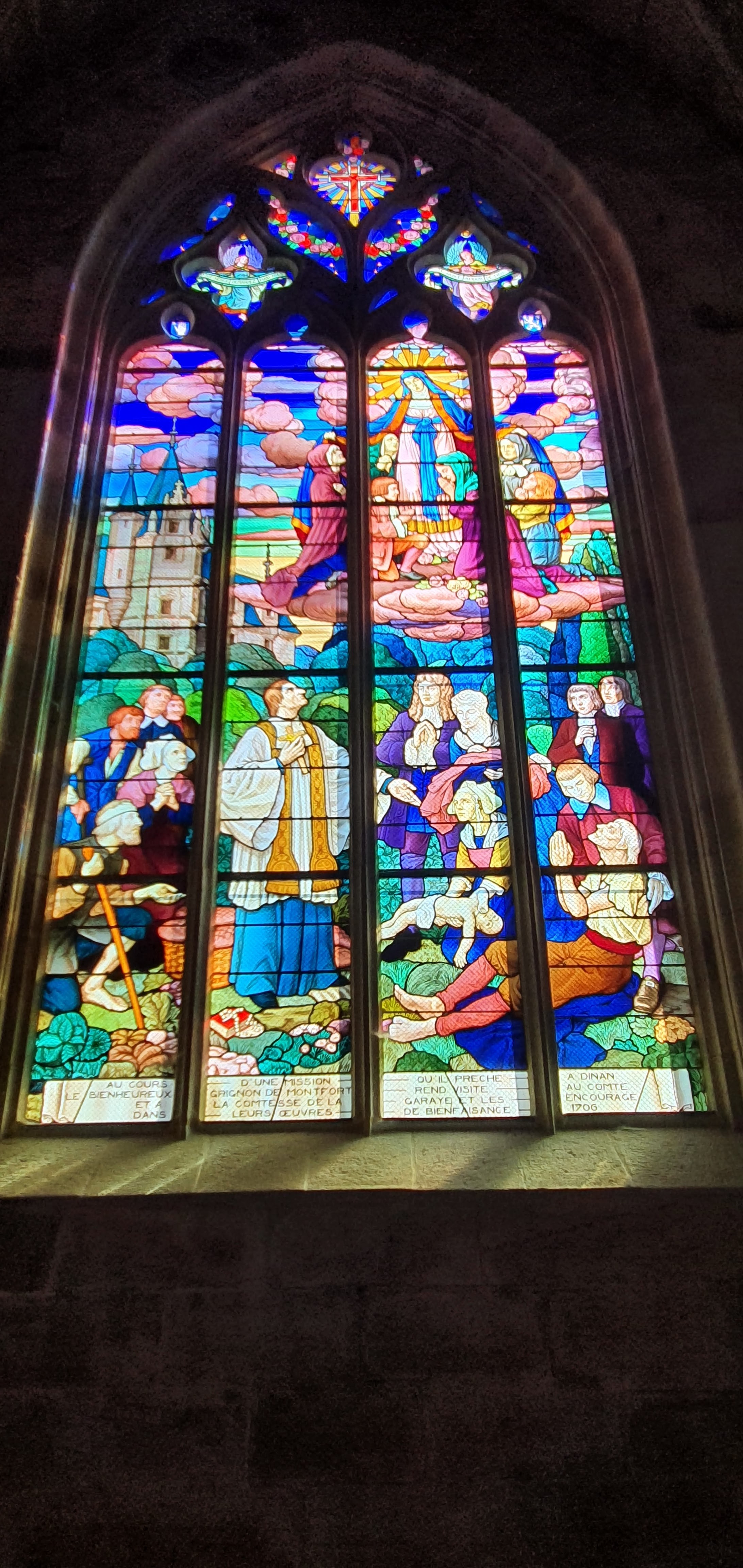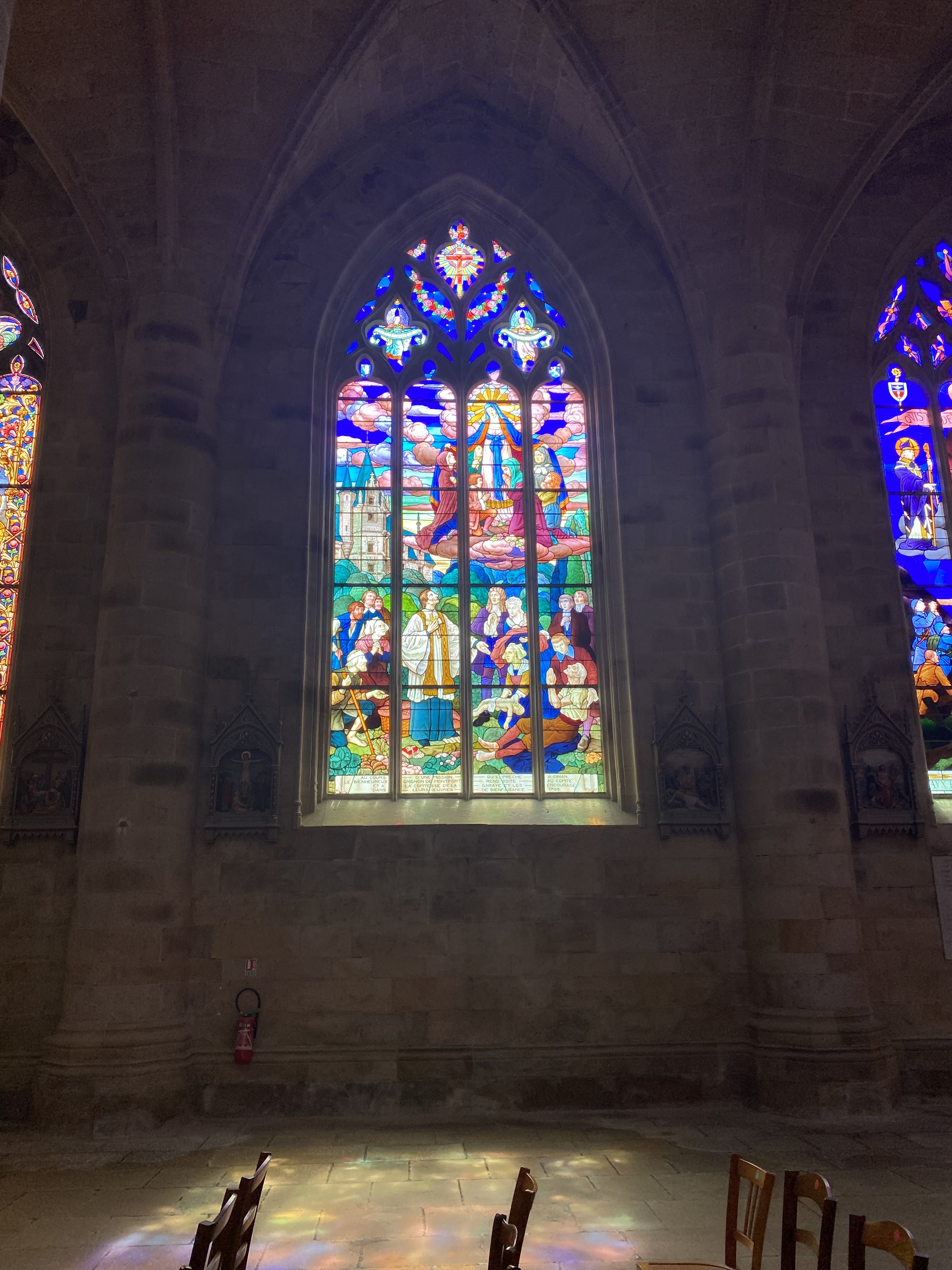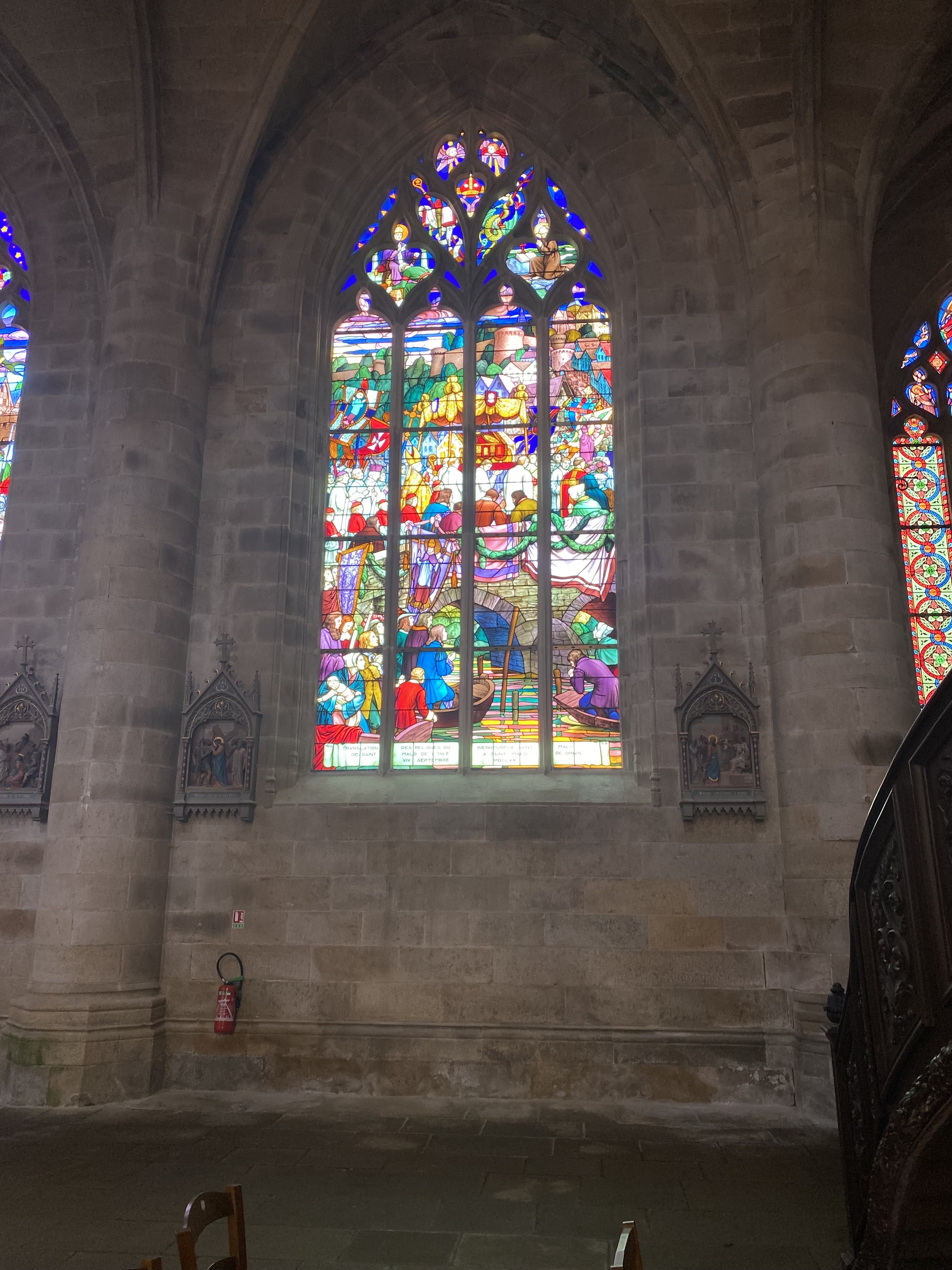 Vitraux exceptionnels , représentant pour certains la ville de Dinan . Un orgue majestueux.. Un moment spirituel.