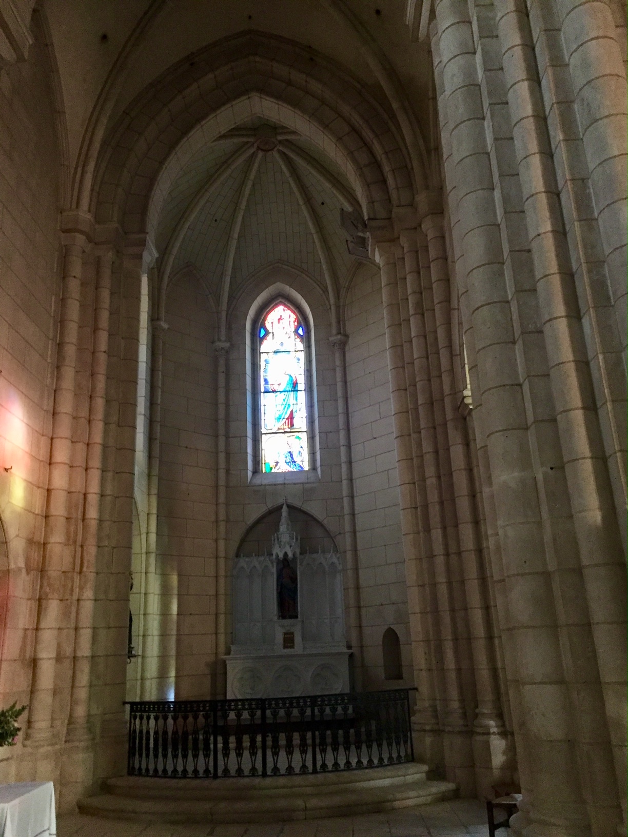 Une église du 19ème siècle. L’ensemble de l'église est classée Monument Historique. Les plans furent réalisés par le niortais Pierre-Théophile Segretain, architecte du département, des monuments histhoriques et enfin architecte diocésain. J'ai visité cette église par curiosité et pour compléter ma découverte des richesses patrimoniales de Montmorillon. De beaux vitraux et un grand orgue du 19ème siècle en sont les curiosités. Construite à partir de 1861 sur l'emplacement d'une ancienne église romane dont ne subsiste qu'une tour carrée, base de l'ancien clocher, je l'ai trouvé peu originale, mais elle peut plaire aux amoureux du Gothique.