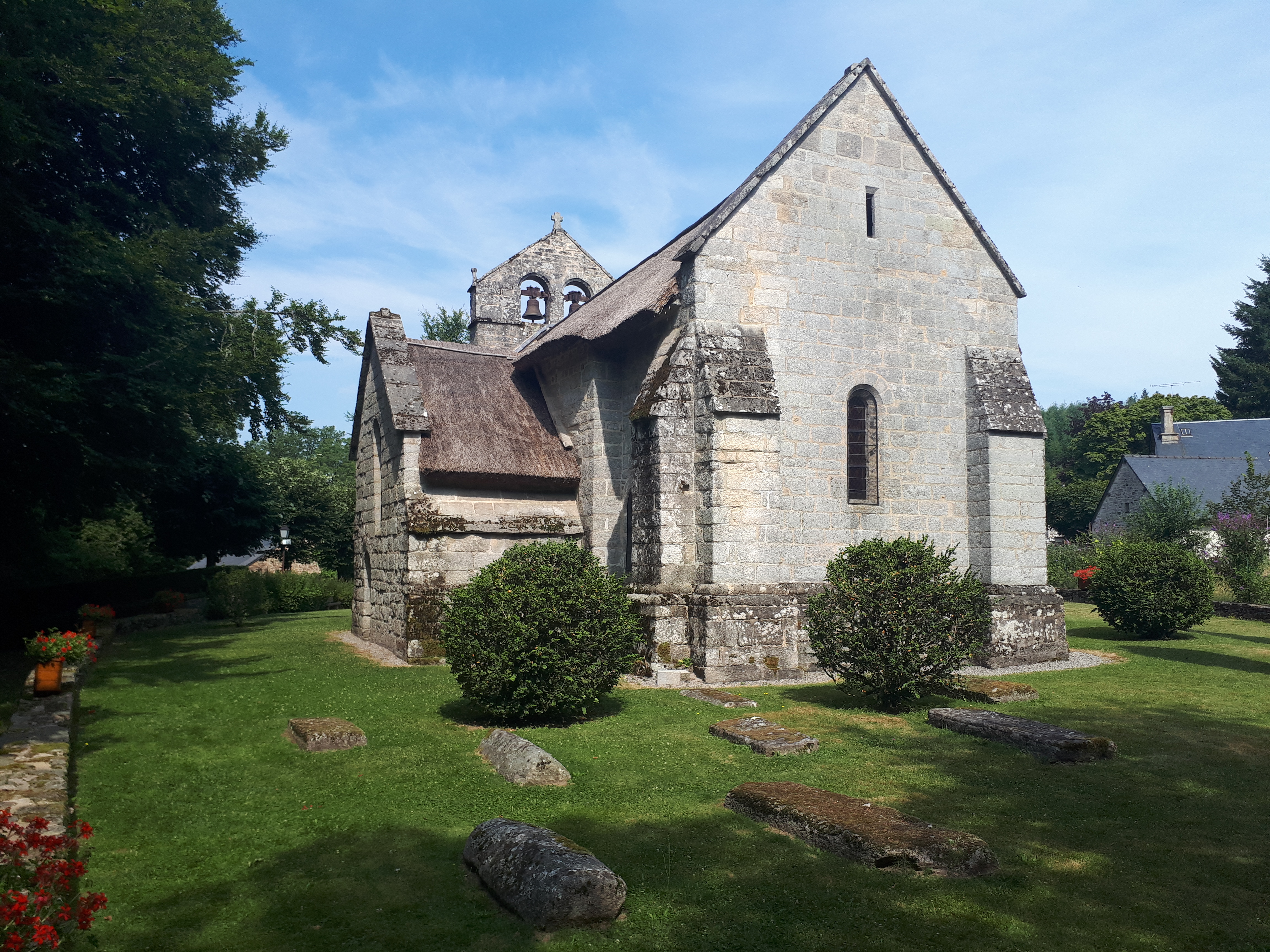 Une découverte réjouissante, unique église au toit de chaume en un lieu entretenu et accueillant. Bientôt mille ans que les pierres de taille de cette église ont été posées, quelques tombes médiévales forment un petit cimetière au chevet. Une restauration récente met en valeur cet édifice protégé par les MH ainsi que le terrain qui l'entoure. Une église romane du 12è dont le transept, repris au 15è, a été doté d'apports gothiques.
