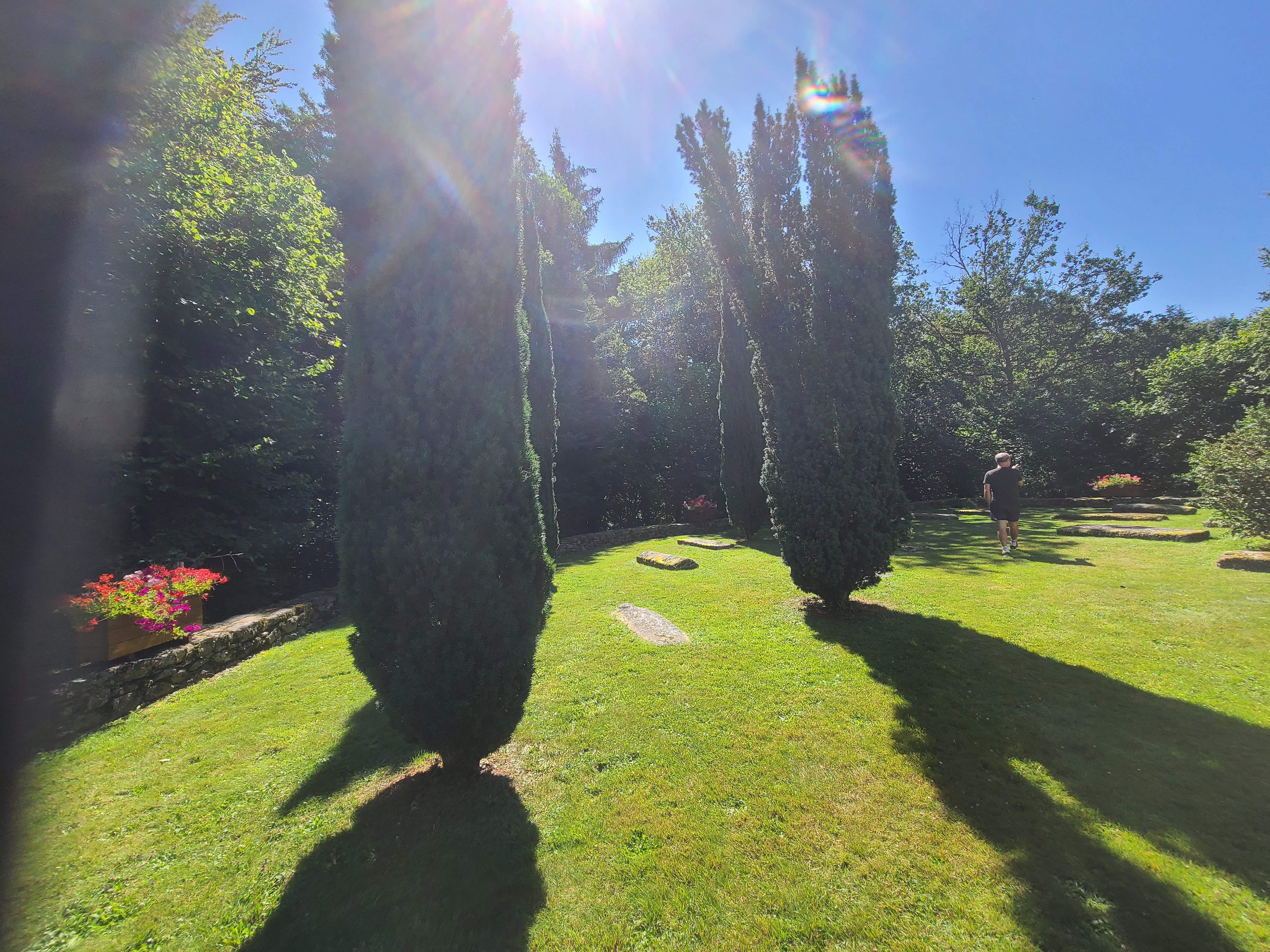 Un lieu assez particulier avec ce toit de chaume, rare pour une église, et ces tombes médiévales