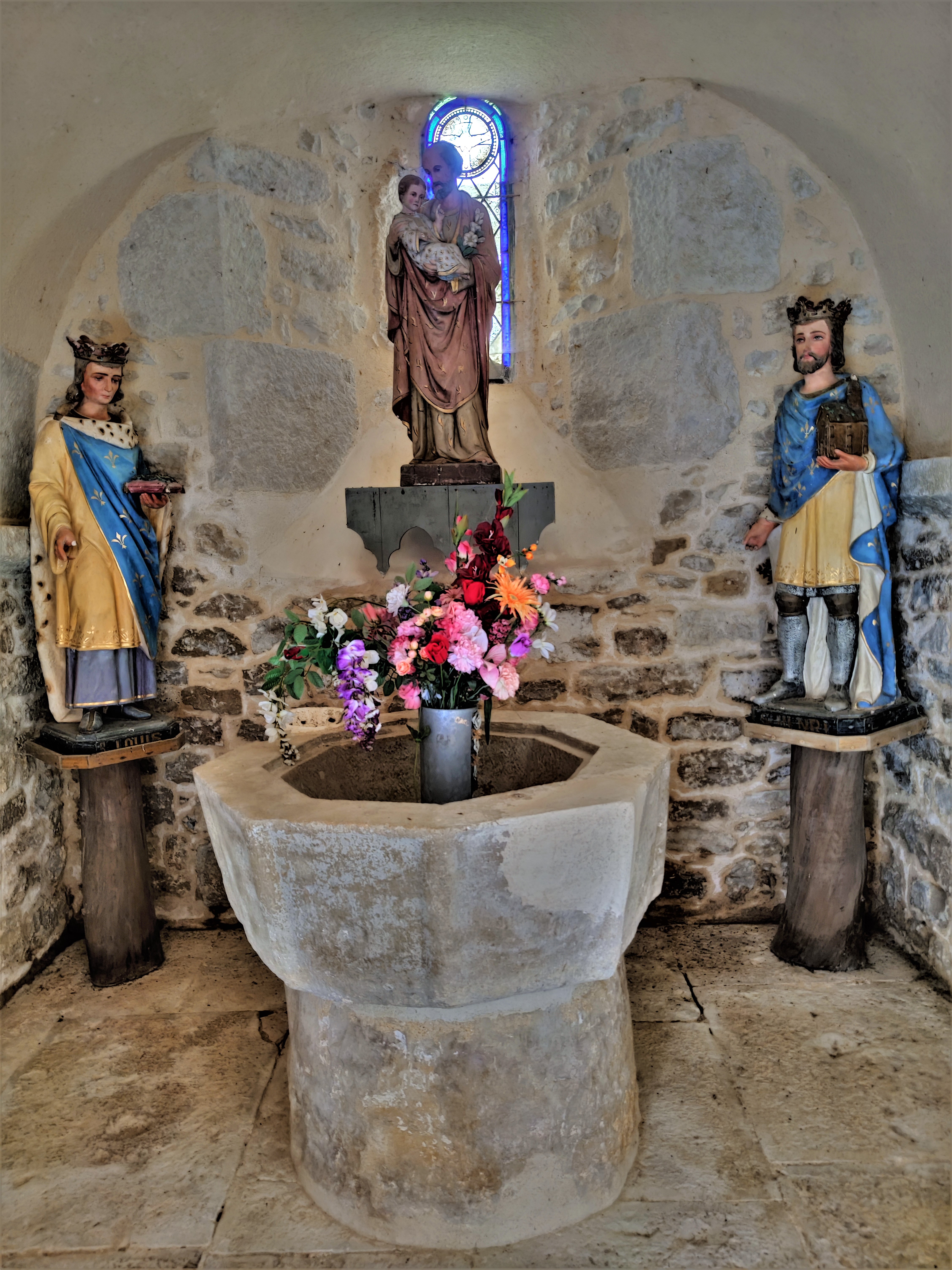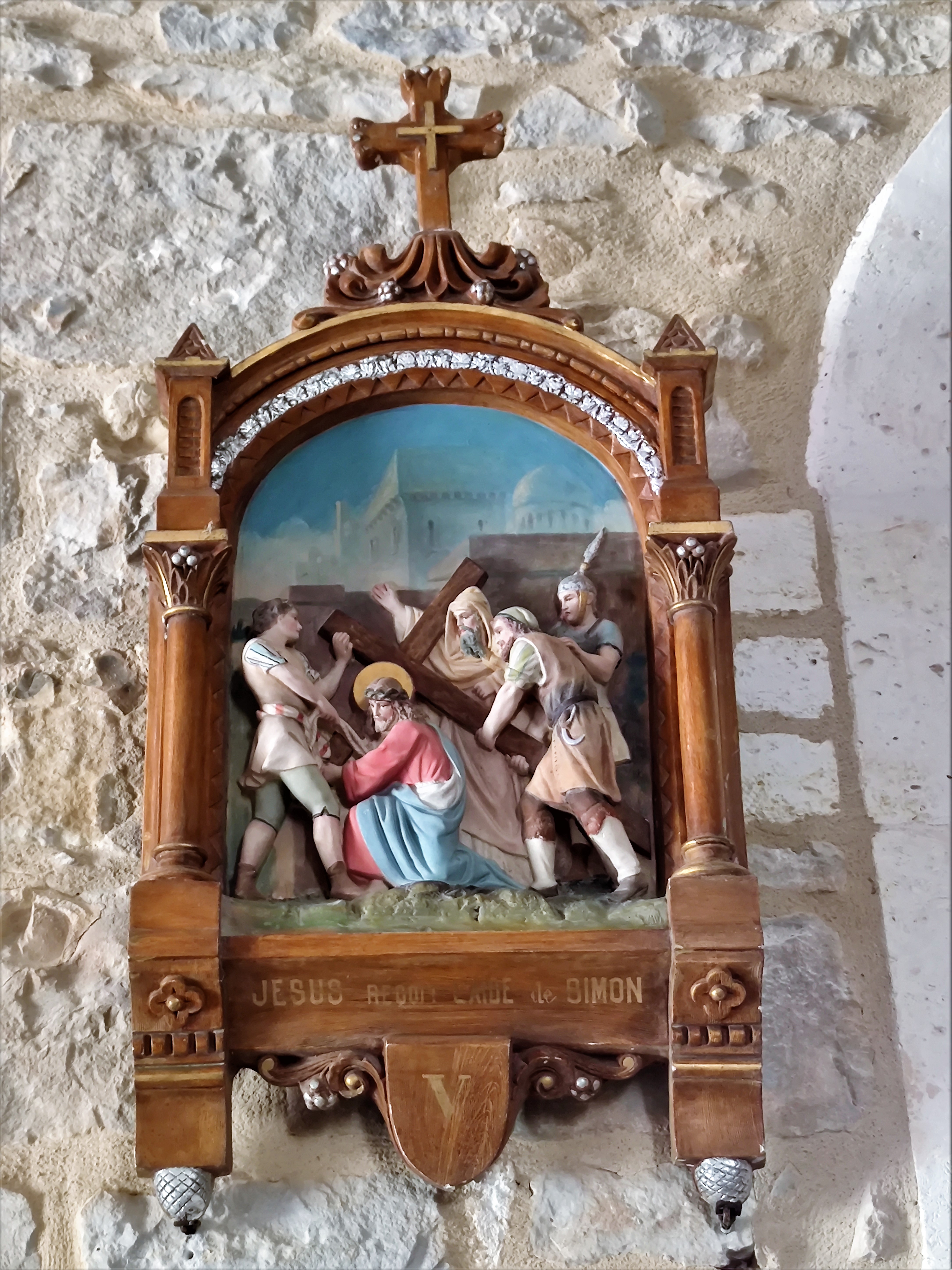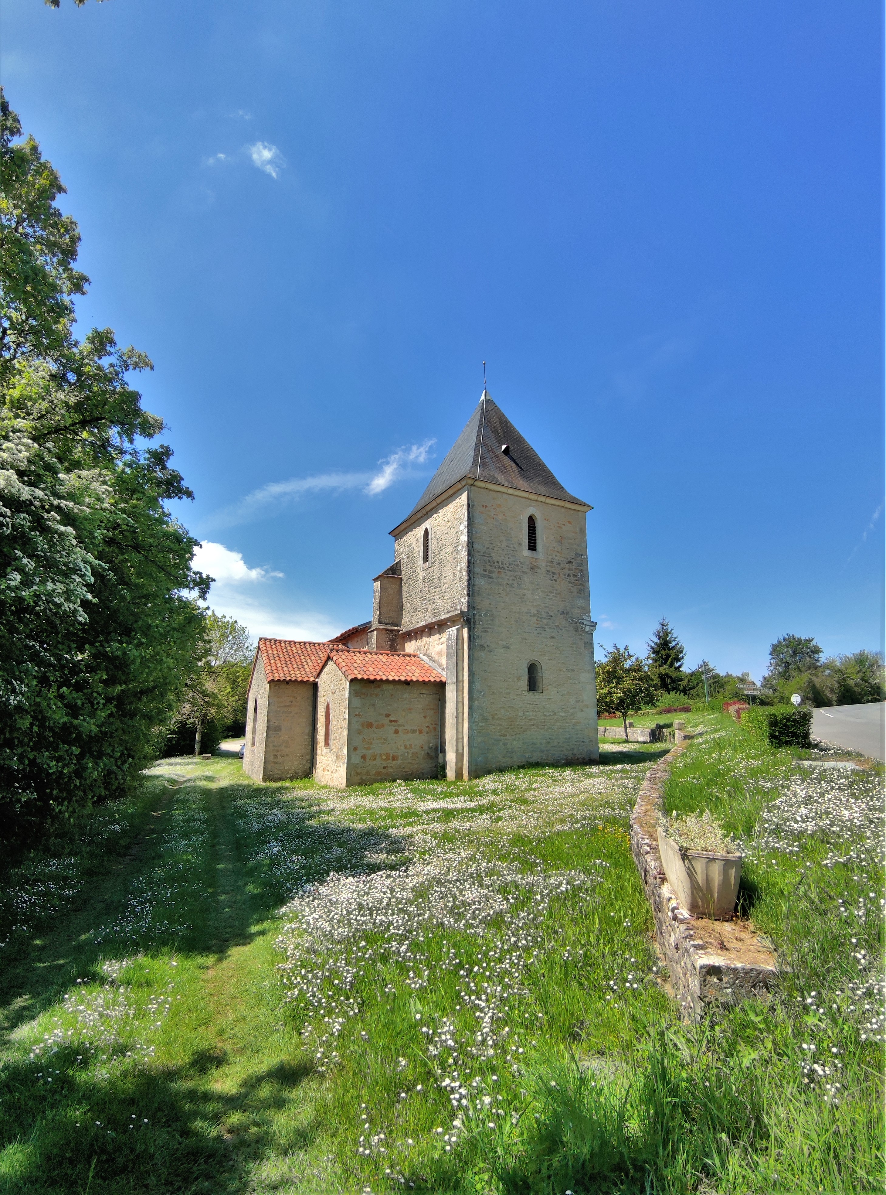 Charmante découverte d'une église peu signalée qui mérite une visite. Un rappel historique permet de mieux comprendre le patrimoine religieux de cette commune : 1962, Nanteuil devient Nanteuil-en-Vallée ; 1973, Moutardon comme 4 autres communes sont rattachées à Nanteuil-en-Vallée ; 1996, Nanteuil-en-Vallée rejoint La Communauté de Communes des Trois Vallées ; 2014, la C.C. des Trois Vallées rejoint la Communauté de Communes Val de Charente ; 2017, les 5 communes rattachées à Nanteuil-en-Vallée disparaissent par fusion simple avec cette dernière. Les regroupements communaux font que le patrimoine religieux bâti de Nanteuil-en-Vallée est conséquent. Certains édifices sont classés par les M.H. mais tous présentent un intérêt, ne serait-ce que la performance de leurs constructions et le fait que ces églises témoignent de l'histoire des paroisses et de la vie de ces dernières. Pour visiter l'église Saint-Martial de Moutardon, la mairie de Nanteuil m'a dirigé vers une paroissienne qui m'a offert d'ouvrir l'église à la date prévue pour mon passage, je la remercie. Cette charmante campagne abrite de jolis villages, Moutardon est l'un d'eux, son église Saint-Martial placée près du cimetière est bien mise en valeur au creux d'un vallon. Accueillante, voûtée en berceau, elle décline de nombreux éléments de style roman, une chapelle gothique forme le croisillon Sud d'un transept jamais réalisé. Le baptistère placé à gauche de l'entrée dans la nef est installé dans une construction débordante du mur Nord. L'arche d'accès au baptistère permet d'apprécier l'épaisseur du mur. Charmante découverte d'une église peu signalée qui mérite une visite.