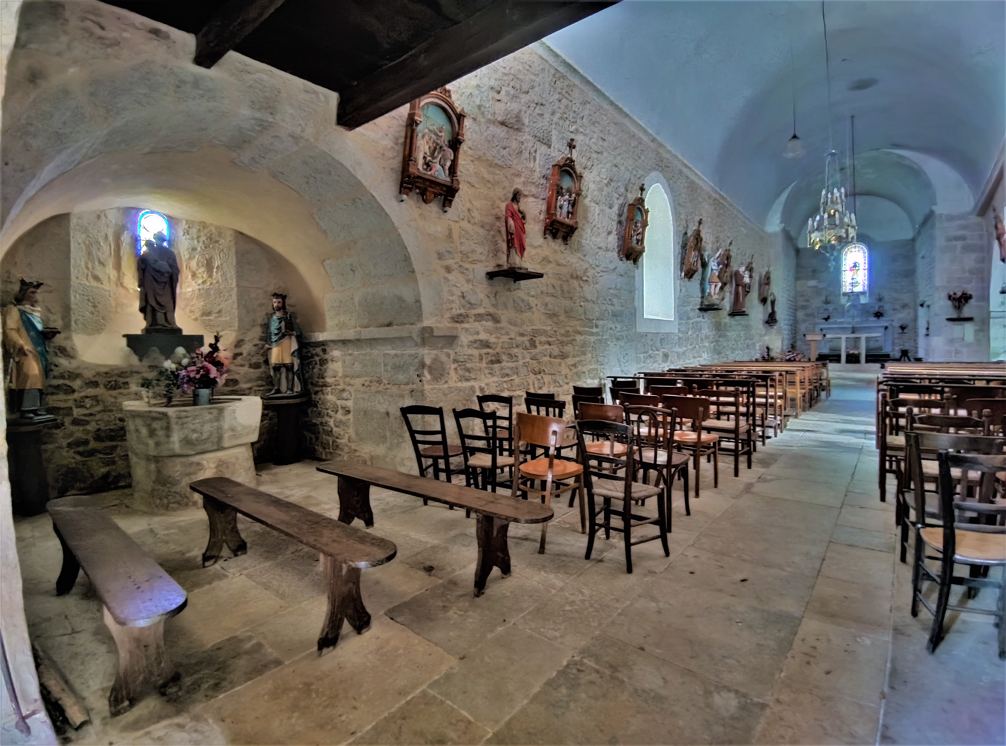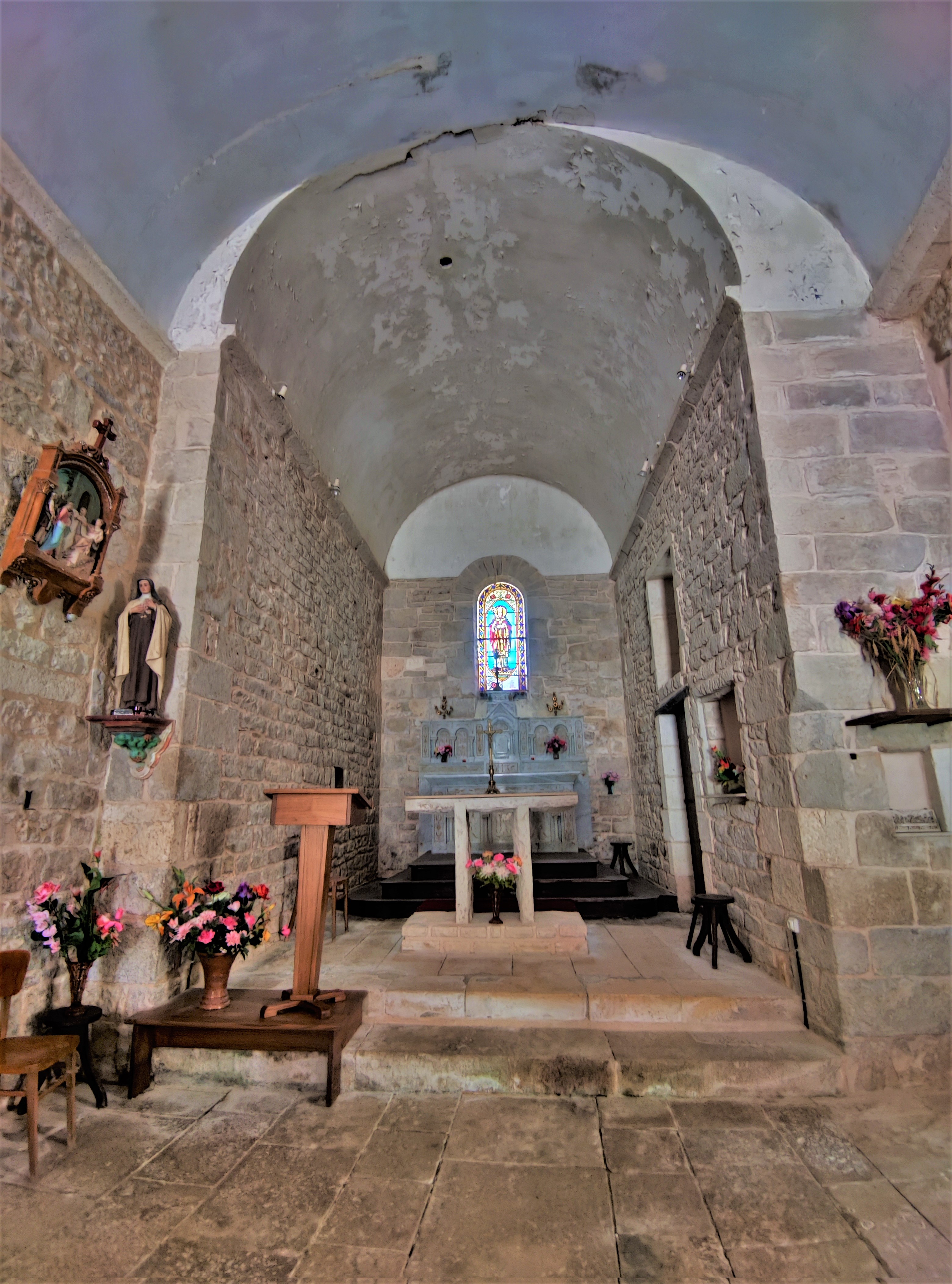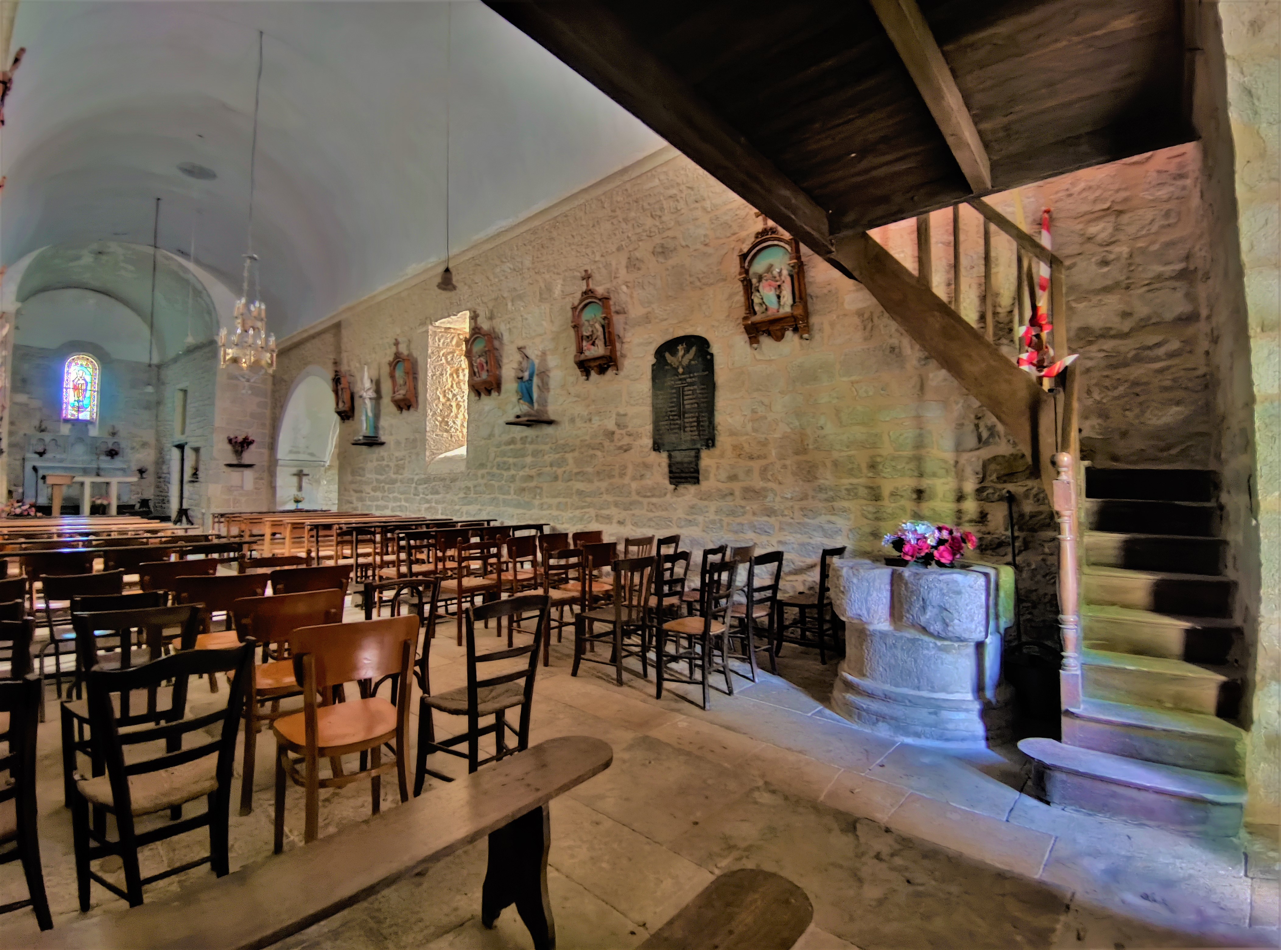 Charmante découverte d'une église peu signalée qui mérite une visite. Un rappel historique permet de mieux comprendre le patrimoine religieux de cette commune : 1962, Nanteuil devient Nanteuil-en-Vallée ; 1973, Moutardon comme 4 autres communes sont rattachées à Nanteuil-en-Vallée ; 1996, Nanteuil-en-Vallée rejoint La Communauté de Communes des Trois Vallées ; 2014, la C.C. des Trois Vallées rejoint la Communauté de Communes Val de Charente ; 2017, les 5 communes rattachées à Nanteuil-en-Vallée disparaissent par fusion simple avec cette dernière. Les regroupements communaux font que le patrimoine religieux bâti de Nanteuil-en-Vallée est conséquent. Certains édifices sont classés par les M.H. mais tous présentent un intérêt, ne serait-ce que la performance de leurs constructions et le fait que ces églises témoignent de l'histoire des paroisses et de la vie de ces dernières. Pour visiter l'église Saint-Martial de Moutardon, la mairie de Nanteuil m'a dirigé vers une paroissienne qui m'a offert d'ouvrir l'église à la date prévue pour mon passage, je la remercie. Cette charmante campagne abrite de jolis villages, Moutardon est l'un d'eux, son église Saint-Martial placée près du cimetière est bien mise en valeur au creux d'un vallon. Accueillante, voûtée en berceau, elle décline de nombreux éléments de style roman, une chapelle gothique forme le croisillon Sud d'un transept jamais réalisé. Le baptistère placé à gauche de l'entrée dans la nef est installé dans une construction débordante du mur Nord. L'arche d'accès au baptistère permet d'apprécier l'épaisseur du mur. Charmante découverte d'une église peu signalée qui mérite une visite.