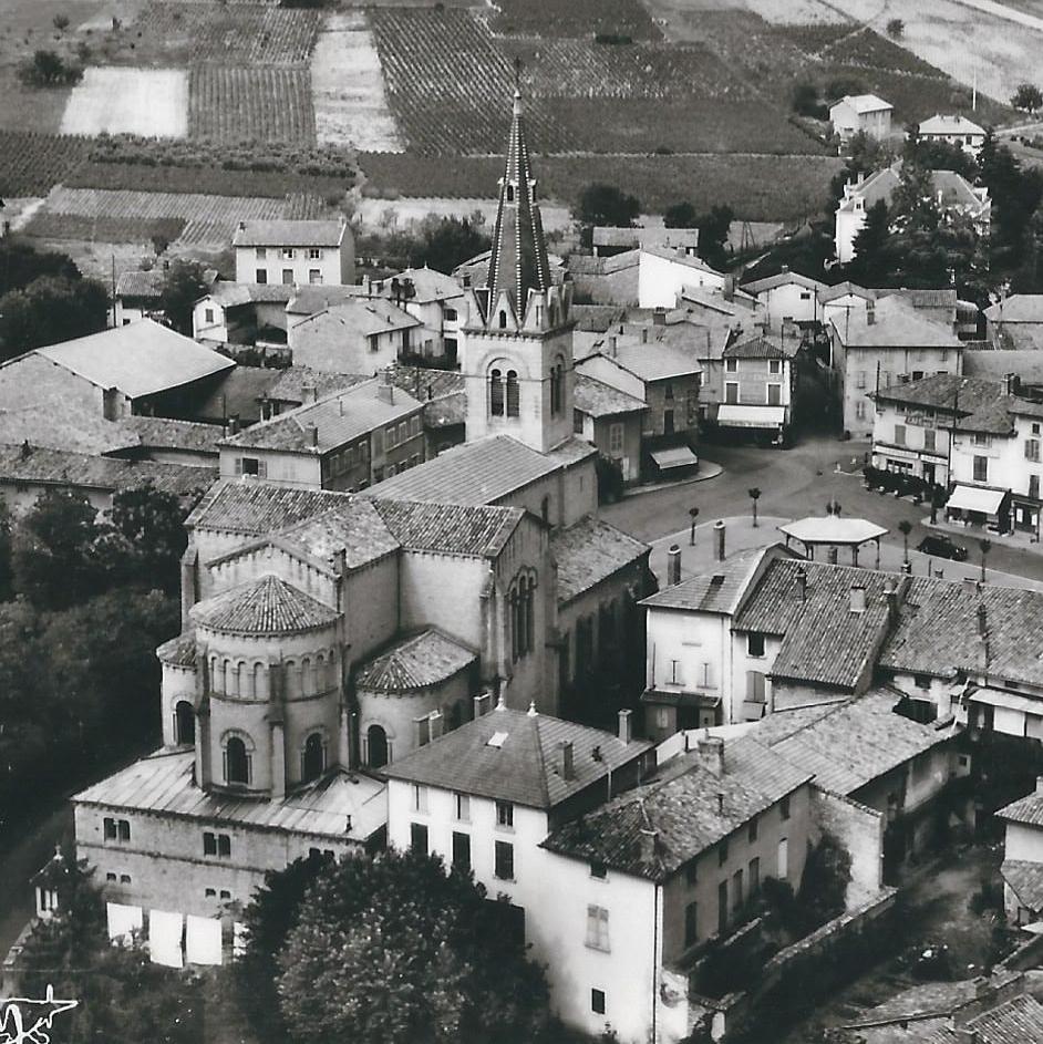 Bonjour! Un très bel exemple d'église néoclassique du XIXème siècle à l'architecture soignée, en pierres de taille ocre jaune: nous sommes dans le Beaujolais Pays des pierres dorées. On remarquera les magnifiques colonnes monolithes, d'un seul bloc de pierre, les vitraux moderne du cœur, aux merveilleuses colorations lumineuses, une sainte vierge du XVIIIème siècle de toute beauté. La porte est toujours ouverte en journée. Nous présentons des cartes postales anciennes.