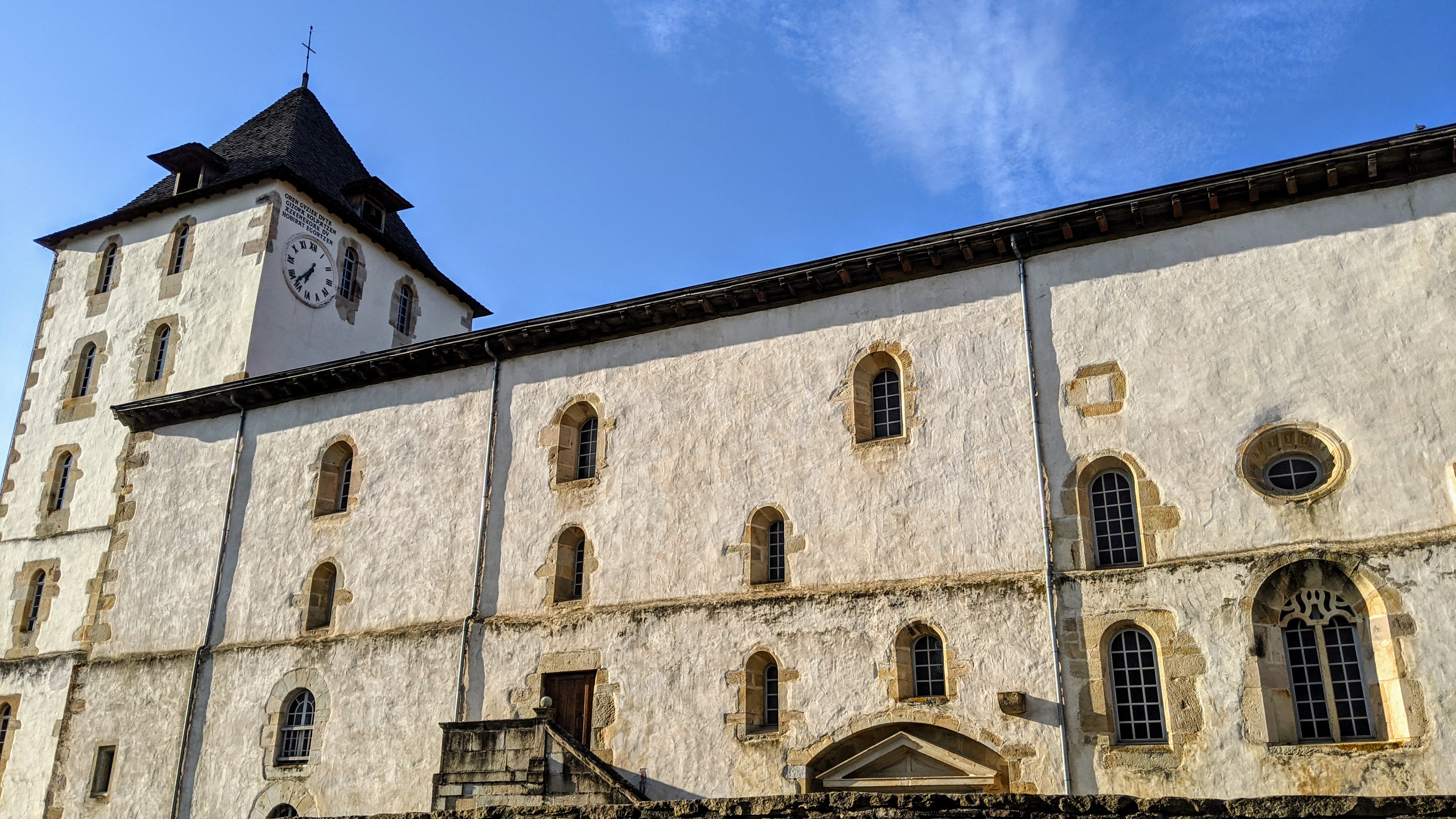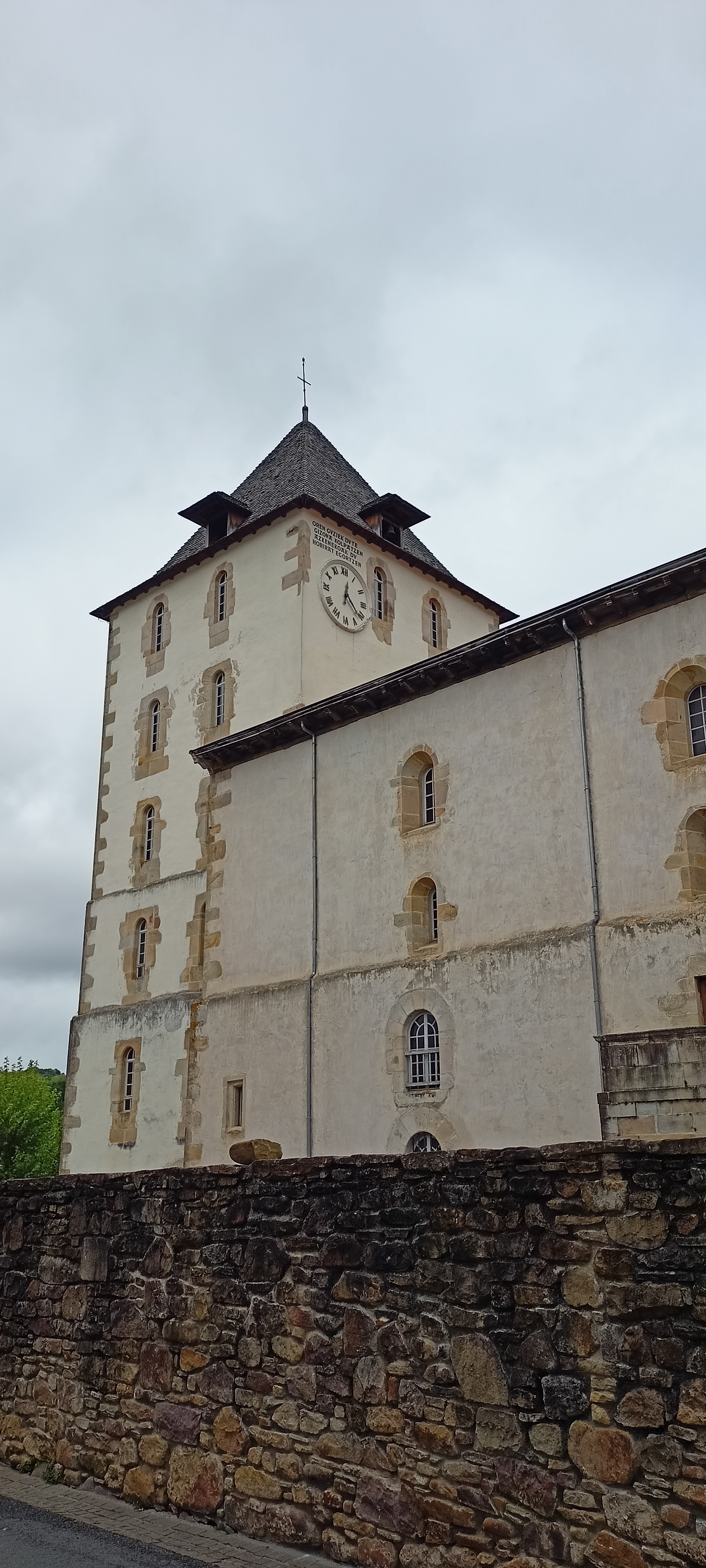 l'église Agréable et curieux, ce dernier, car il me rappelle les huguenots de Navarre. Ce n'est pas une église catholique typique avec une croix ondulée, et j'en ai vu une de ce type dans les Alpes mais pas, jusqu'à présent, au Pays Basque, du moins dans le sud.