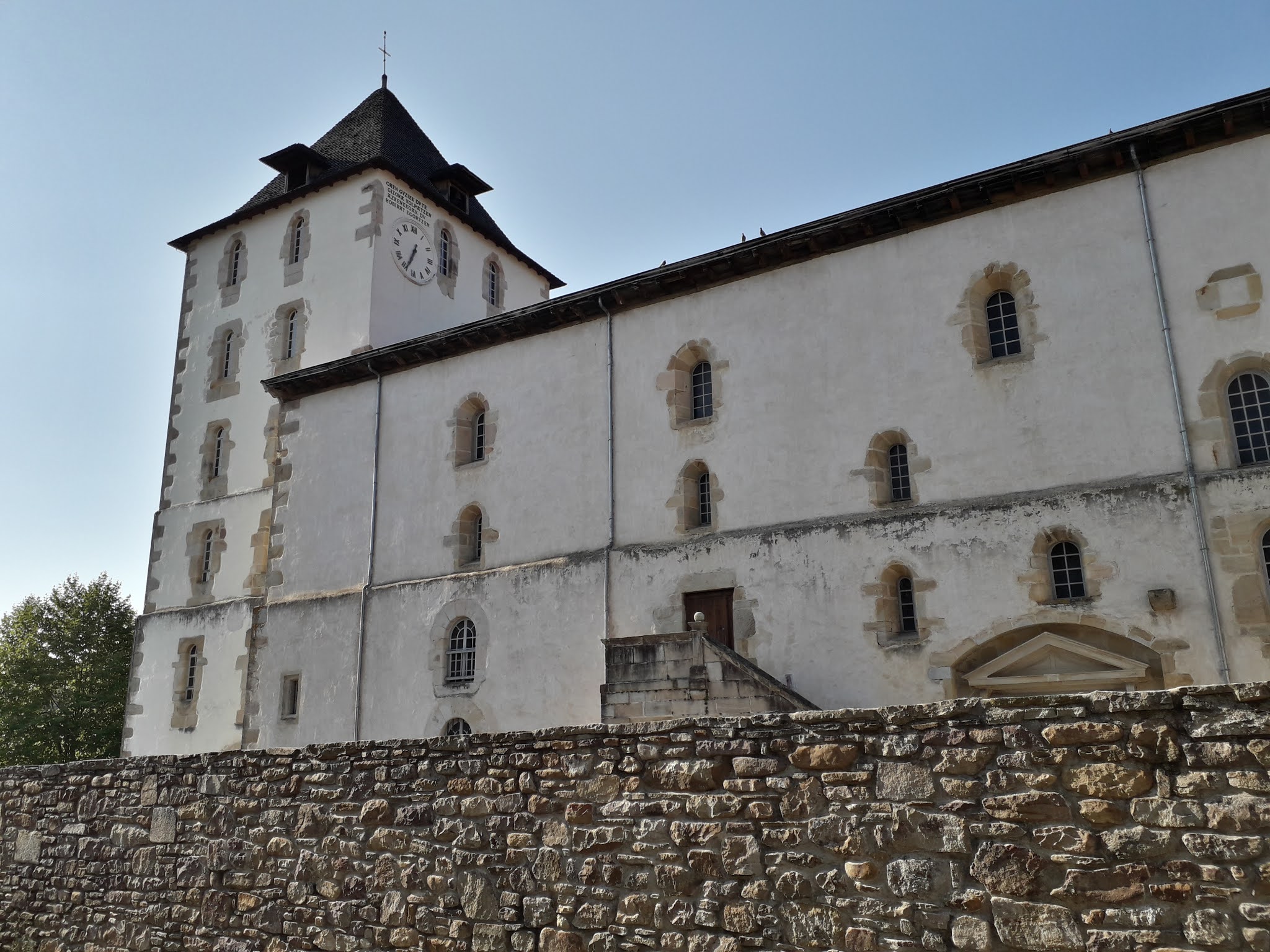 Belle église de style roman, bien qu'il ne reste que des fragments des murs porteurs du style roman. Pour comprendre la raison de cette construction bestiale dans une si petite ville, il faut faire un peu d'histoire et remonter au XVIe siècle et à la lutte acharnée qui a eu lieu entre les huguenots (protestants français) et les catholiques, tant la proximité est grande. né de la frontière avec l'Espagne a transformé la ville en objectif militaire. Pour ces raisons, l'église a été transformée en bastion de défense pour pouvoir donner refuge à tous les villageois en cas de conflits. Ce qui m'a le plus frappé personnellement, ce sont les impressionnants gradins en bois, si typiques des églises basco-françaises, mais dans ce cas à trois étages et dont la vue depuis l'autel a dû donner au prêtre l'impression d'être une star du rock and roll... Ce système de gradins a été imaginé au XVIe siècle par l'évêque de Bayonne dans le but que lors des événements religieux les hommes soient dans la « platea » et les femmes dans les « tribunes ». Bref, une visite s'impose !!