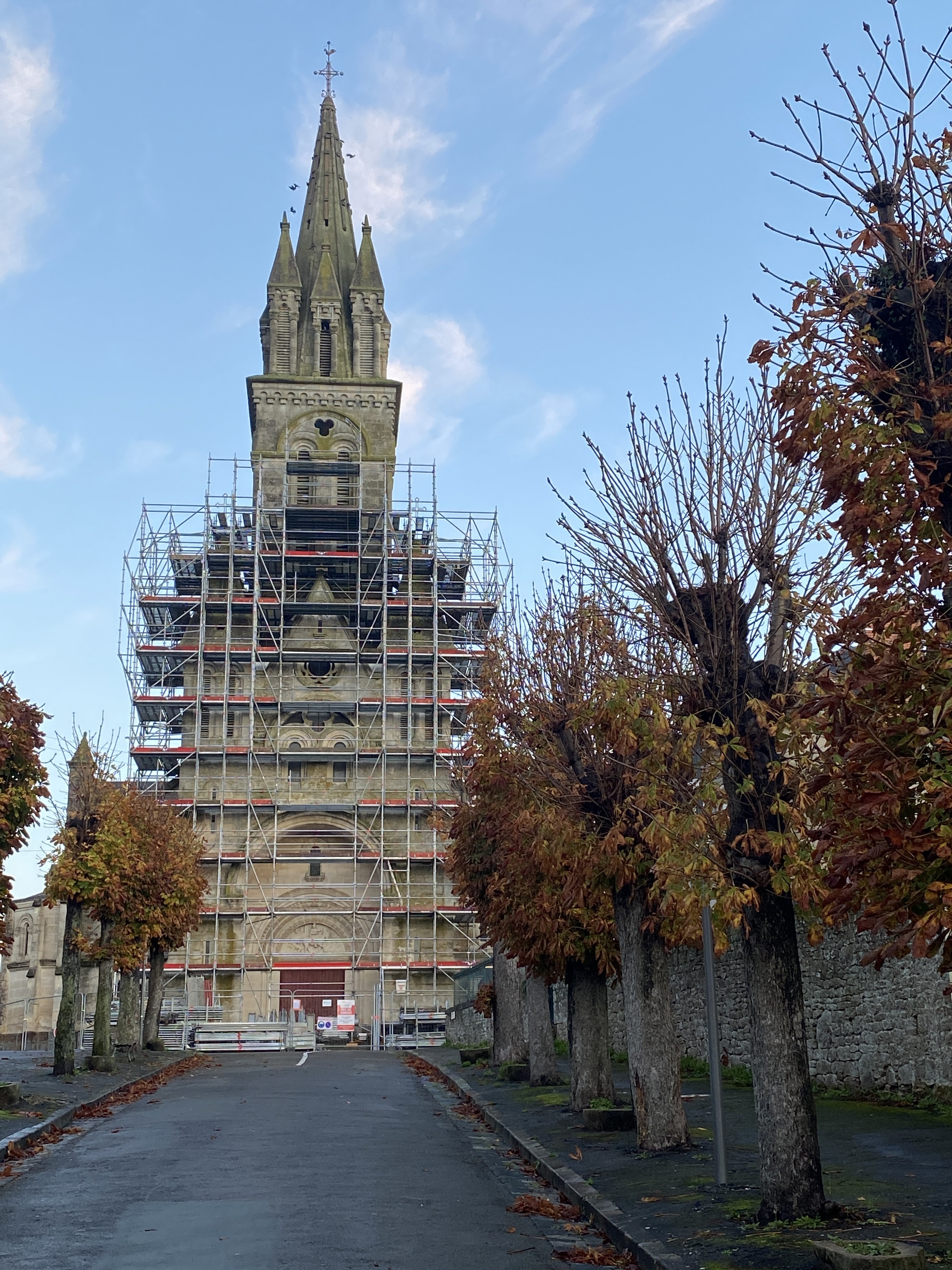 L’église Saint Martin s’est revêtue d’un manteau d’acier . Les travaux concernent la restructuration de la flèche .
