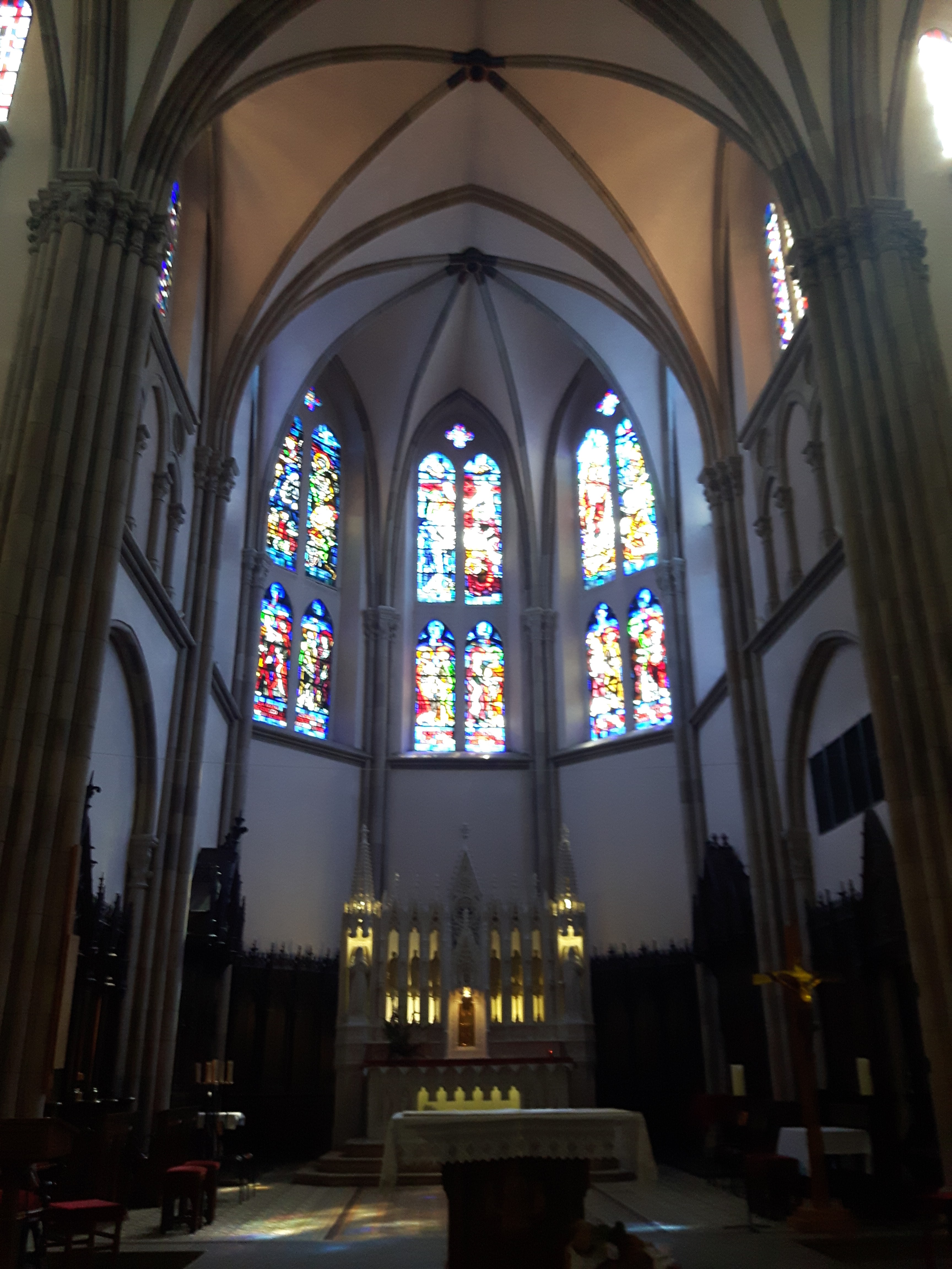 Les cathédrales alsaciennes sont toujours étonnantes. Celui-ci vaut également la peine d'être vérifié, de ses portes complexes à ses vitraux et à son design intérieur.