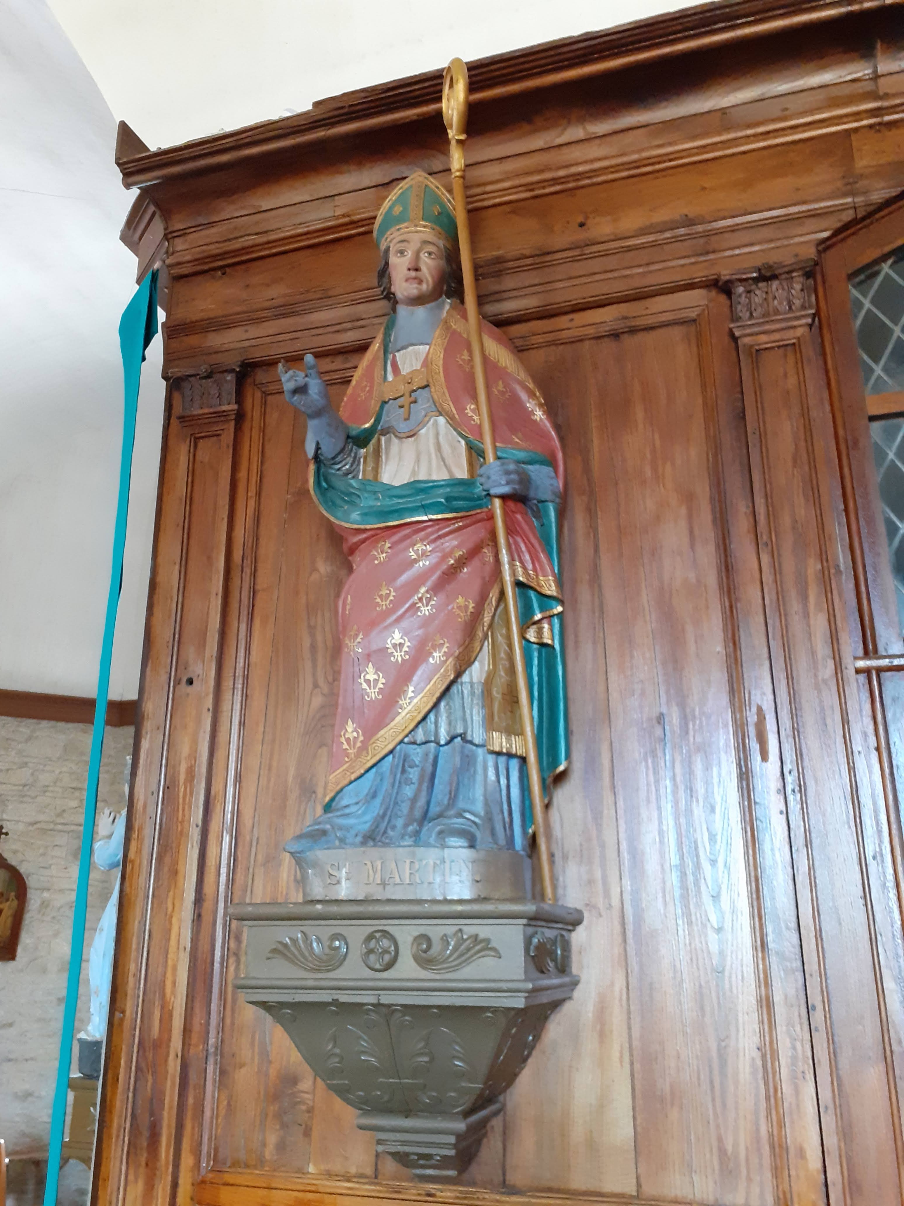 Monsieur le peintre étant en plein boumm, la photo de cette jolie porte rouge, plus tard. Des vitraux assez simples. Clocher original. 08/2021 - Belle porte d'un beau rouge, avec St Martin gravé partageant son manteau avec un mendiant.