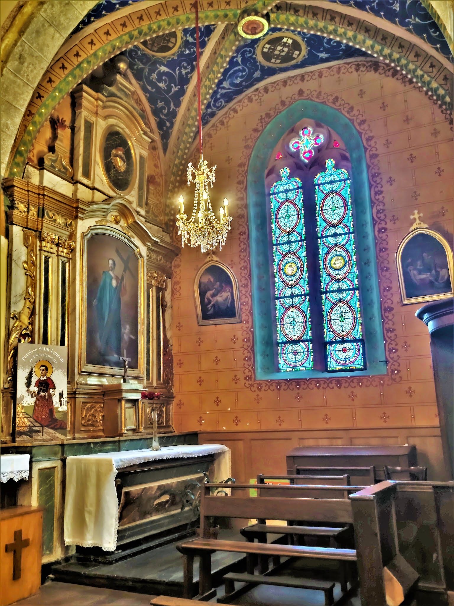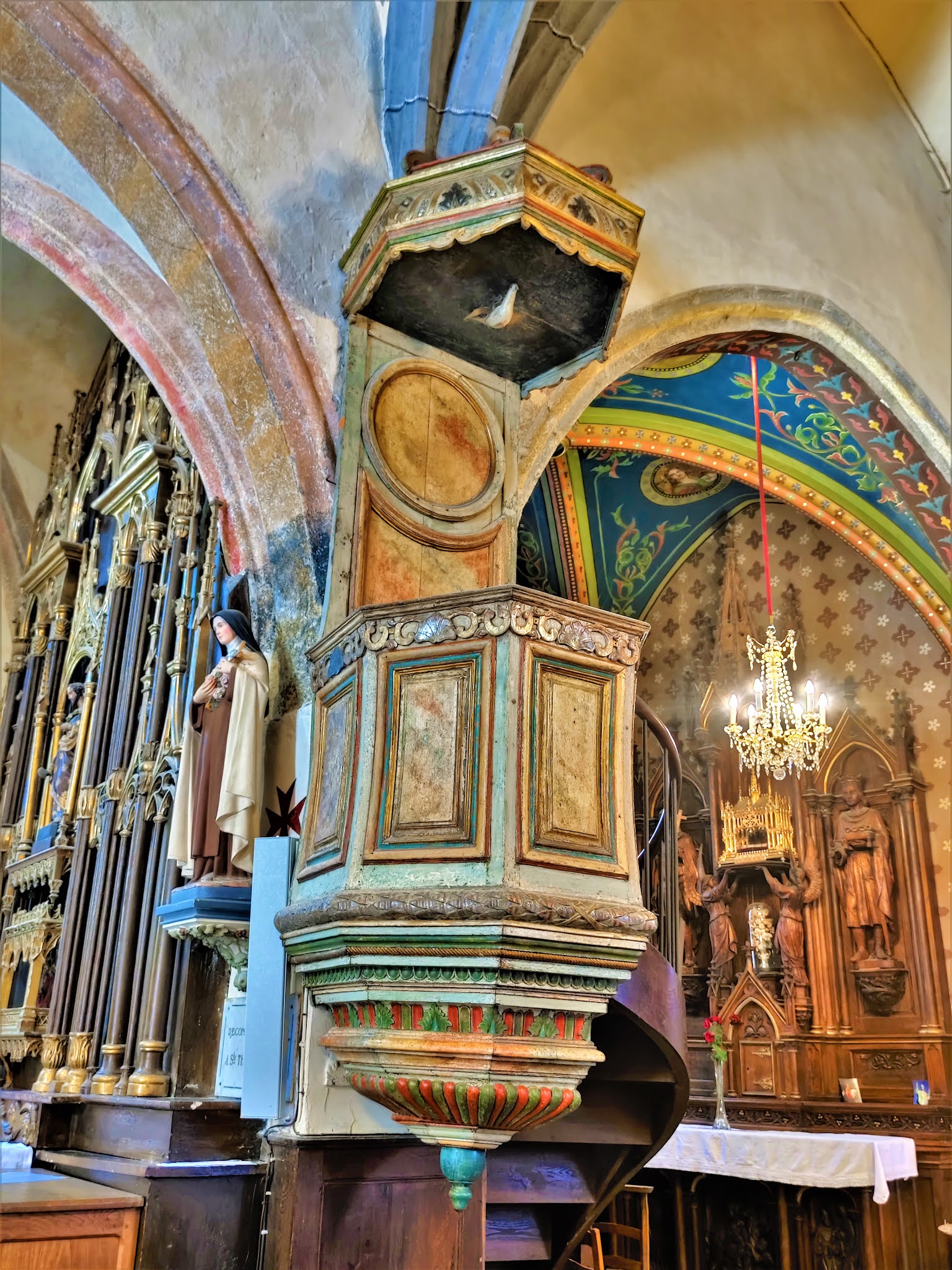 Les églises pullulent en France. Souvent belles mais pas toujours remarquables. Celle-ci sort du lot par ses décors intérieurs.
