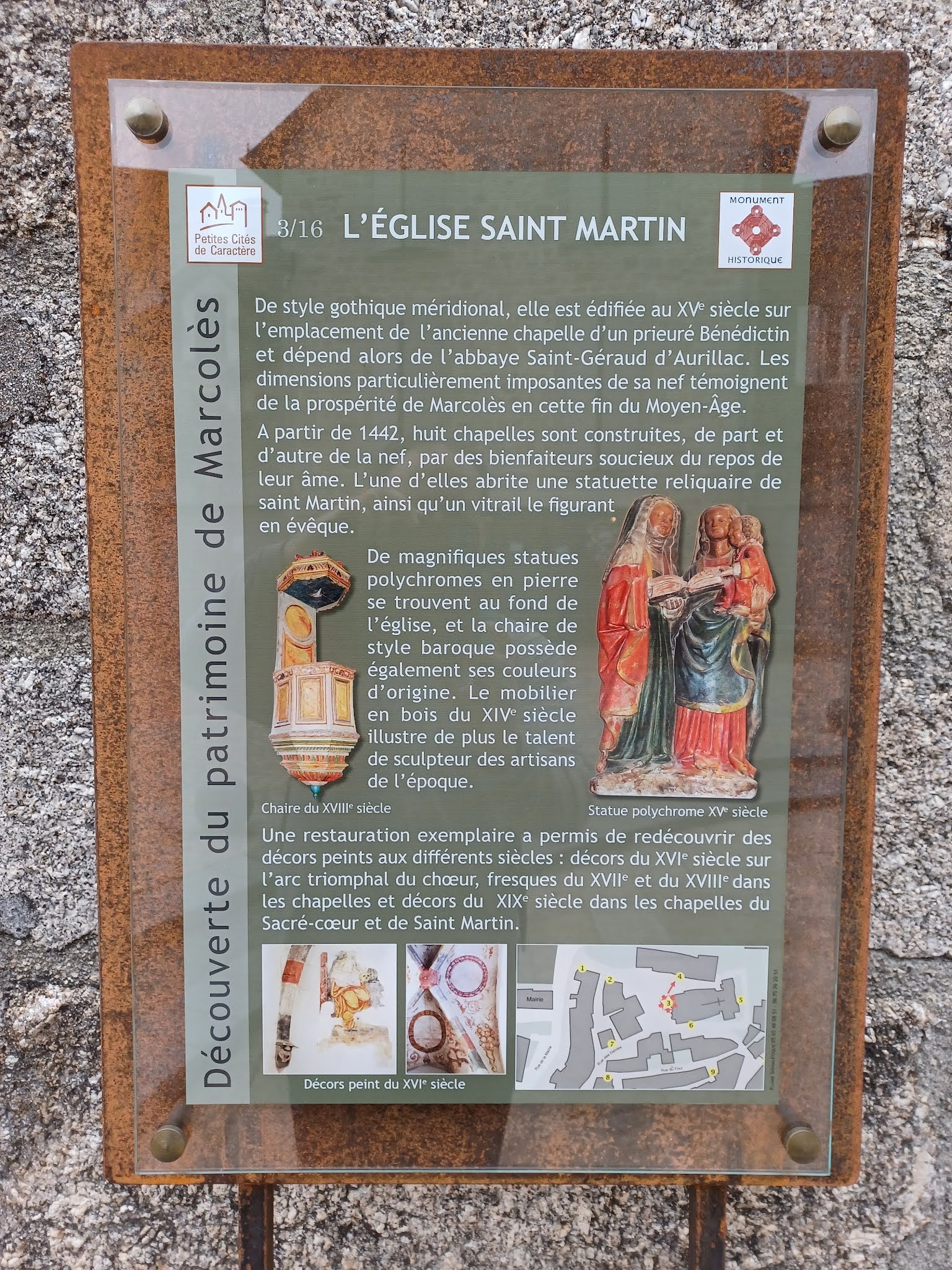 La visite est incontournable, l'église Saint-Martin est un des éléments les plus précieux de cette cité. Depuis plus de 30 ans, des campagnes de restauration se sont succédées, offrant aux visiteurs une église somptueuse. Un million d'euros ont été investis par la commune, aidée par l'état, la région, le département et diverses associations. L'église Saint-Martin fut construite au début du 15ème siècle à l'emplacement d'une ancienne prieurale. Le projet initial était modeste, une nef unique et un chœur. Durant le même siècle, nombre de familles de l'aristocratie locale firent édifiées des chapelles funéraires. C'est donc une dizaine de chapelles qui forment comme des collatéraux au Nord et au Sud de l'édifice. 1 est consacrée au Monument aux morts, 1 est le baptistère, les 8 autres sont funéraires. C'est autant d'autels et de retables qui meublent la nef de cette église. Le chœur à deux travées et le sanctuaire sont superbes. Les décors peints, la statuaire, les tableaux, et l'architecture de l'édifice forment un ensemble remarquable. La visite est incontournable, l'église Saint-Martin est un des éléments les plus précieux de cette cité.
