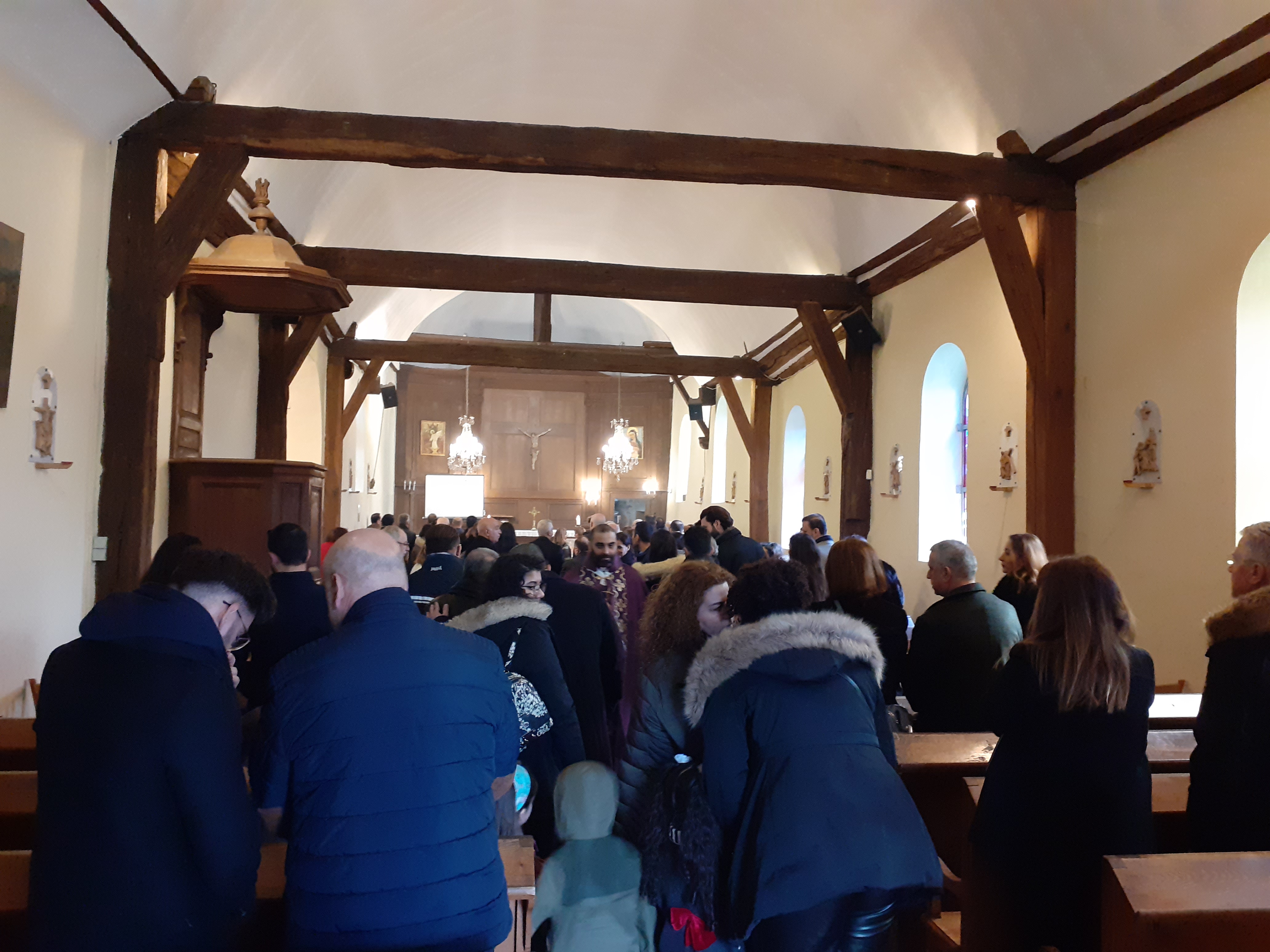 Une église chaleureuse par son style de nerf, ses fidèles, son histoire et son prêtre. Une messe au rite maronite syriaque nous fait voyager 2000 ans en arrière.