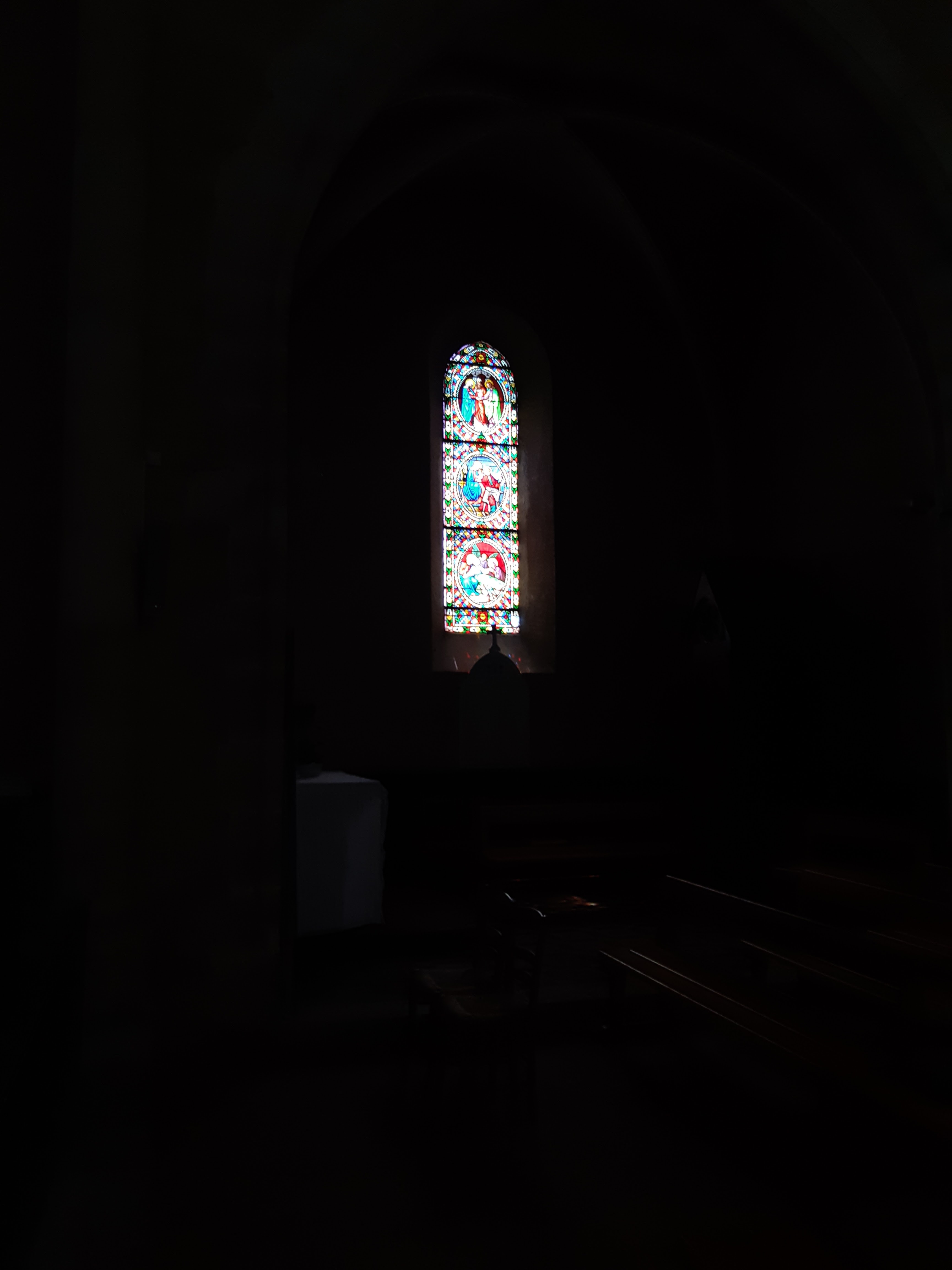 Une très jolie eglisse ou recueil et sérénité y reigne ! Avec un cadre fort agréable ! De très jolis vitraux ! Elle Est très bien entretenue ! Un moment qui mérite un petit détour ! Une très jolie vue sur le village ! A voir absolument pour les amoureux des vieilles pierres !