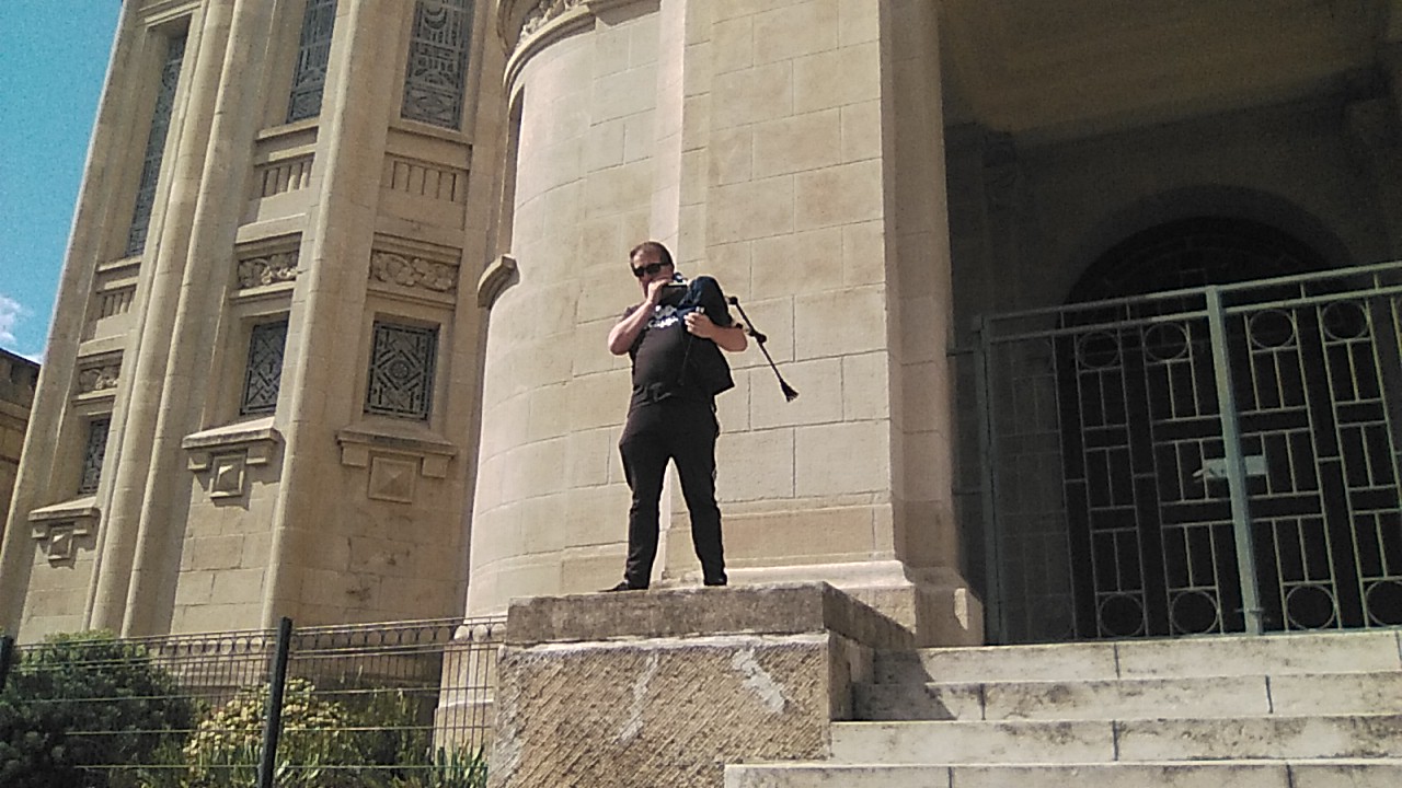 J'ai fait aller ma cornemuse et le violon au pied de l'église c'était super sympa en plus c'est la première fois que je me produit dans cette ville