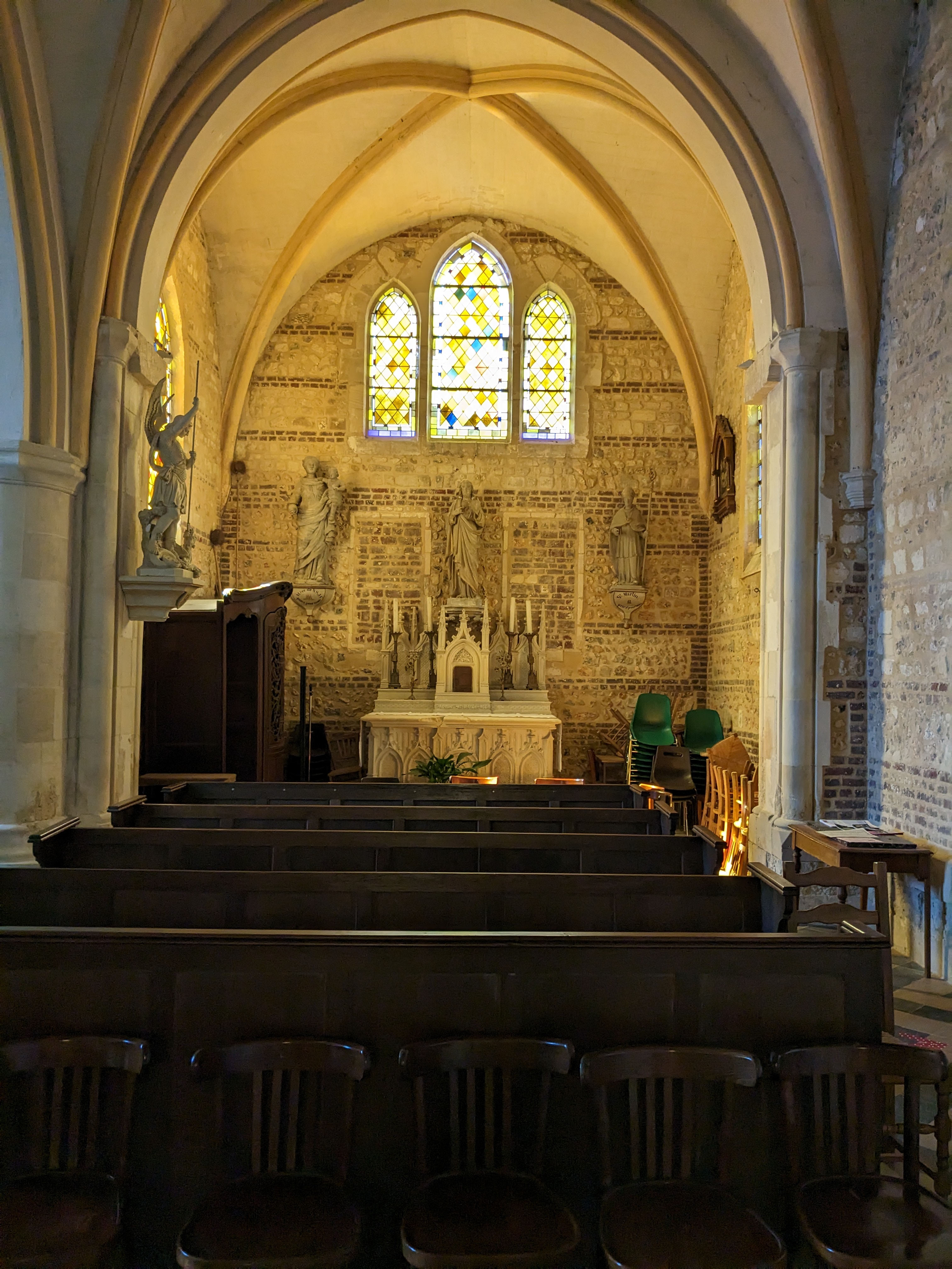 Très belle église, en réfection a l'extérieur, il faut vraiment la visiter car l'intérieur est vraiment très beau entre vitraux d'un seul côté, et lumière exceptionnelle et un coeur donnant sur 5 salle de prière ... Je recommande ...