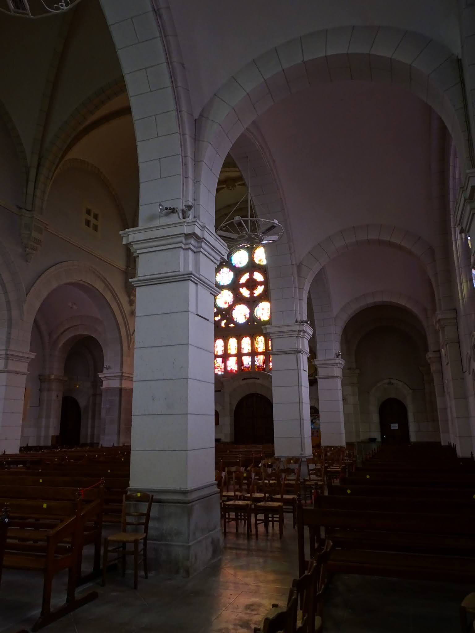 Très belle église de style néo-roman avec de magnifiques verrières aux couleurs très vives. Les trois vitraux du chœur retracent les vies de St Martin et de St Sébastien, à qui l'église est dédiée. Ceux de la nef illustrent les principaux moments de la vie de Marie, et la rosace du fond les huit béatitudes à travers la figure de huit saints.