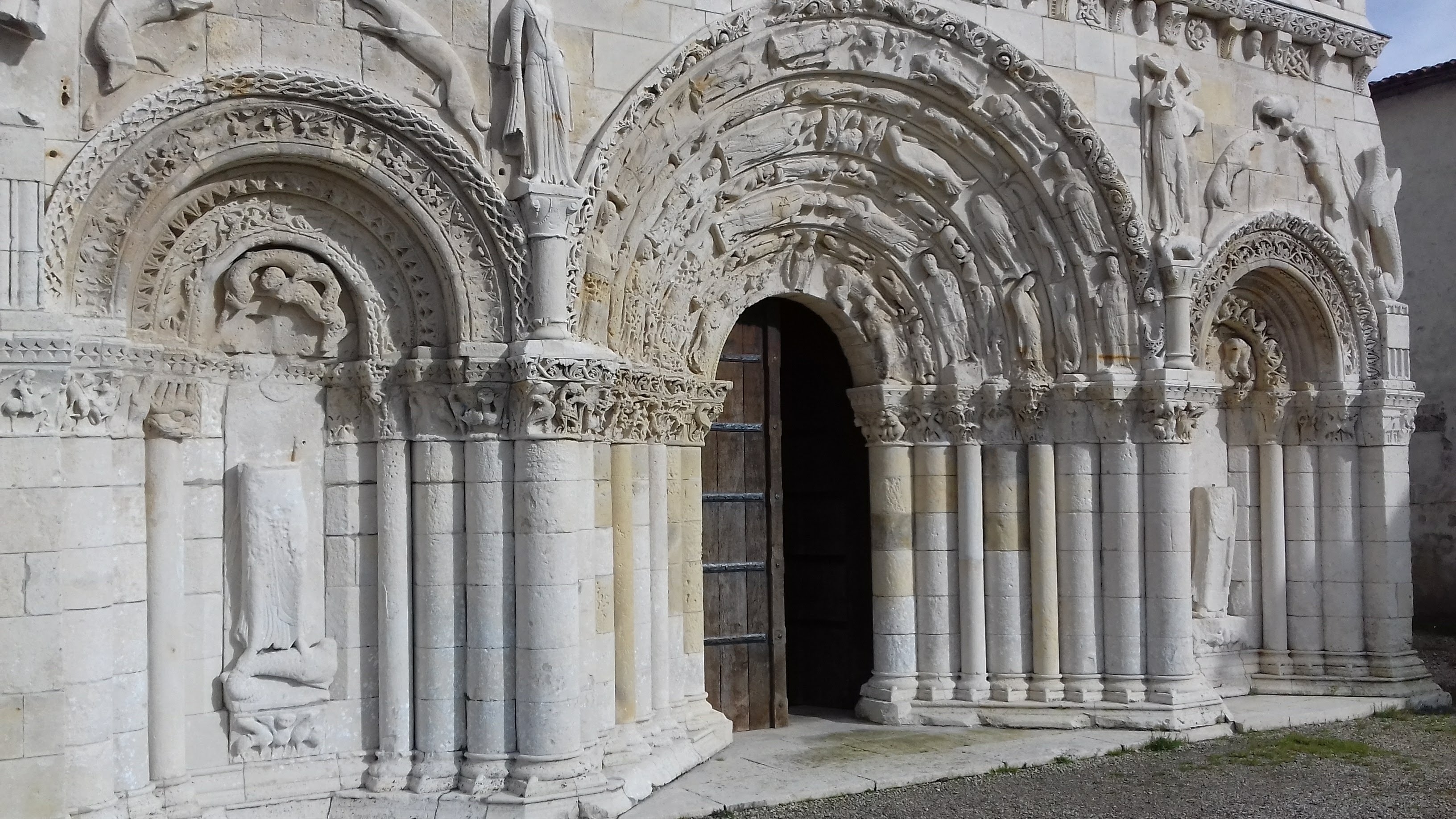 Appelée Marquise de Saintonge à cause de sa somptueuse façade avec son portail à huit voussures avec personnages en bas relief. De très belles sculptures d'anges, les vices et les vertus, des Vierges folles et autres animaux fantastiques. Intérieur magnifique.