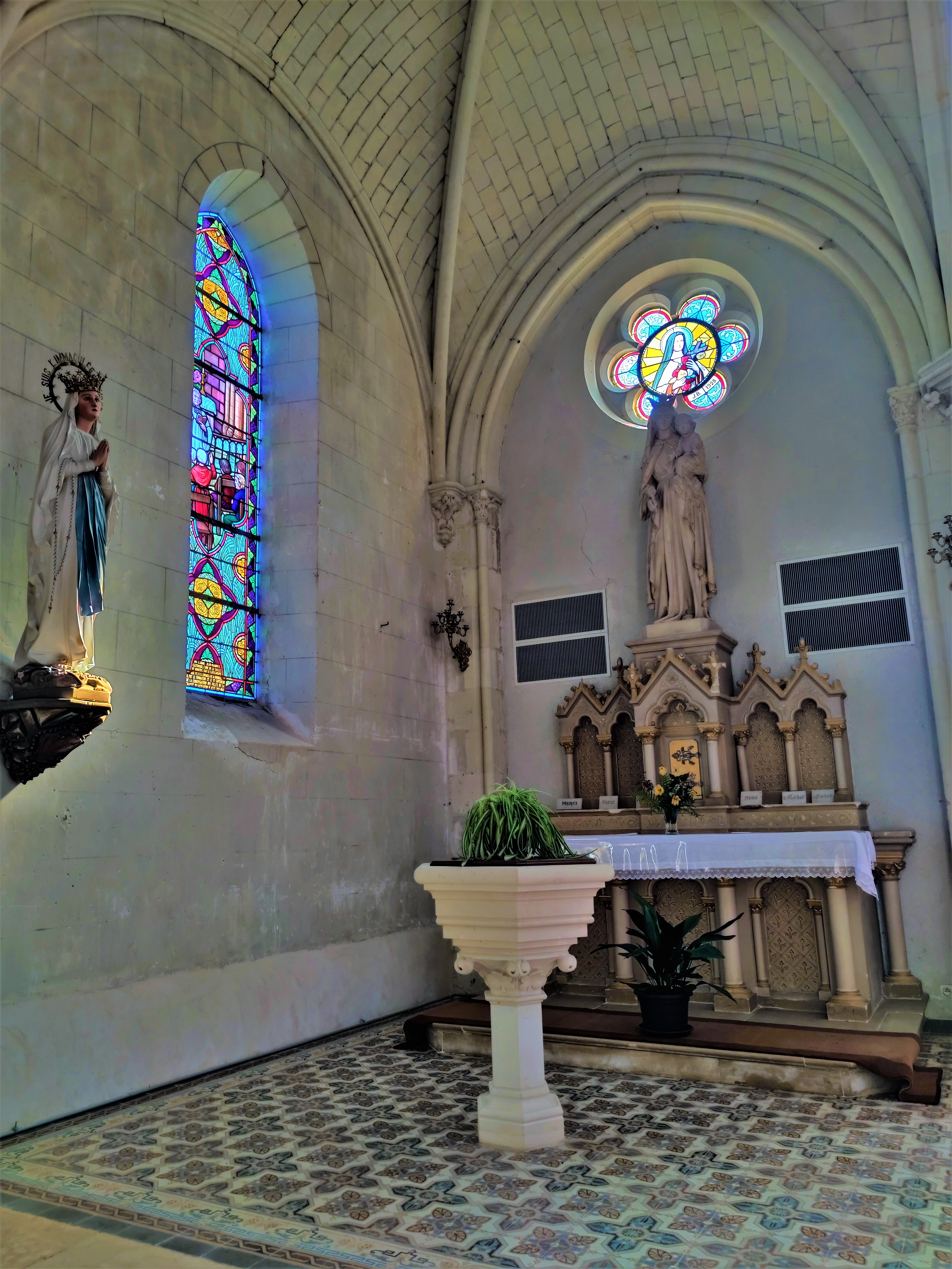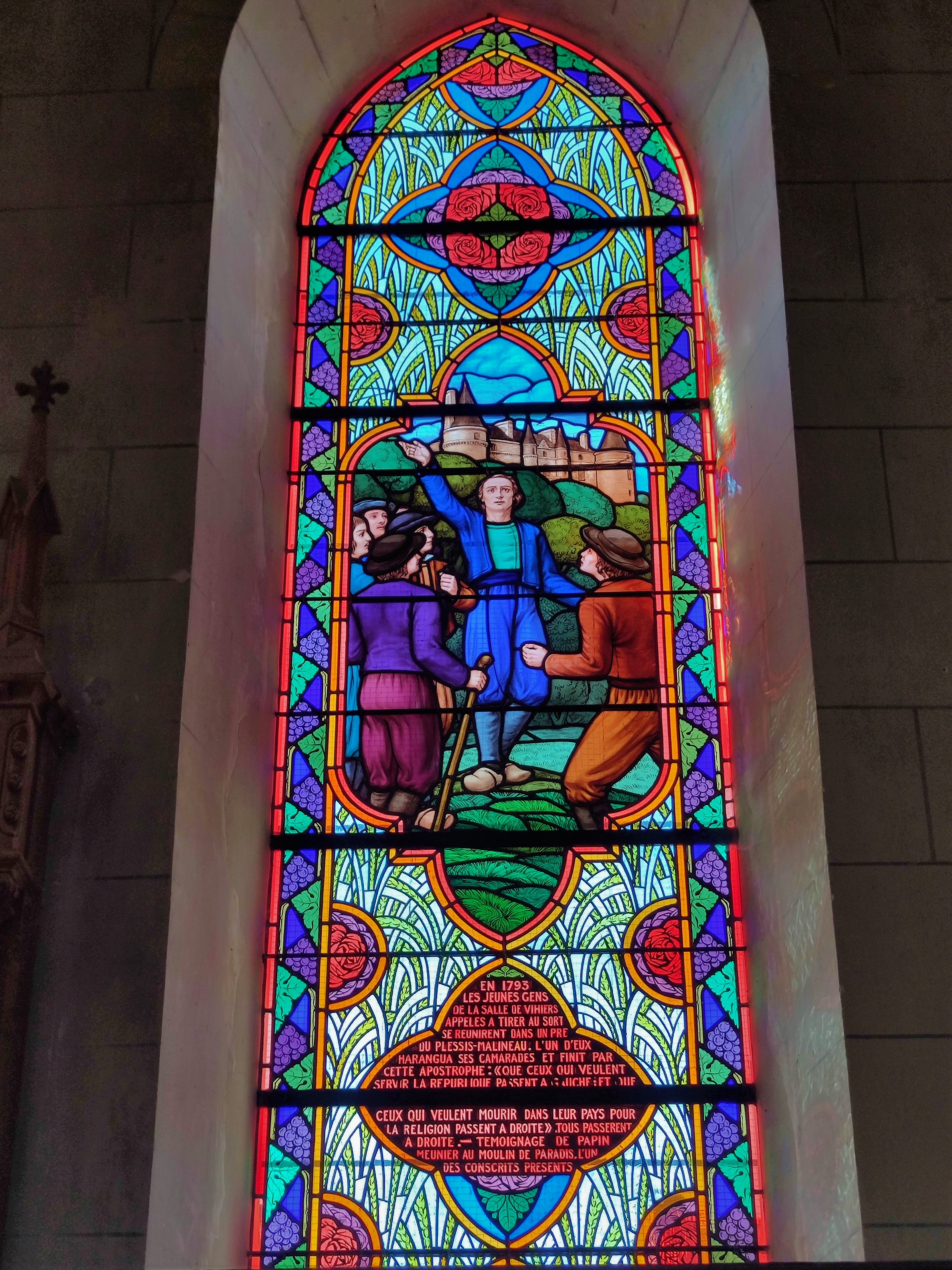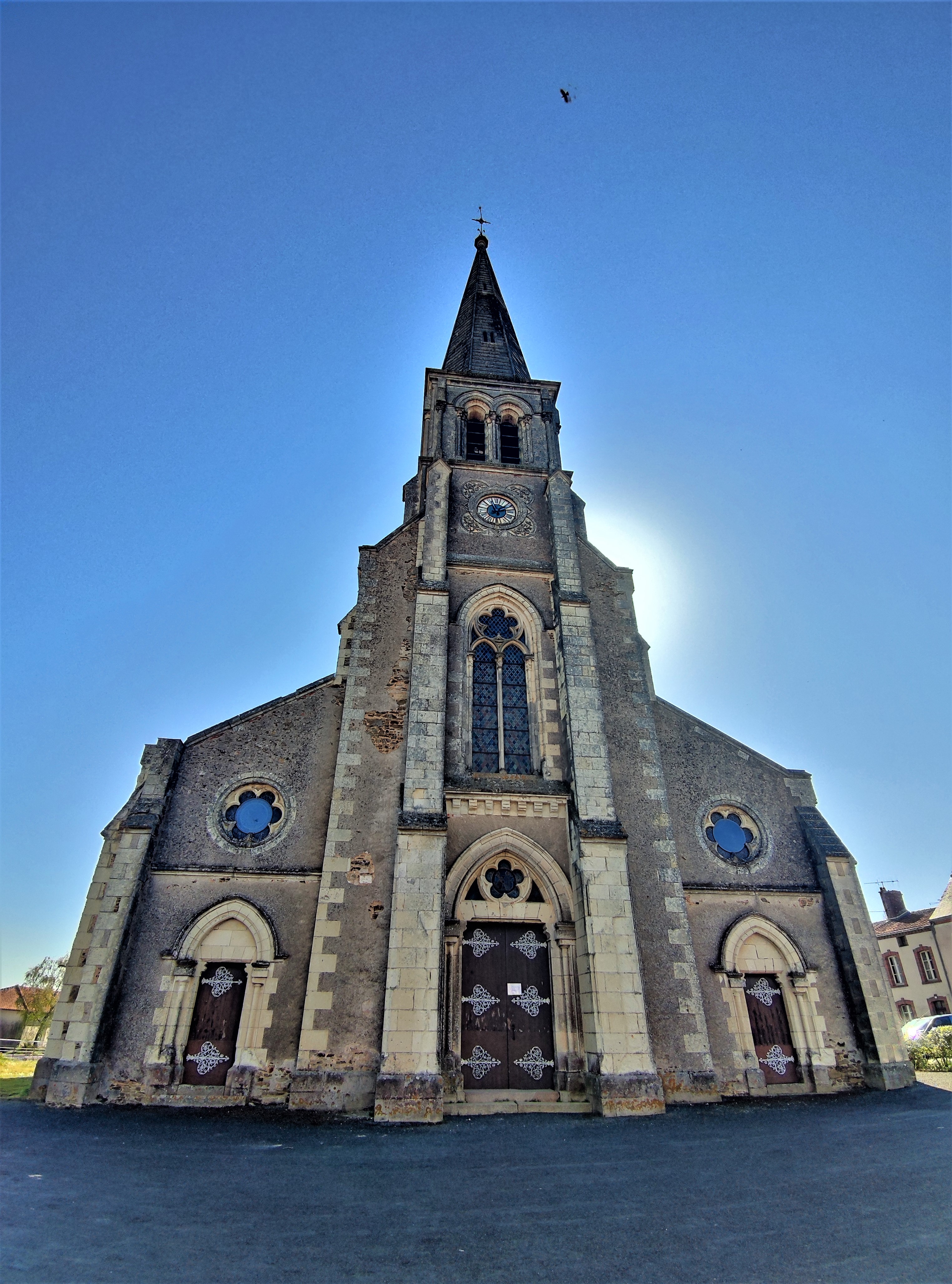 Cette église est ouverte et accueillante, ses vitraux méritent à eux-seuls une visite. Une église primitive existait, détruite au 16ème par les protestants, incendiée pendant les guerres de Vendée, elle fut reconstruite dans le 4ème quart du 19ème. Église ogivale, sa nef à trois vaisseaux, le vaisseau central possède une deuxième élévation avec des baies rondes. C'est une église lumineuse vaste, d'agréables proportions, les vitraux de la nef sont remarquables. Décrivant l'histoire des guerres de Vendée et d'autres événements de la vie de la paroisse, ces créations méritent à elles-seules une visite. D'autres belles choses sont à découvrir.