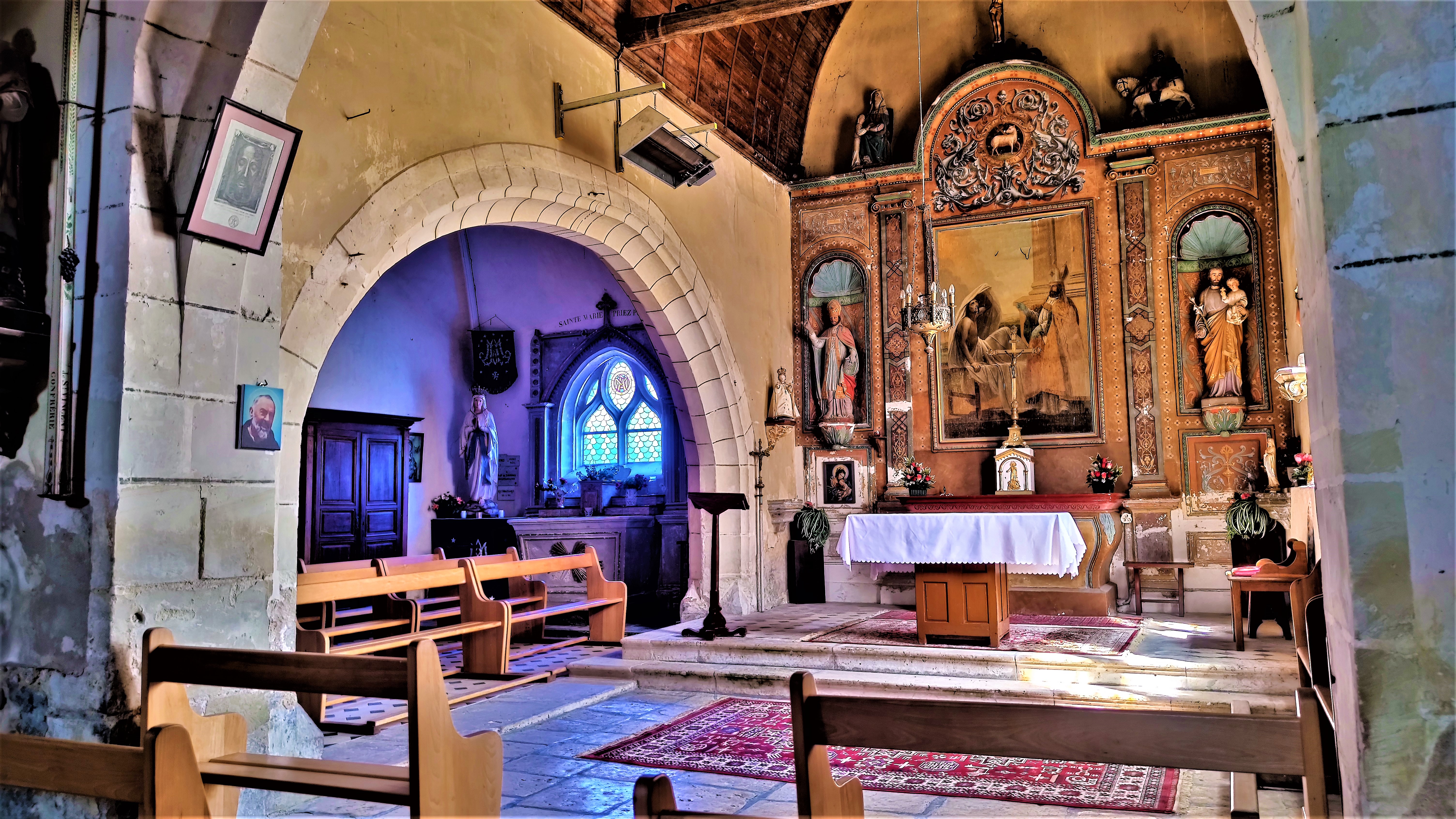 Une modeste église chaleureusement meublée et décorée, j'ai beaucoup aimé cette découverte. Église préservée depuis un millénaire, sa construction date du 11è, elle fut transformée au 16è et encore au 19è. Il est facile de s'y sentir bien, elle a été construite pour ça. Lieu idéal d'introspection, de prière ou de méditation, les photos jointes expriment mieux que des mots l'atmosphère accueillante qui règne.