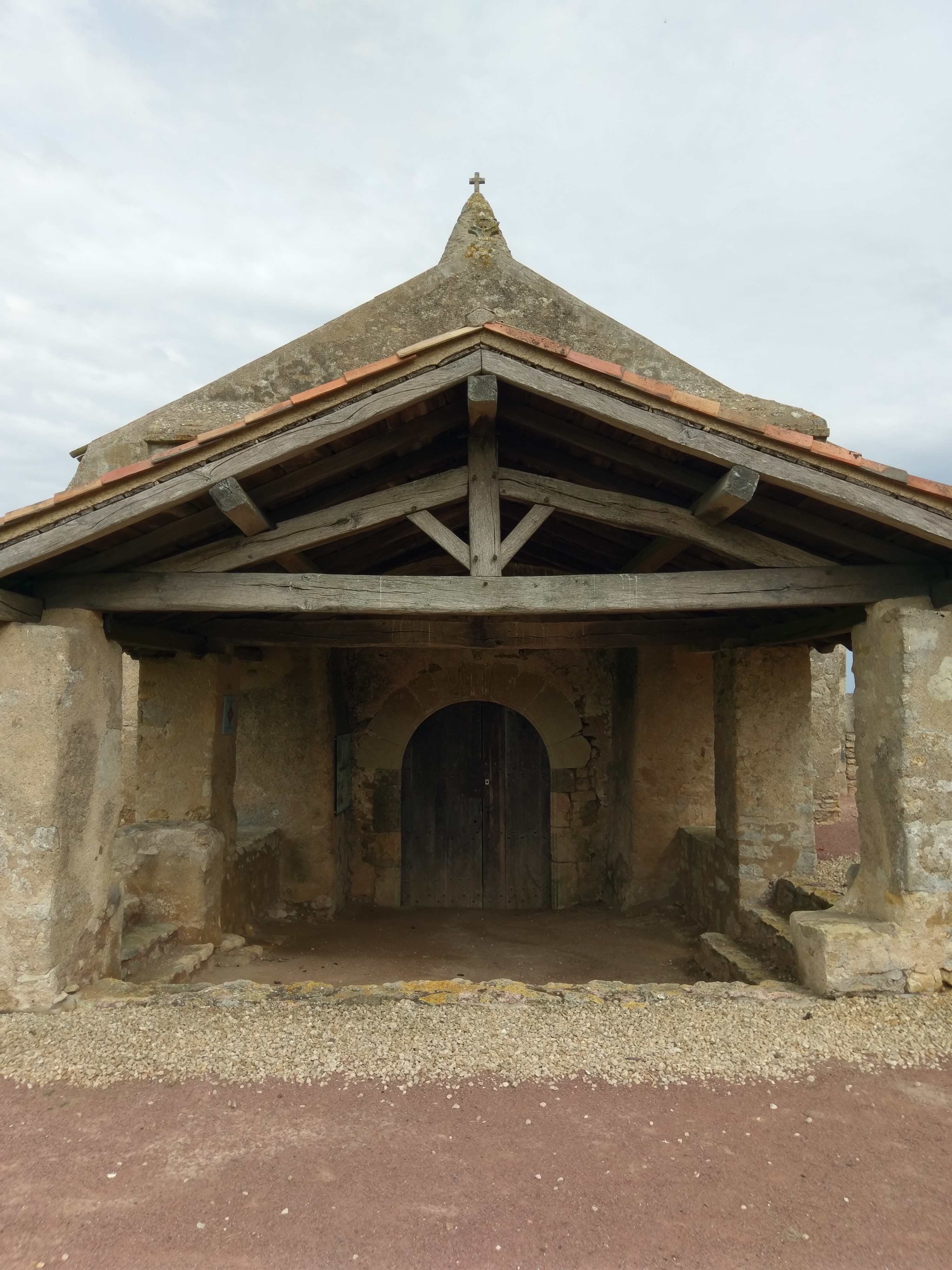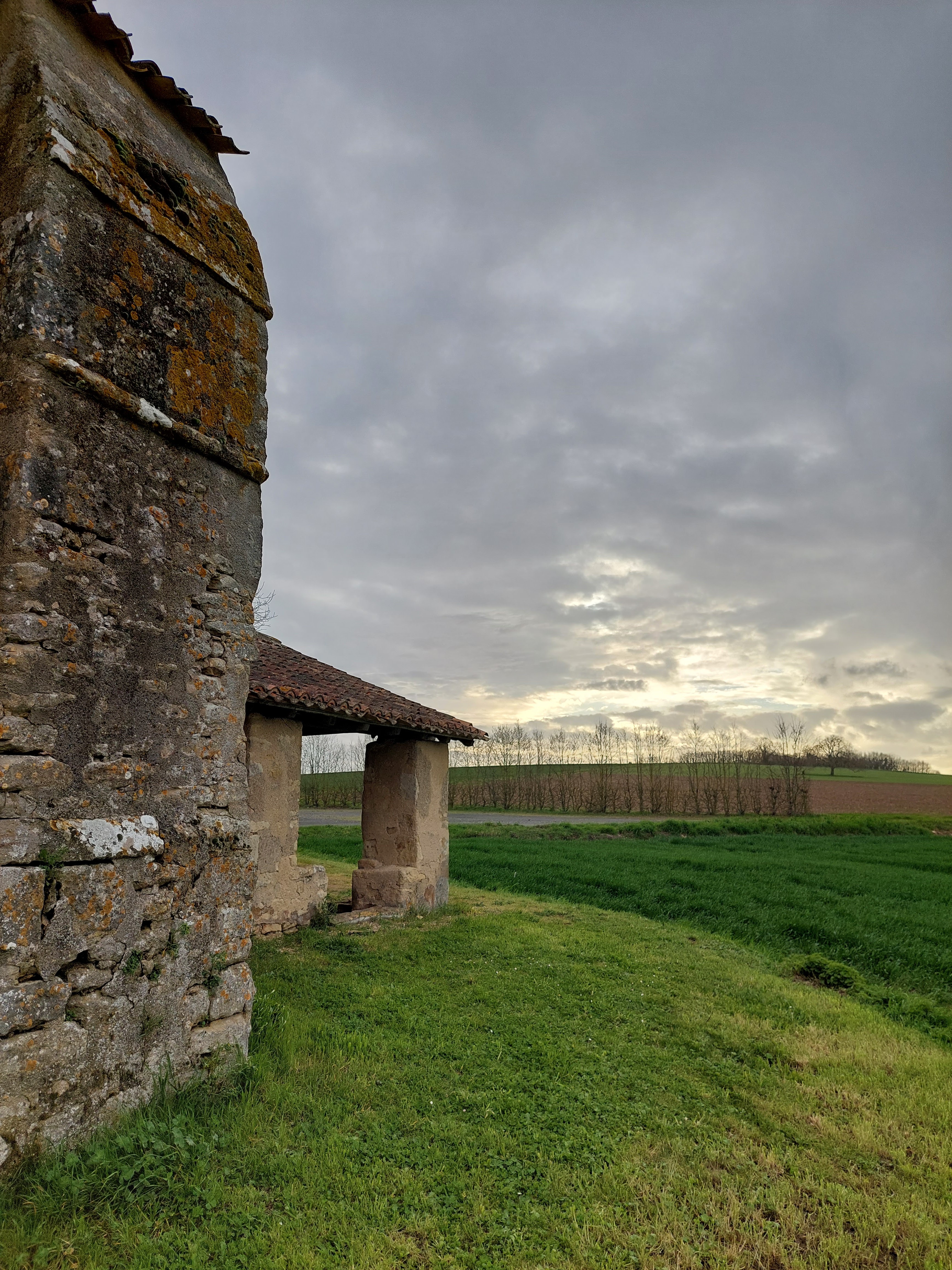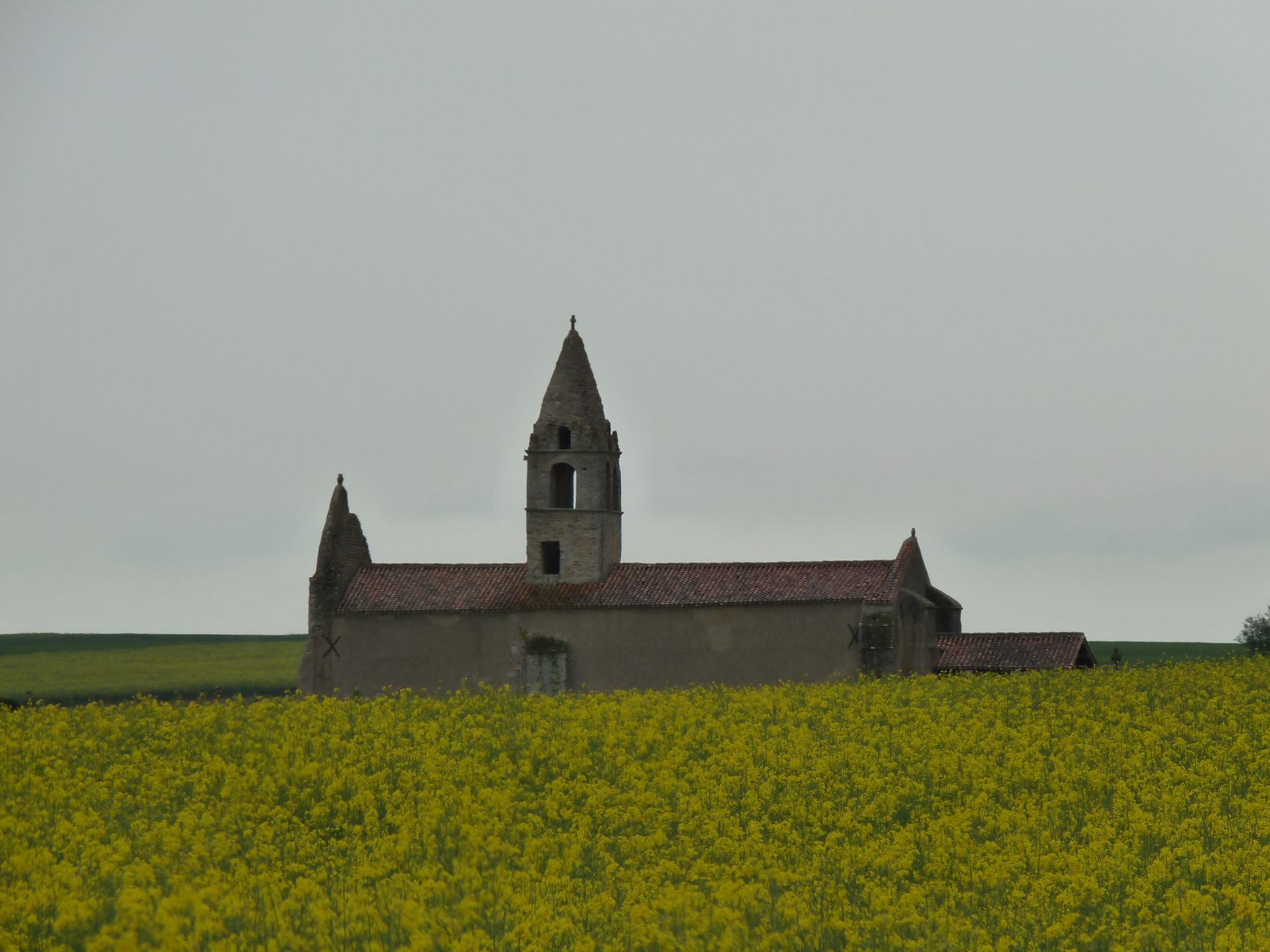 Étonnante église sans village, comme un film à la Alfred Hitchcock, elle s'impose aux milieu des champs comme le point du bout du monde, ou nul n'est aller plus loin... Un arbre qui ne s'est pas encore paré de sa verdure au loin, pourrait servir de perchoir aux oiseaux de mauvaise augure... Nous avons adoré cet endroit.