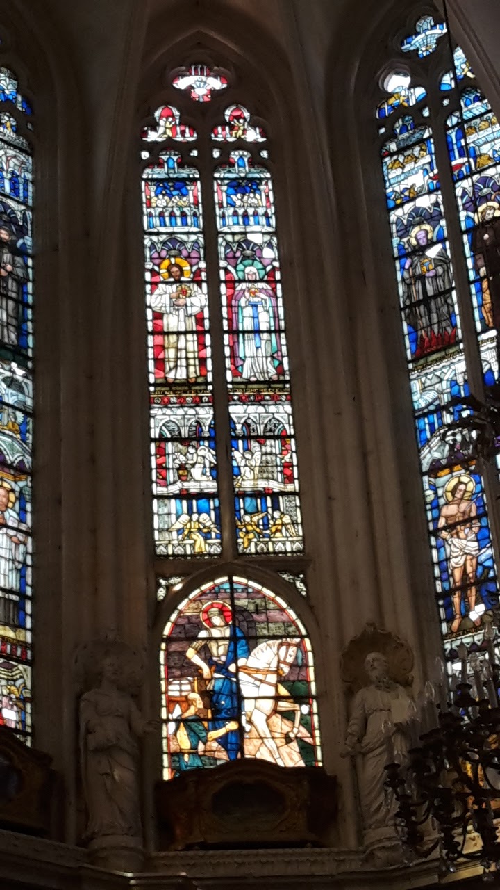 Très belle église avec des peintures de fenêtres, des fresques et des sculptures impressionnantes.