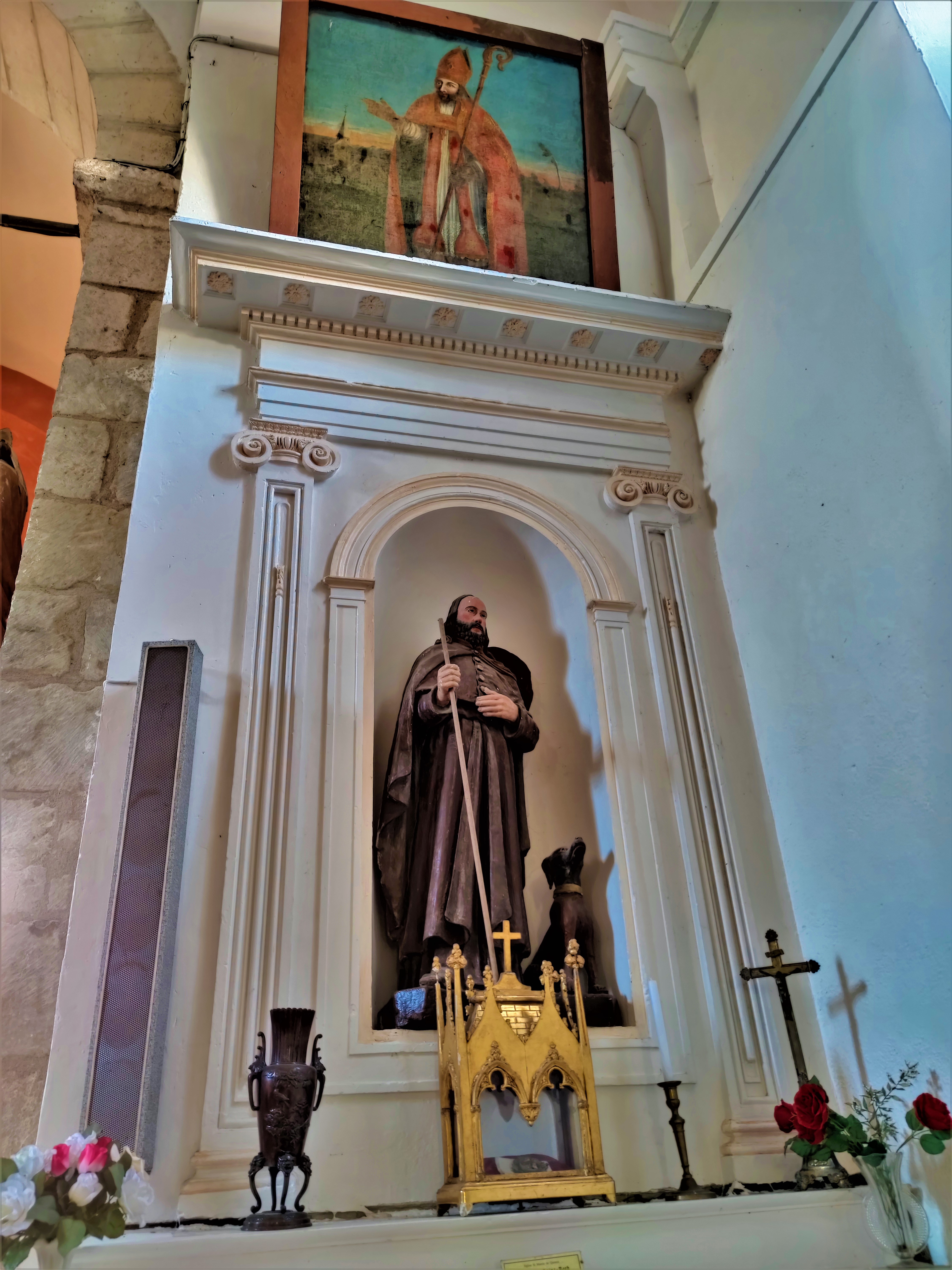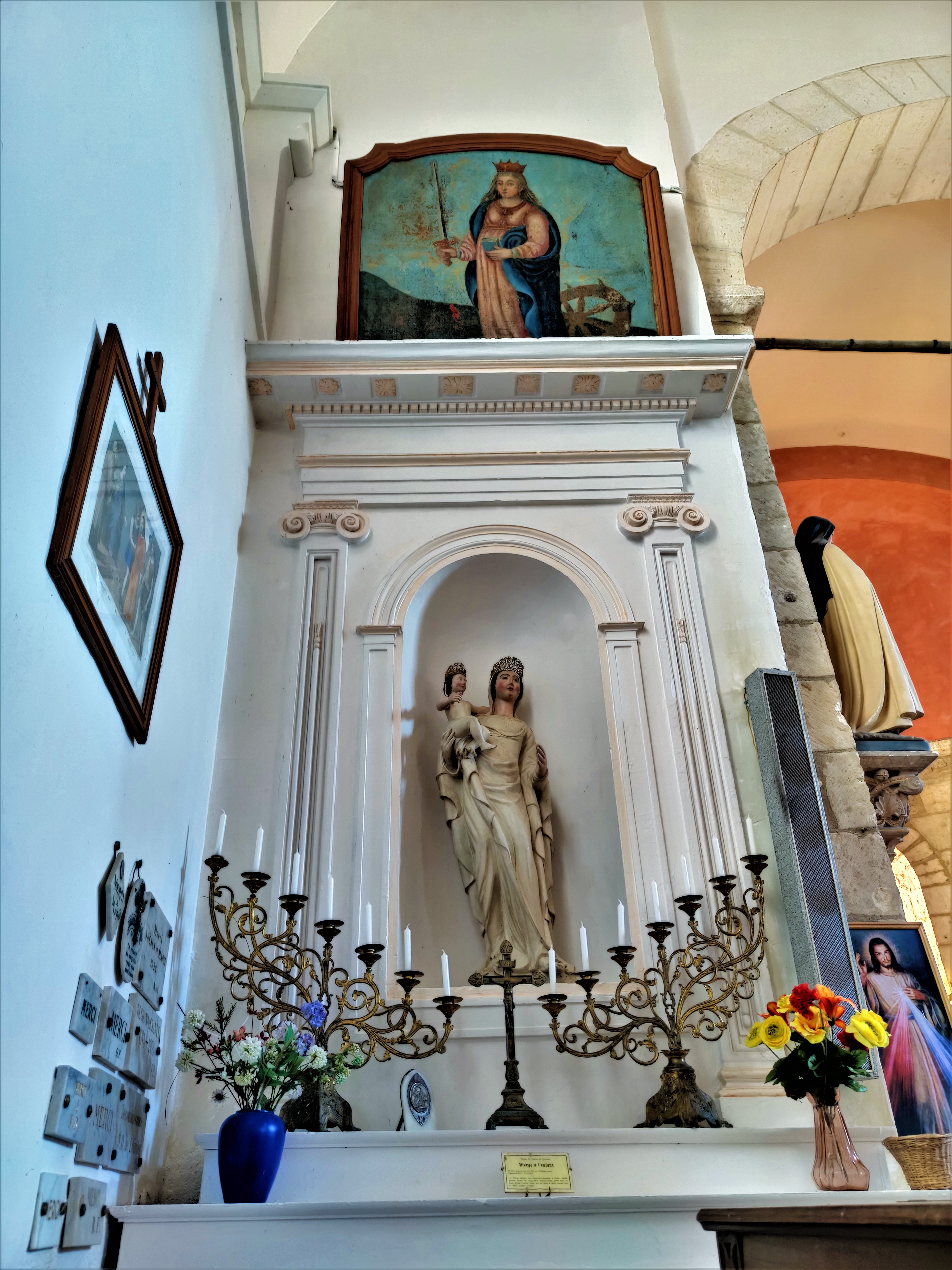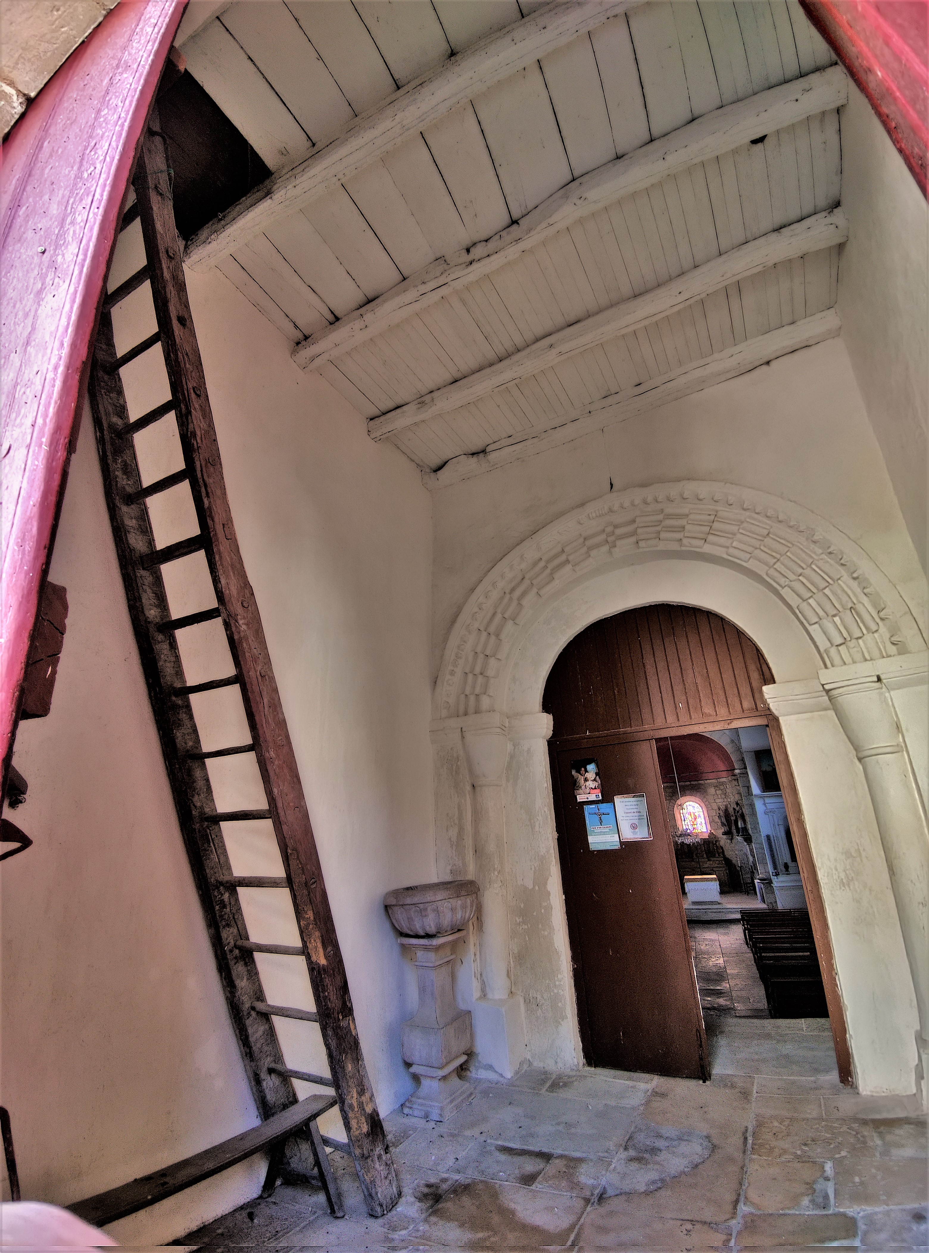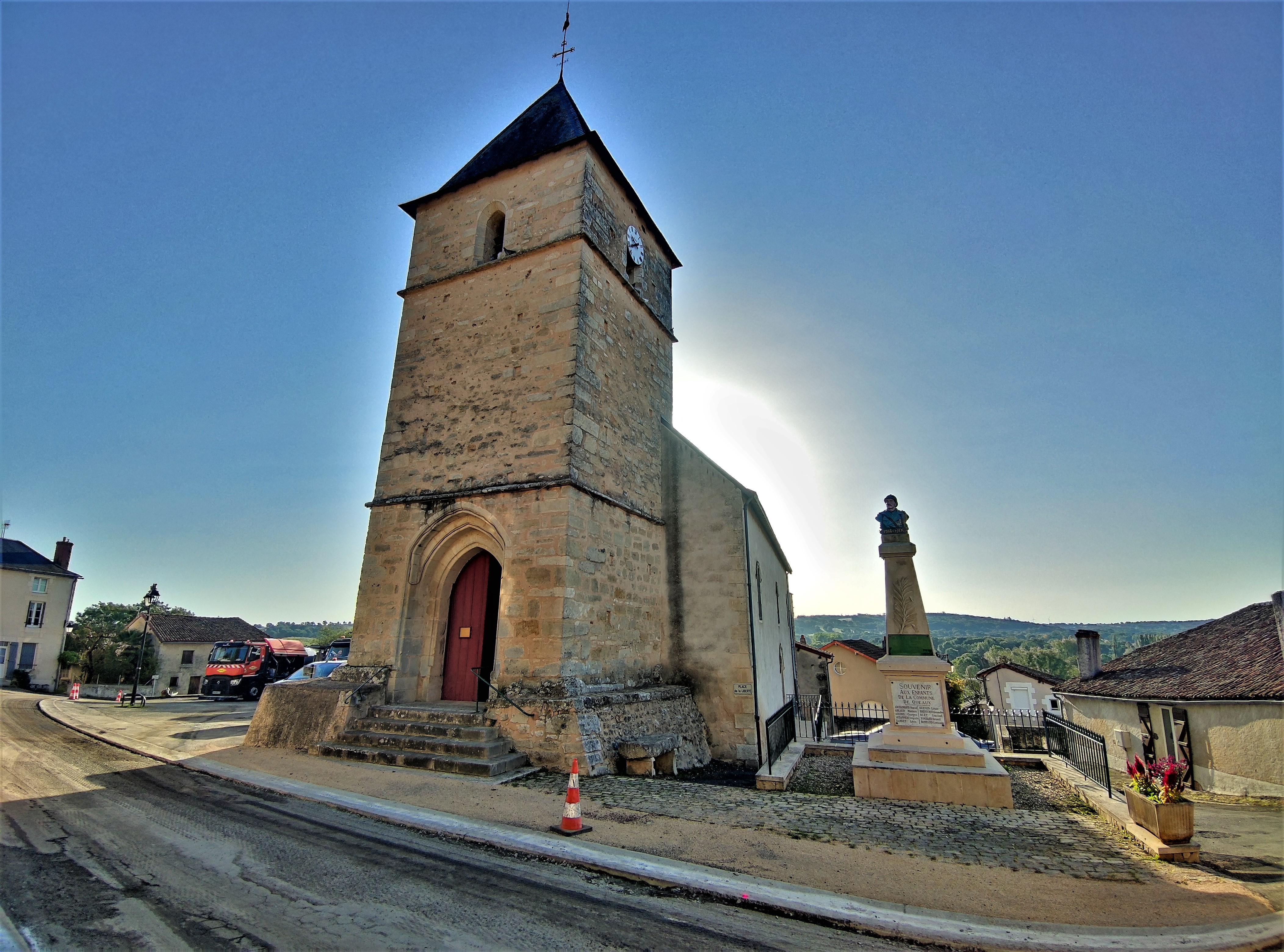 Une église du 11ème et 12ème, construite à flanc de coteau, ouverte et accueillante. On entre par un clocher-porche roman carré, couvert d'un toit à 4 pans, il faut gravir 4 marches pour accéder au portail ogival du 15ème. La partie basse du clocher fait narthex, elle s'ouvre sur la nef à vaisseau unique par un portail roman. Une échelle en bois permet l'accès à la salle des 2 cloches installées au 19ème. L'entrée de la nef est originale, il faut descendre 13 marches pour y accéder, seules les femmes étaient contraintes à cet exercice. En effet, réservées aux hommes, 2 tribunes sont placées de chaque côté de l'escalier, leurs accès sont situés au niveau du palier supérieur. 5 travées marquées par des arcs doubleaux sont percées de 3 ouvertures de chaque côté. La fausse voûte en berceau du 19ème préserve l'allure romane, sans le cachet d'une voûte en pierres. L'arc triomphal qui marque l'entrée du chœur est encadré par 2 autels avec retables, niches et statues, dont une vierge à l'enfant du 16ème. Au-dessus des retables sont placés des tableaux dont une représentation de Saint-Martin du 18ème. Le chœur s'ouvre sur l'abside voûtée en demi-coupole du sanctuaire. La crypte sur laquelle il fut construit a disparu au 19ème. Un christ amputé de ses bras à la révolution est placé à côté du maître-autel. Derrière ce dernier, la verrière représente Saint-Martin, ou plutôt nitraM-tniaS, comme écrit sur ce vitrail, posé derrière-devant par erreur. Une église romane typique et charmante, un mobilier et une statuaire intéressante, un endroit bien agréable à visiter, merci à la commune de la garder accessible. Cela marque l'intérêt des citoyens pour leur patrimoine bâti et des paroissiens pour leur église. Lieux de célébration, les églises médiévales étaient aussi lieux de débats et de décisions.