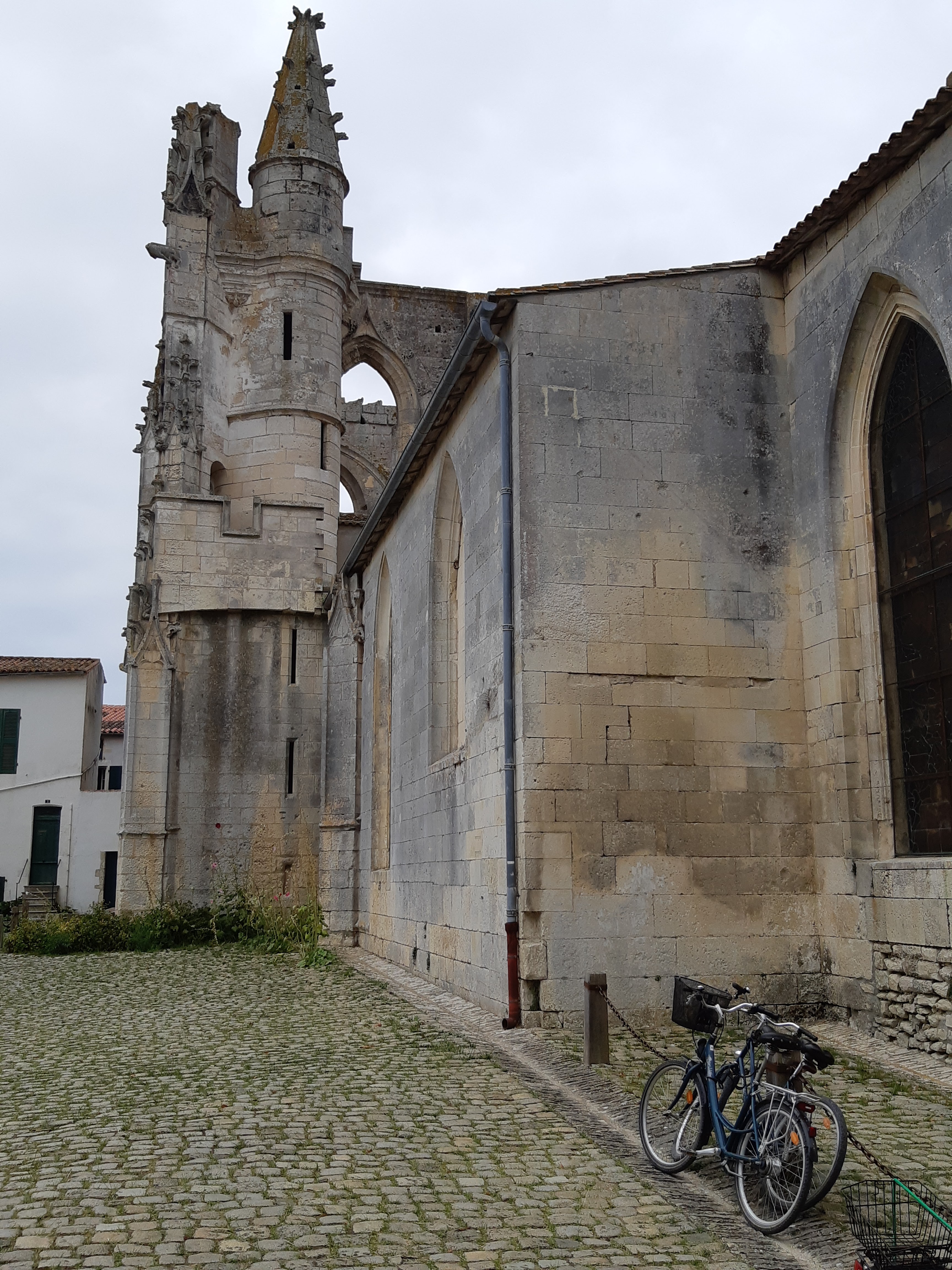 L'église Saint-Martin de Saint-Martin-de-Ré dresse encore ses ruines gothiques au cœur de la ville. Ravagée à plusieurs reprises par les conflits, elle fut finalement reconstruite plus modestement aux xviie siècle et xviiie siècle, en réutilisant ce qui subsistait de l'édifice gothique.