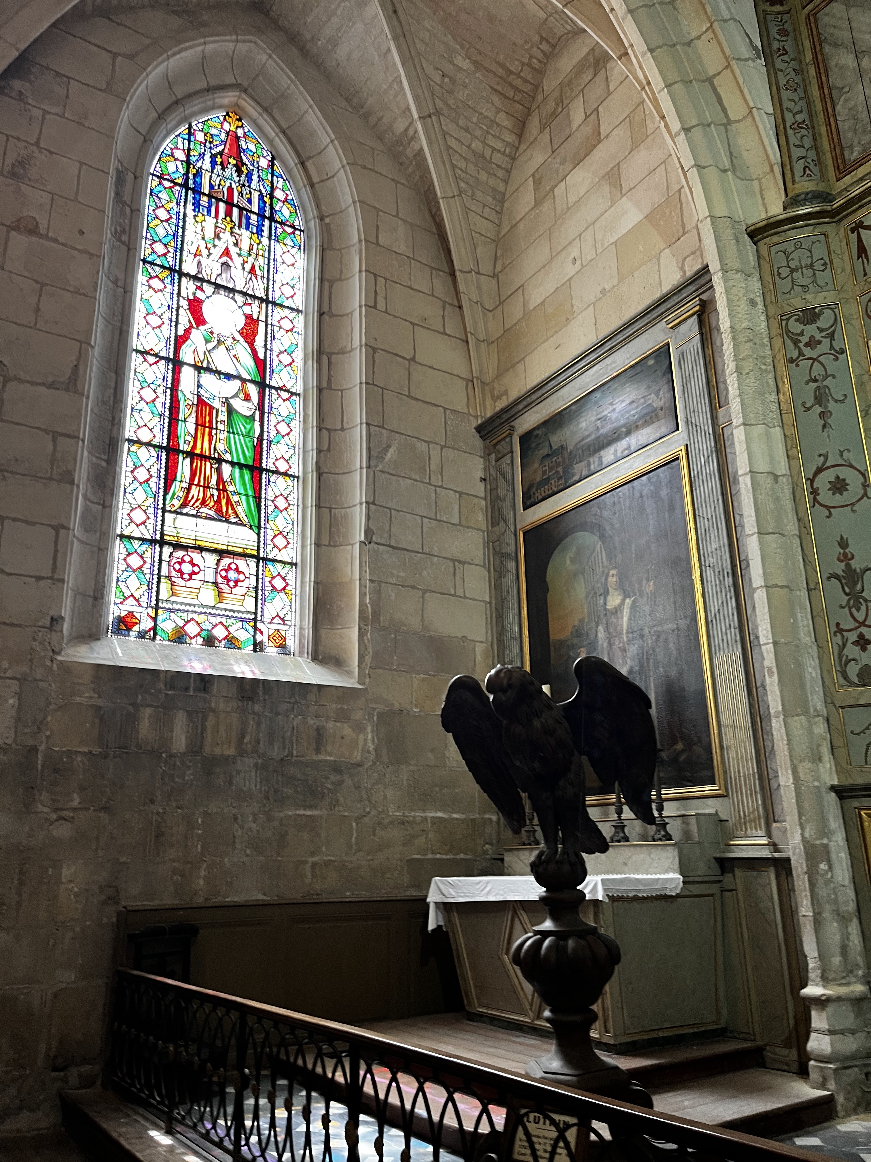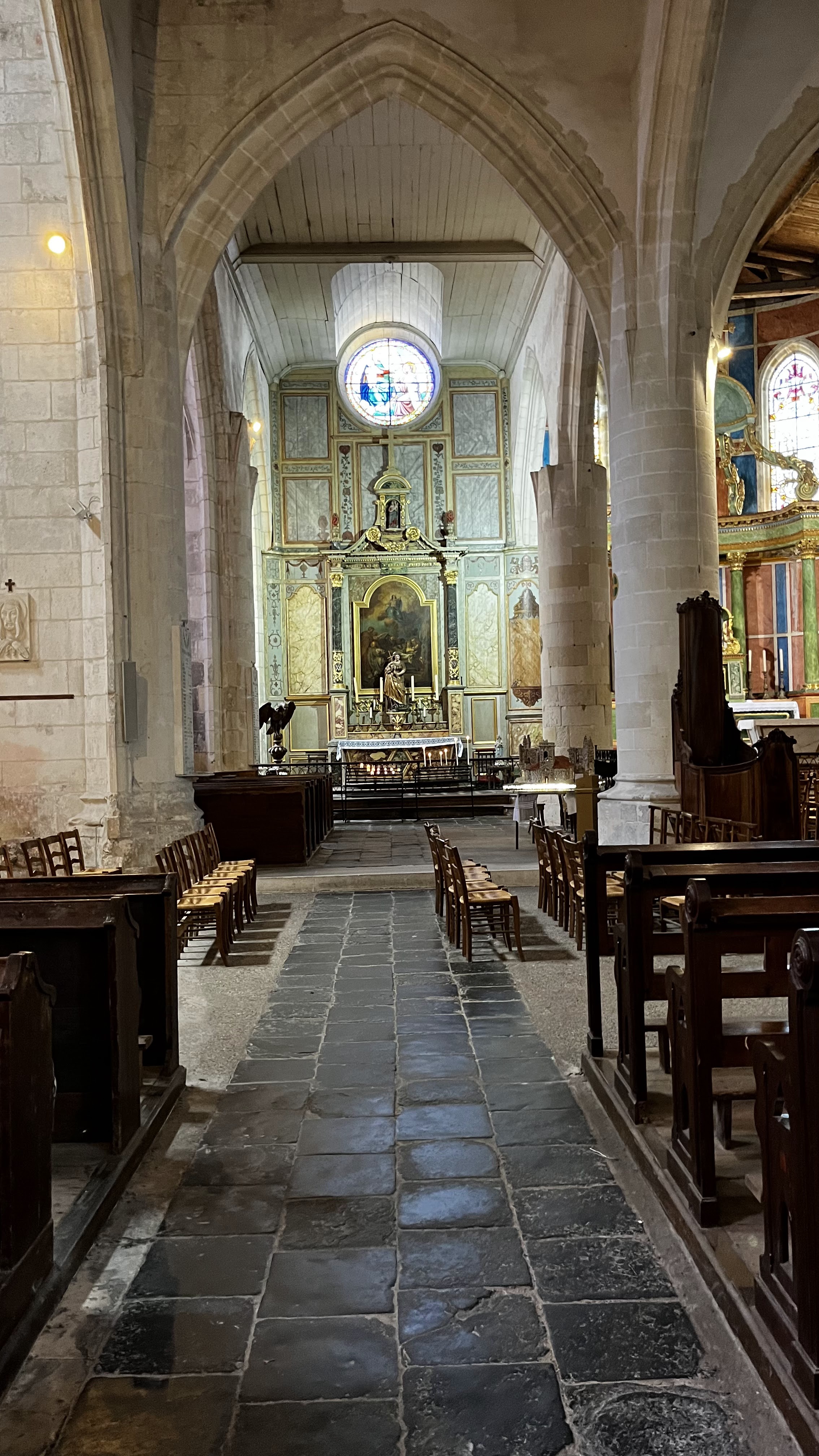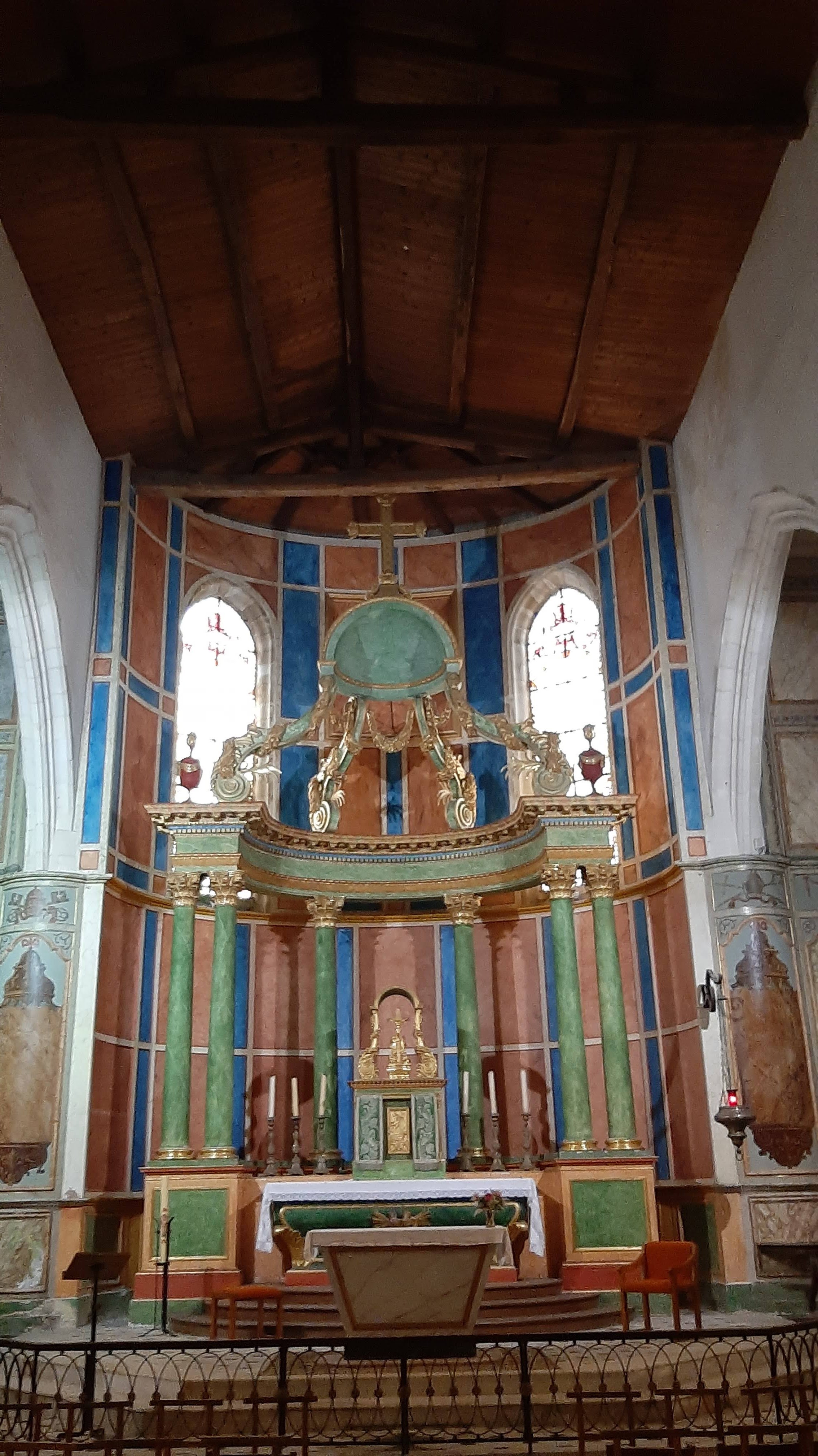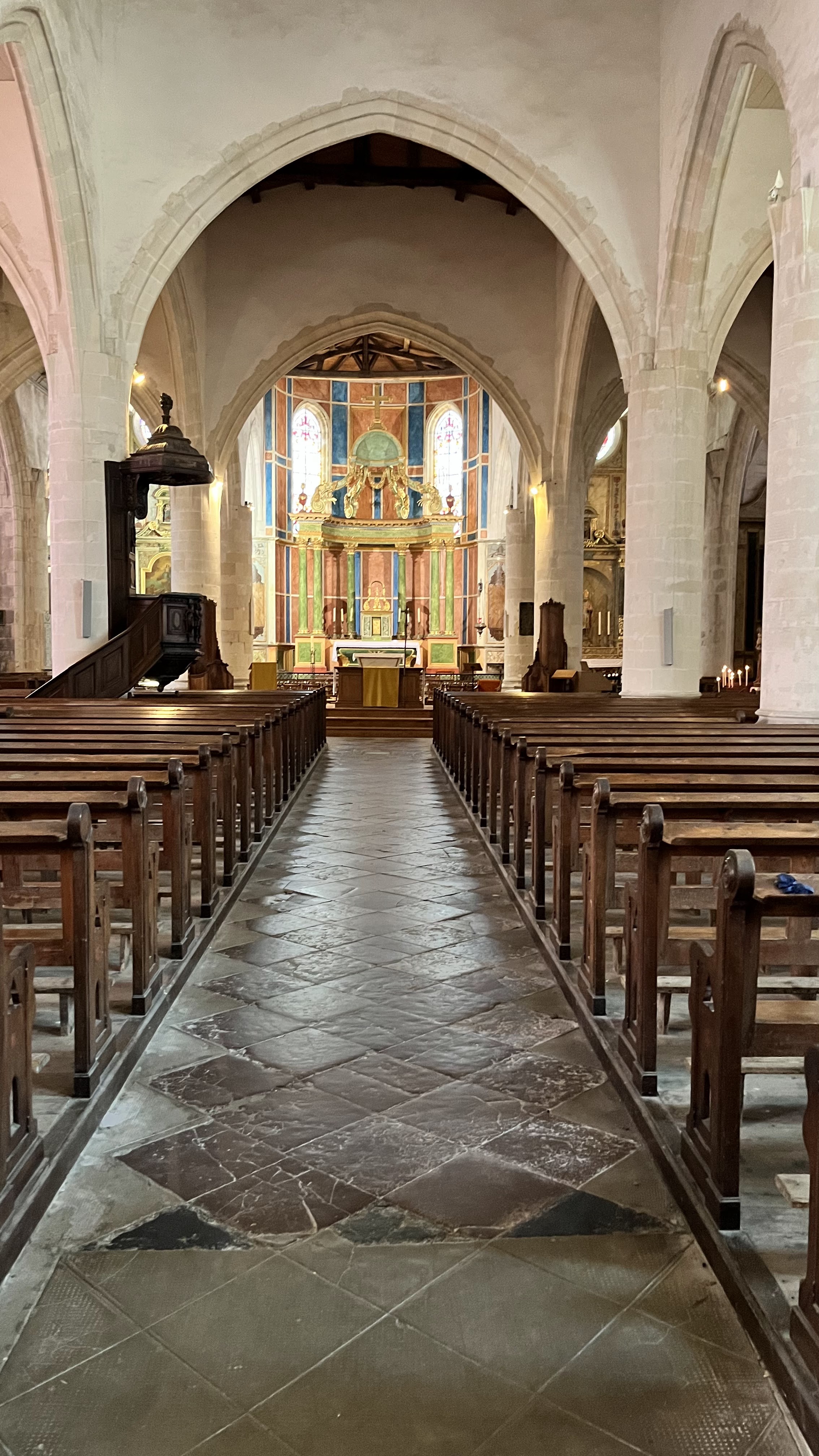 Très belle église avec un coeur polychrome et de très beaux vitraux.