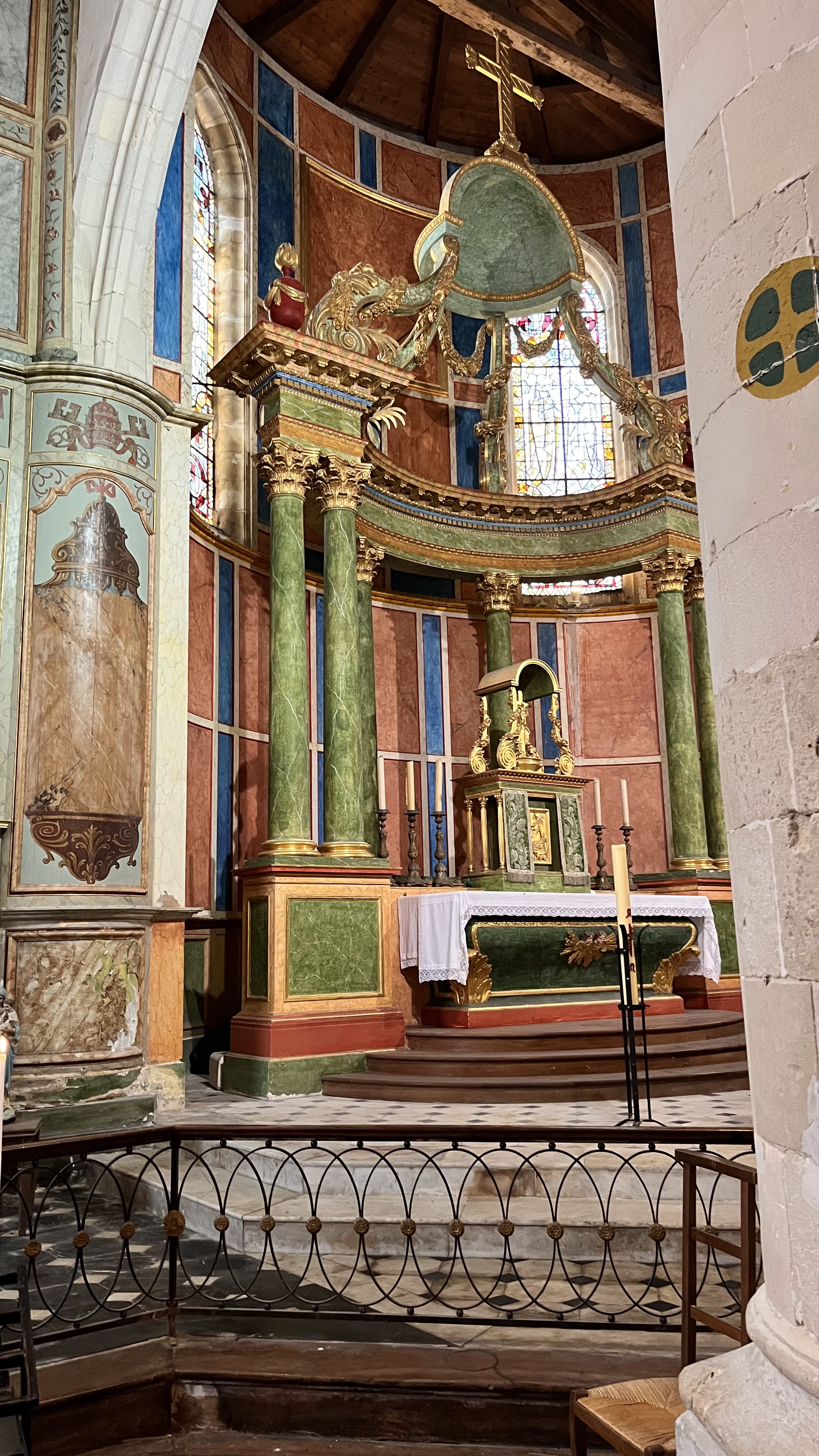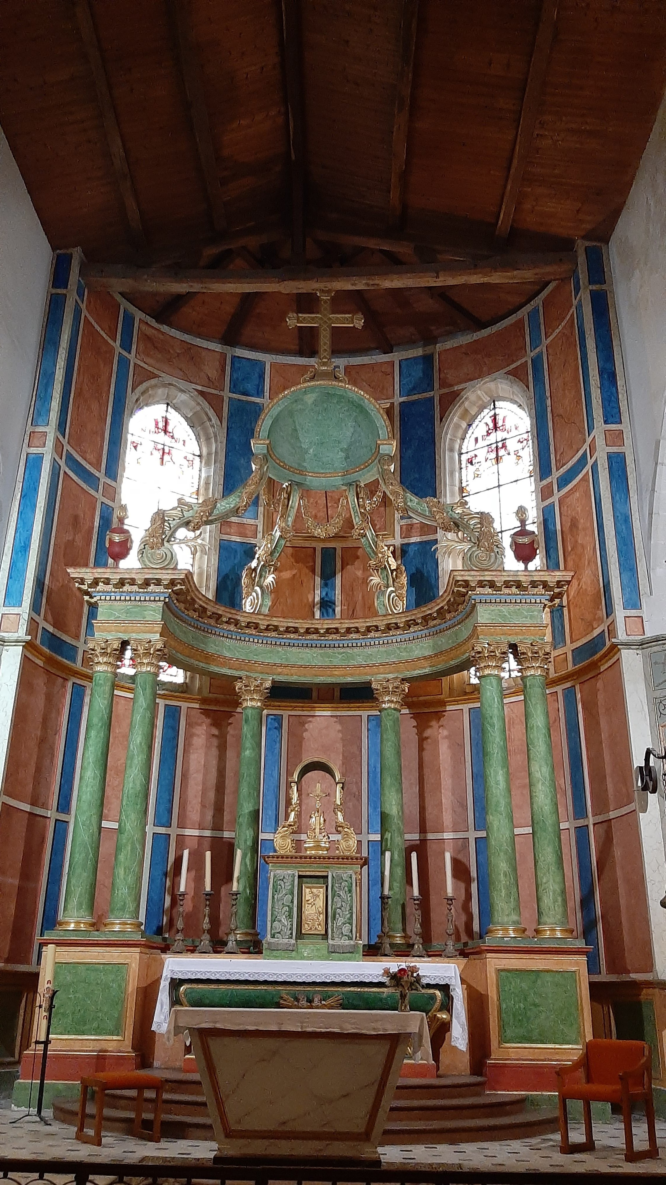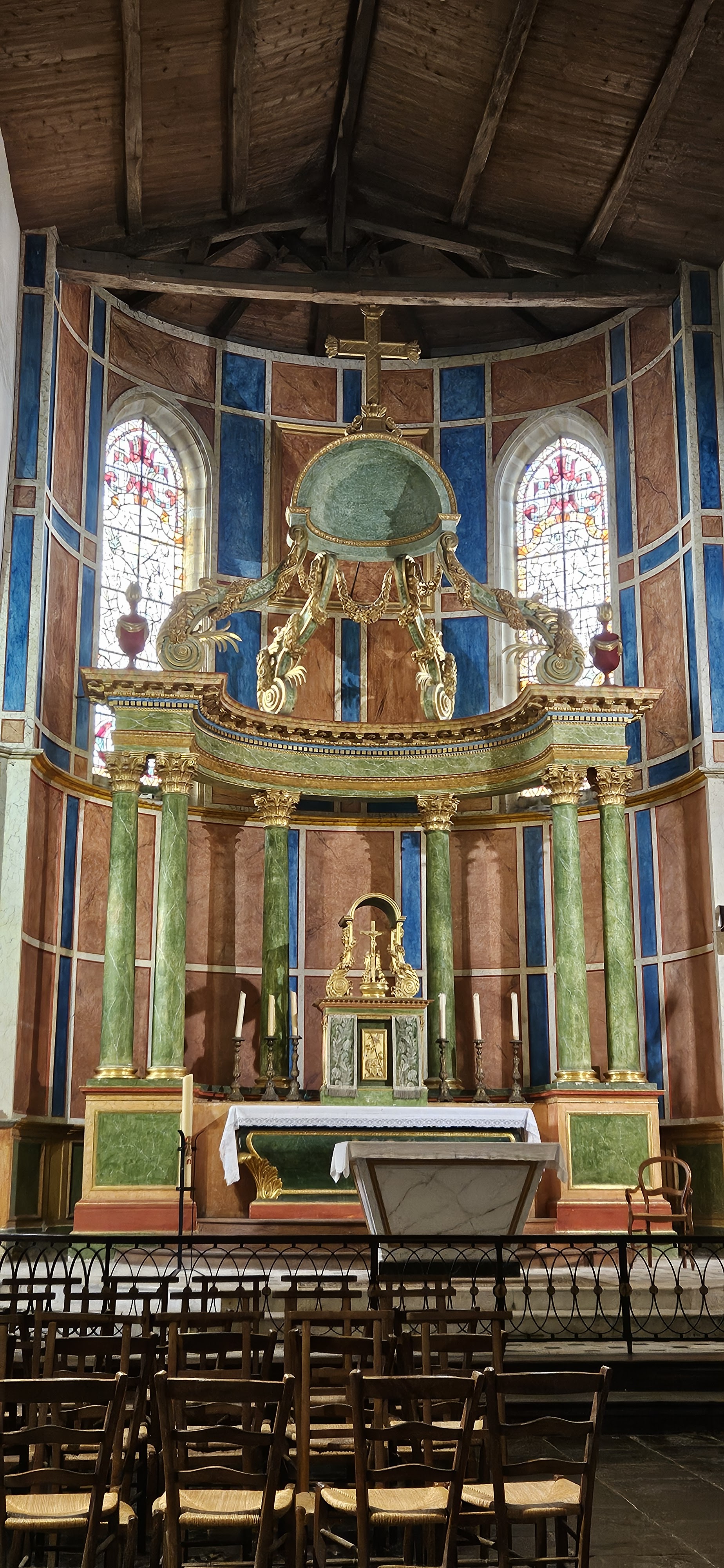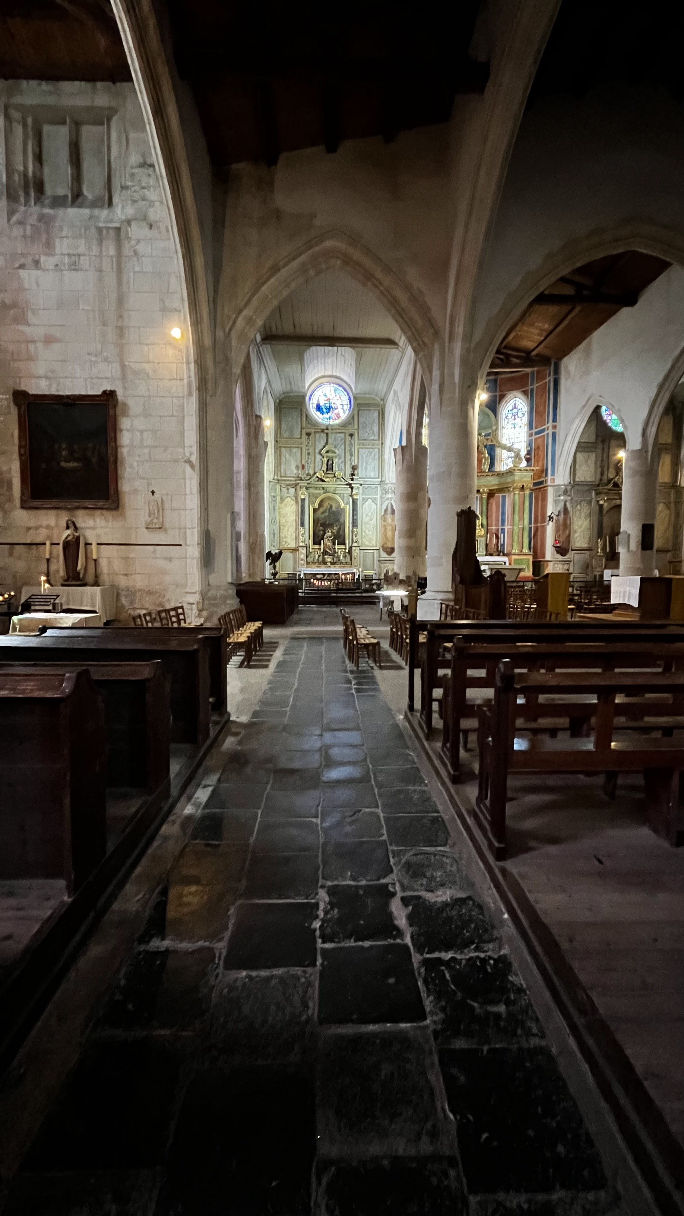 Très belle église avec un coeur polychrome et de très beaux vitraux.