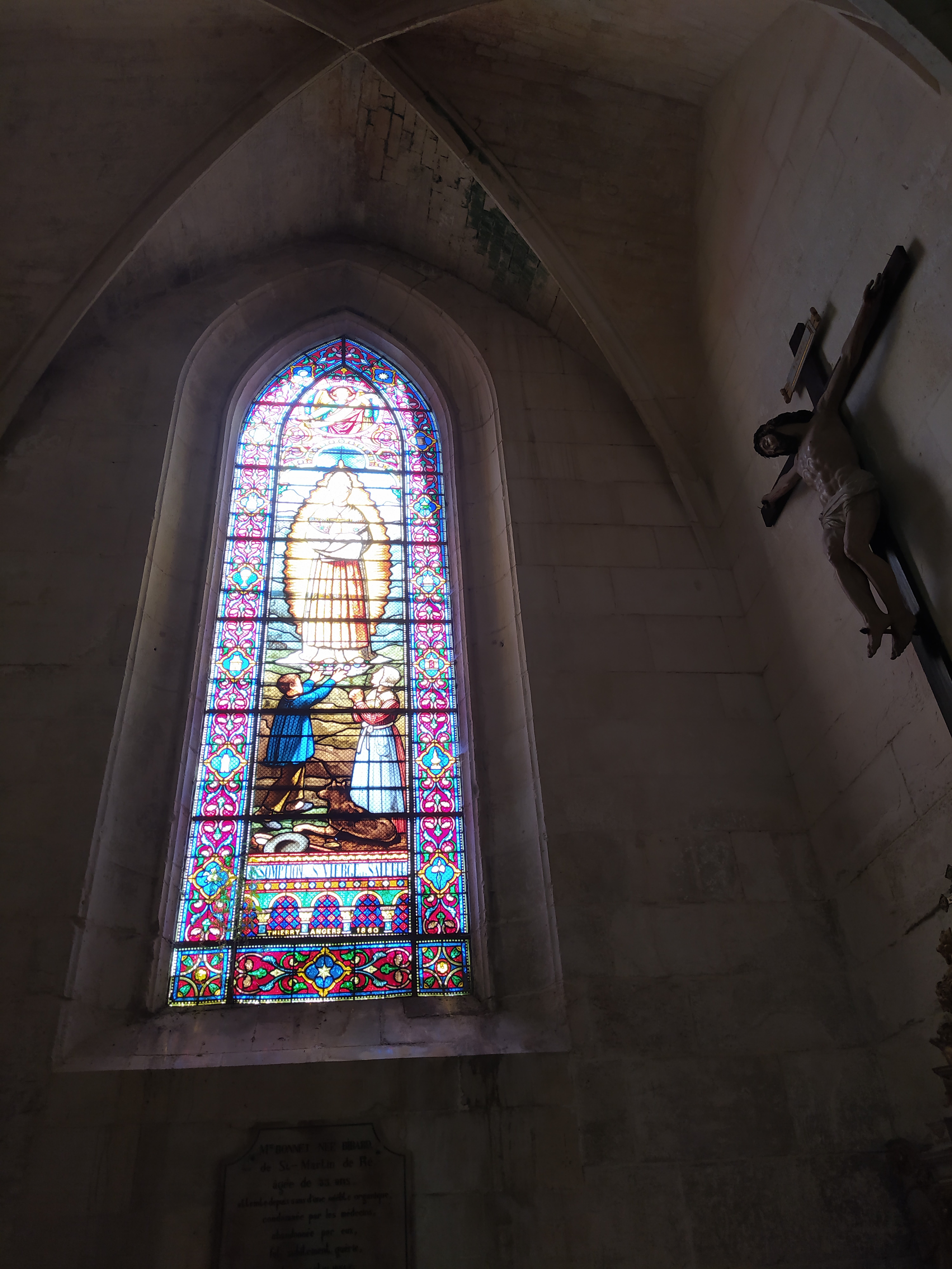 Magnifique. Cet édifice du 15ème est doté de 3 cloches. Le 1er clocher s'effondra en 1774 Incendié en 1964 la toiture fut refaite. Sur le trasept nord les restes de l'ancien clocher sont nettement visibles. Les vitraux sont magnifiques. À l'intérieur de cette église figure un Hôtel en hommage aux prêtres enfermés en la citadelle de Saint-Martin en Ré. Le chemin de croix est assez moderne. Le Choeur est magnifique.