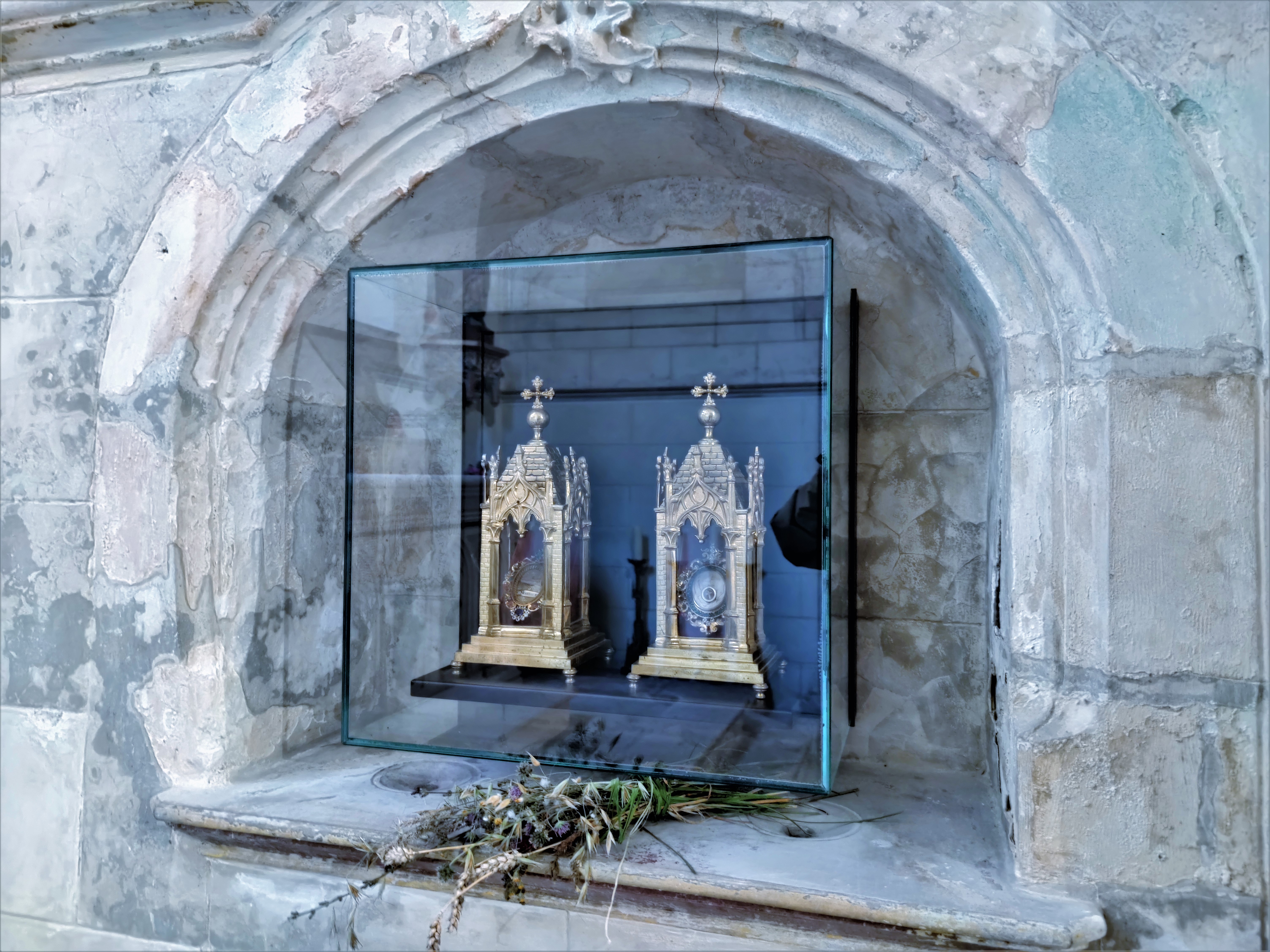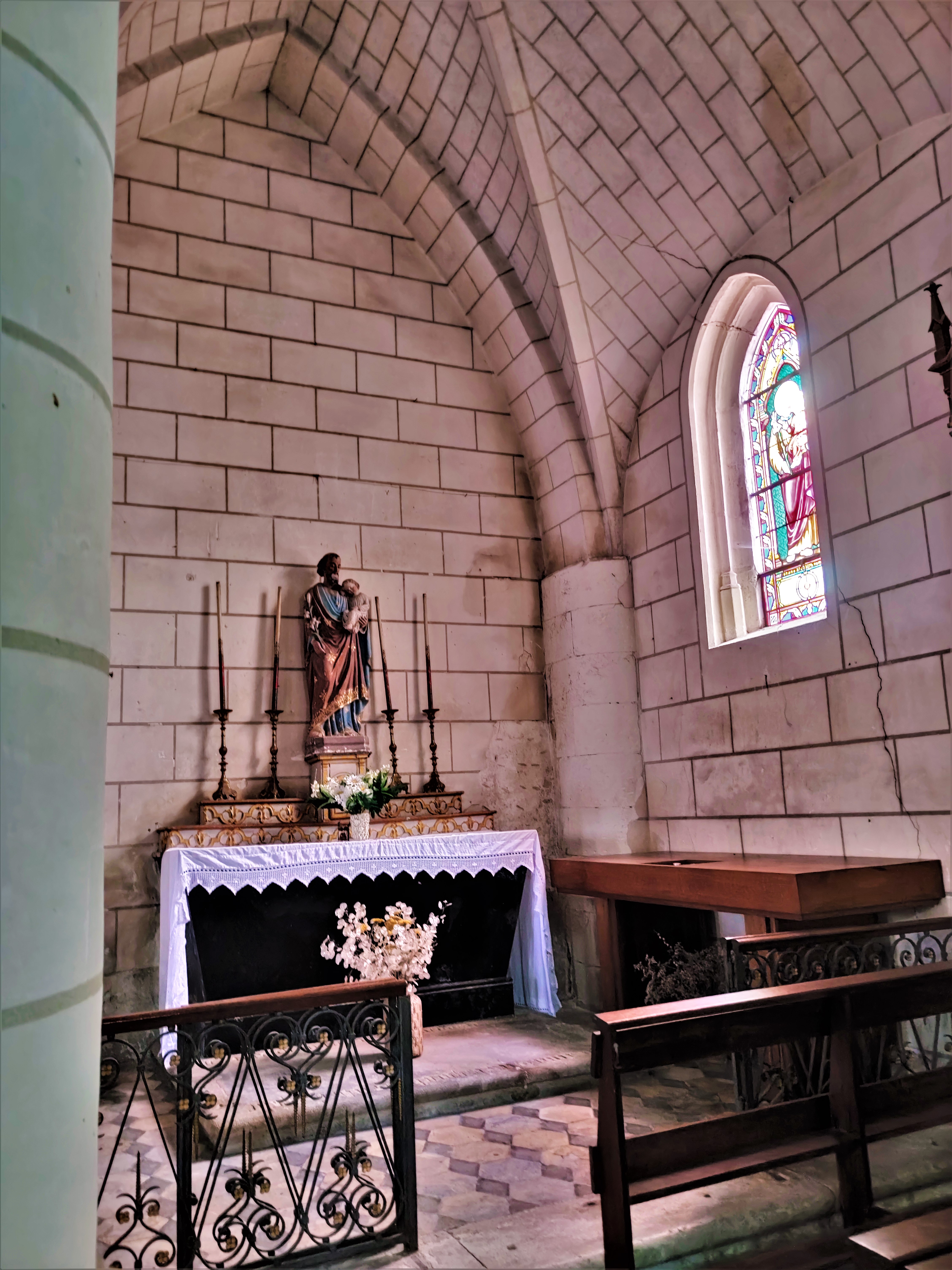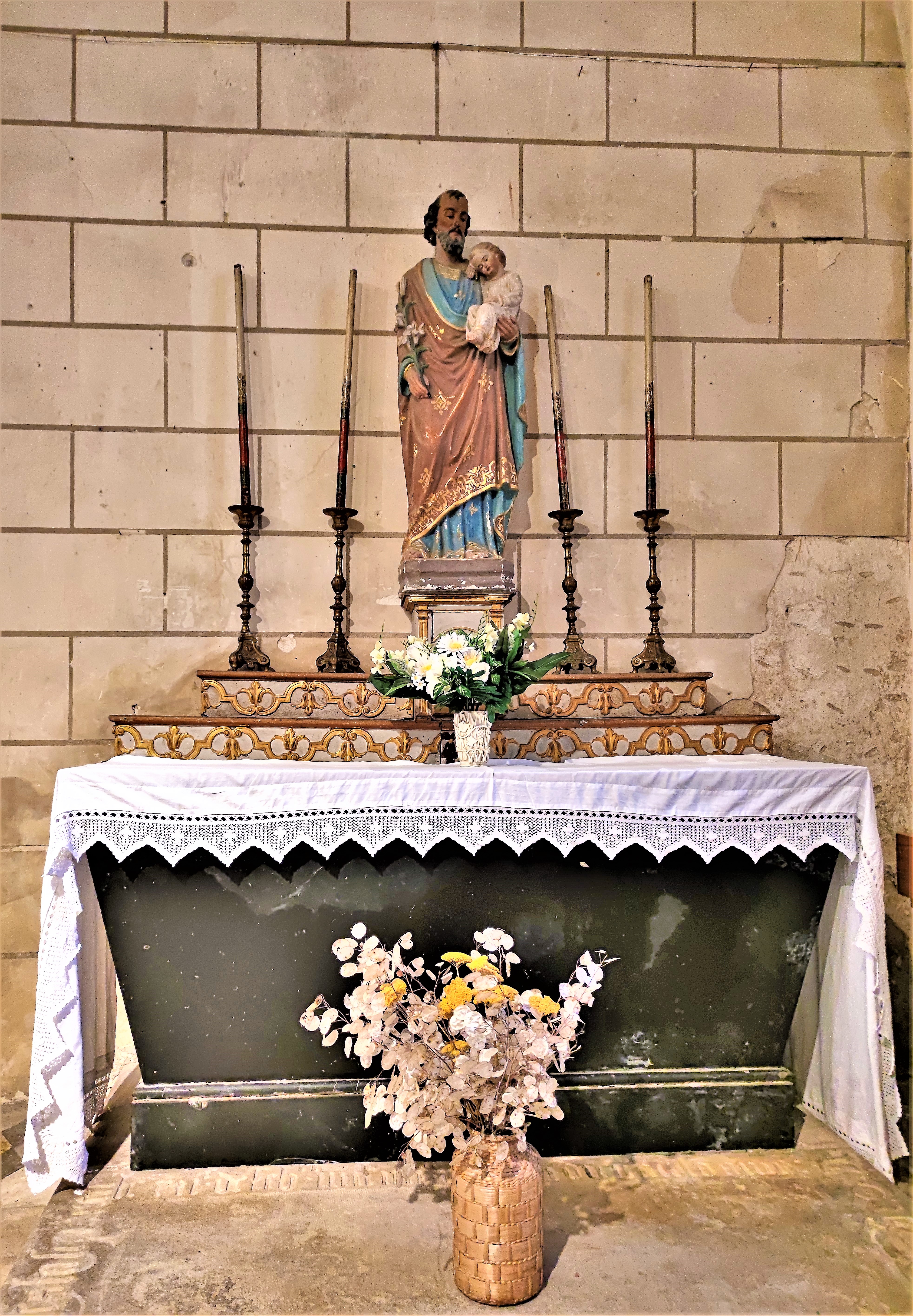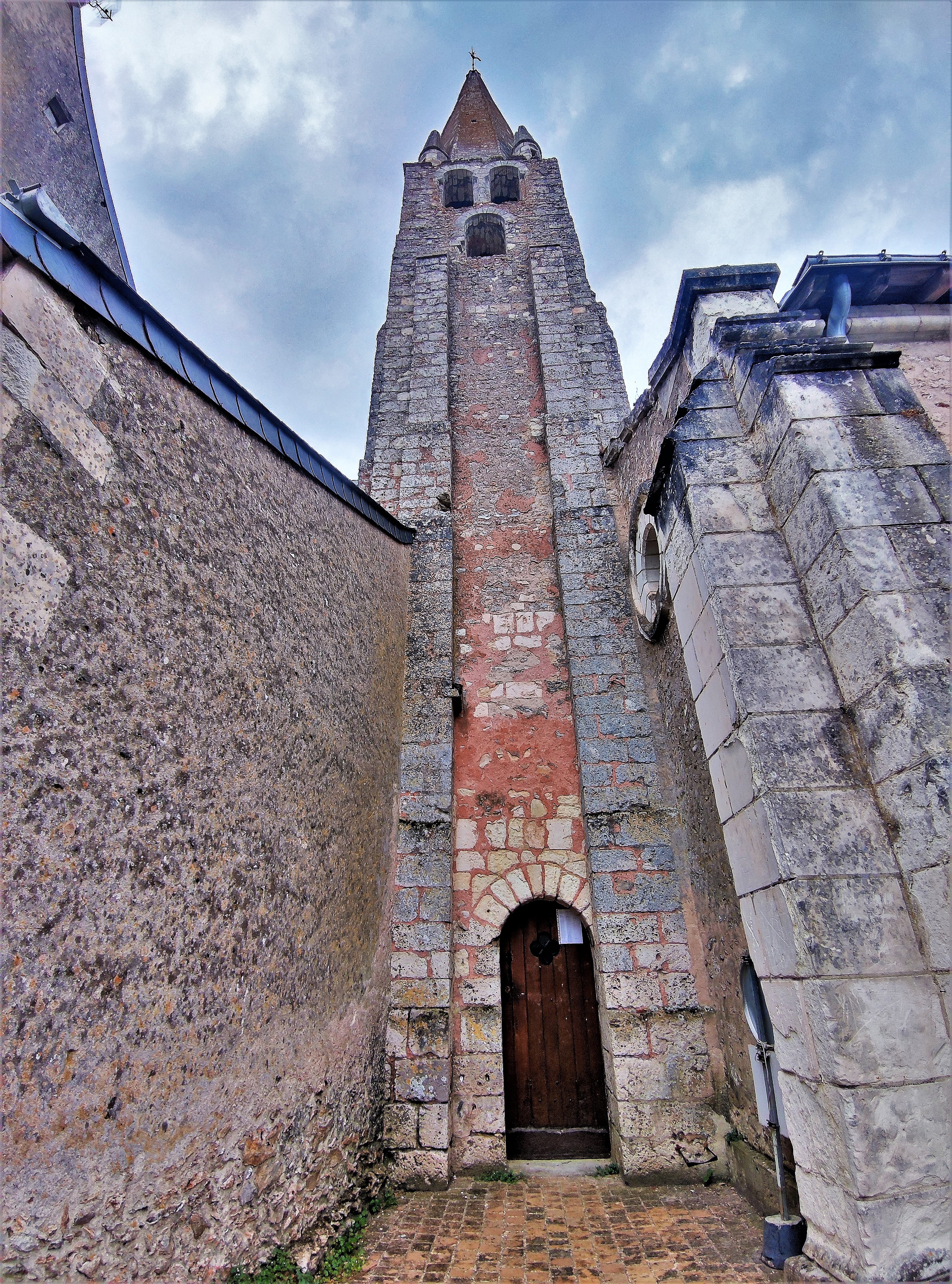 Pour y entrer, vous devez contacter la mairie située de l'autre côté de la place. L'église Saint-Martin est protégée par les MH depuis 1926 (inscription). Construite au 12ème, elle fut modifiée et agrandie au 14ème et au 15ème, la façade et la nef à 3 vaisseaux furent reconstruites au 19ème. On pénètre par le clocher, vestige de l'église primitive. Dans la partie basse de ce clocher, un placard abrite l'étrange accès aux parties hautes !!! Une échelle y est logée, une encoche dans la pierre indique où mettre son pied pour entrer dans le placard (Là, je pense au campaniste). Cette église a remplacé une église du 10ème siècle, elle porte la mémoire de plus d'un millénaire de la vie du village de Tauxigny. L'église de Saint-Bauld, également millénaire possède une fresque du 16ème, elle mérite aussi une visite.