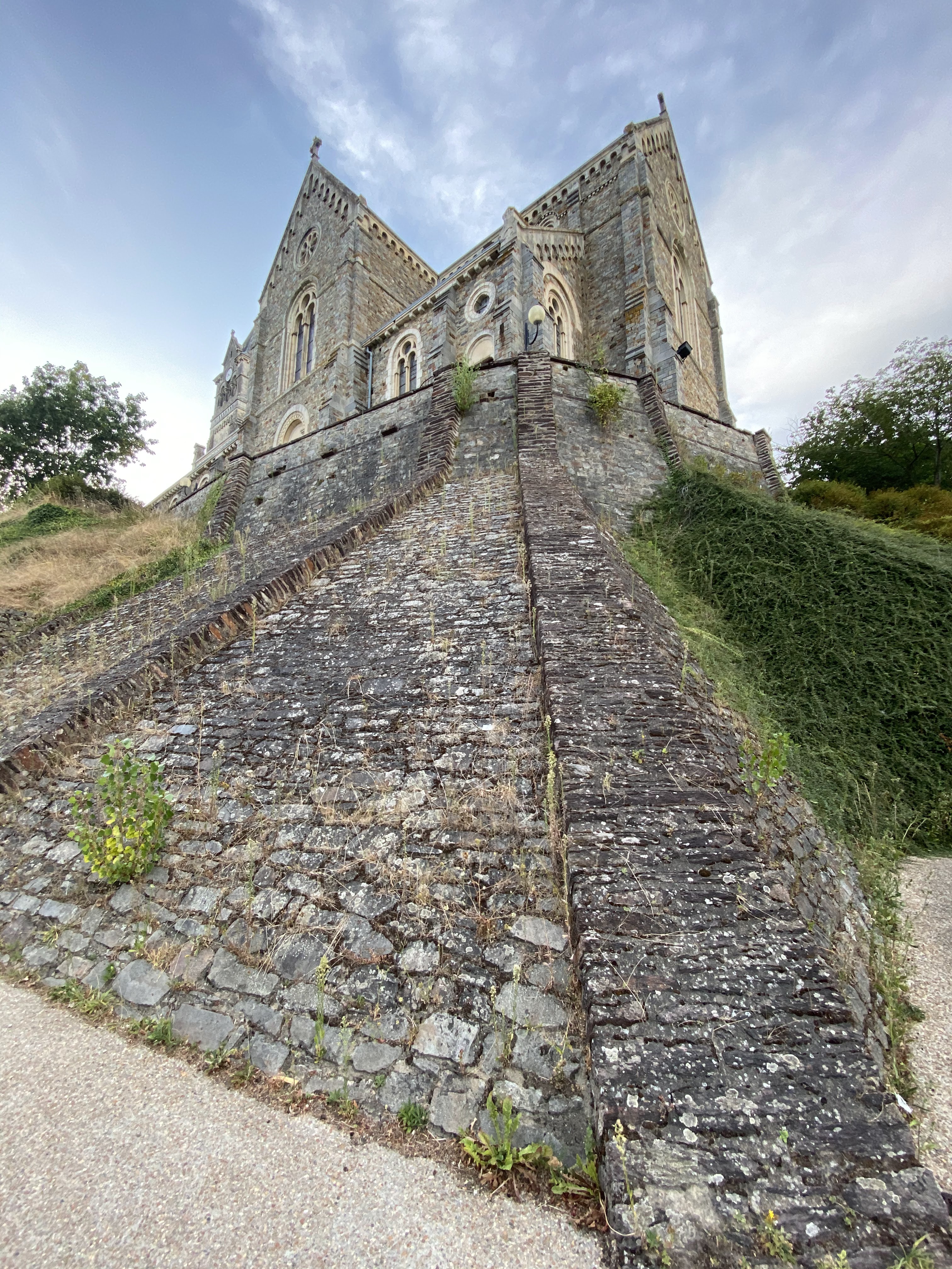 L'église se dresse sur une colline et constitue un bel élément dominant de la ville.