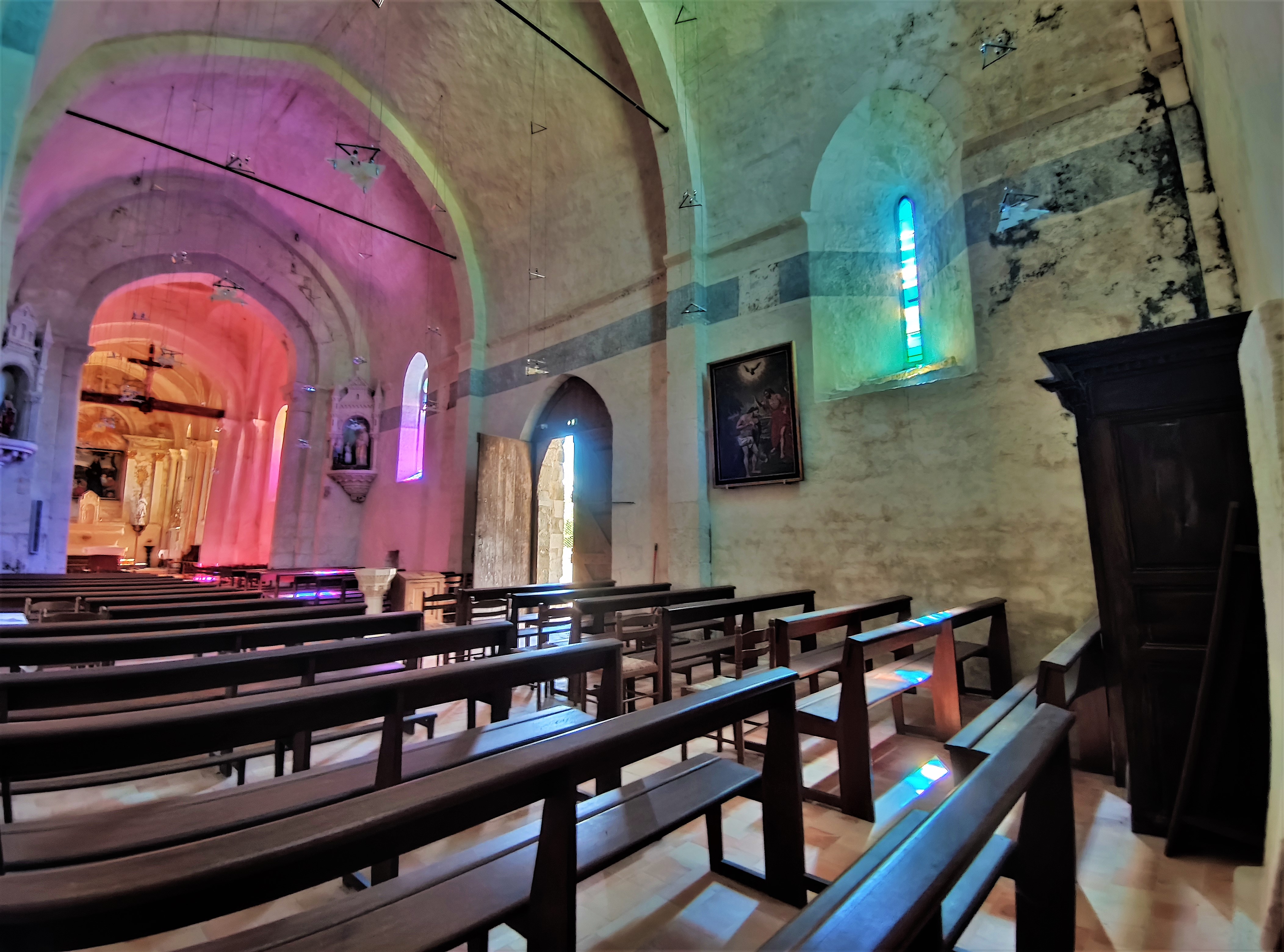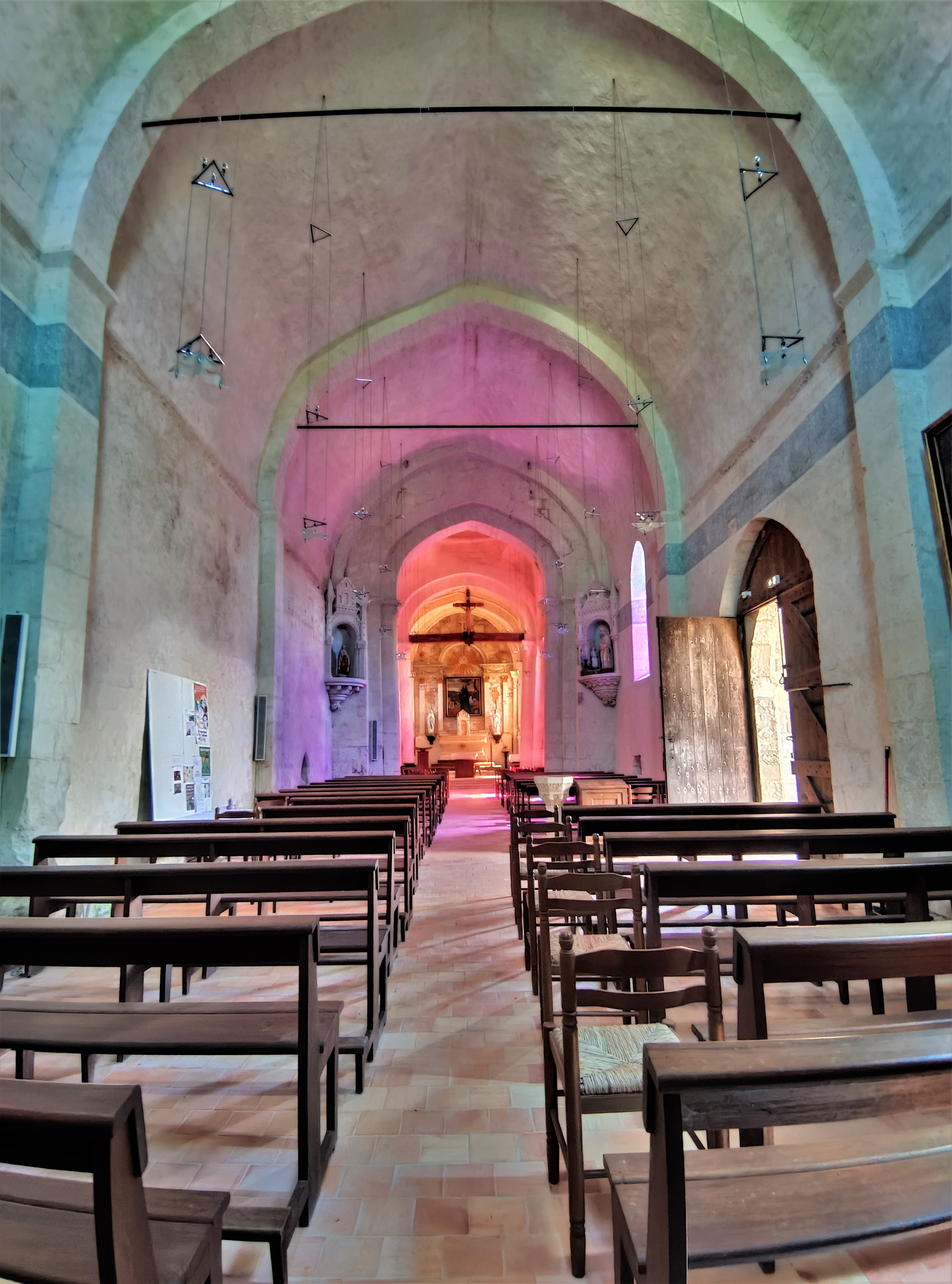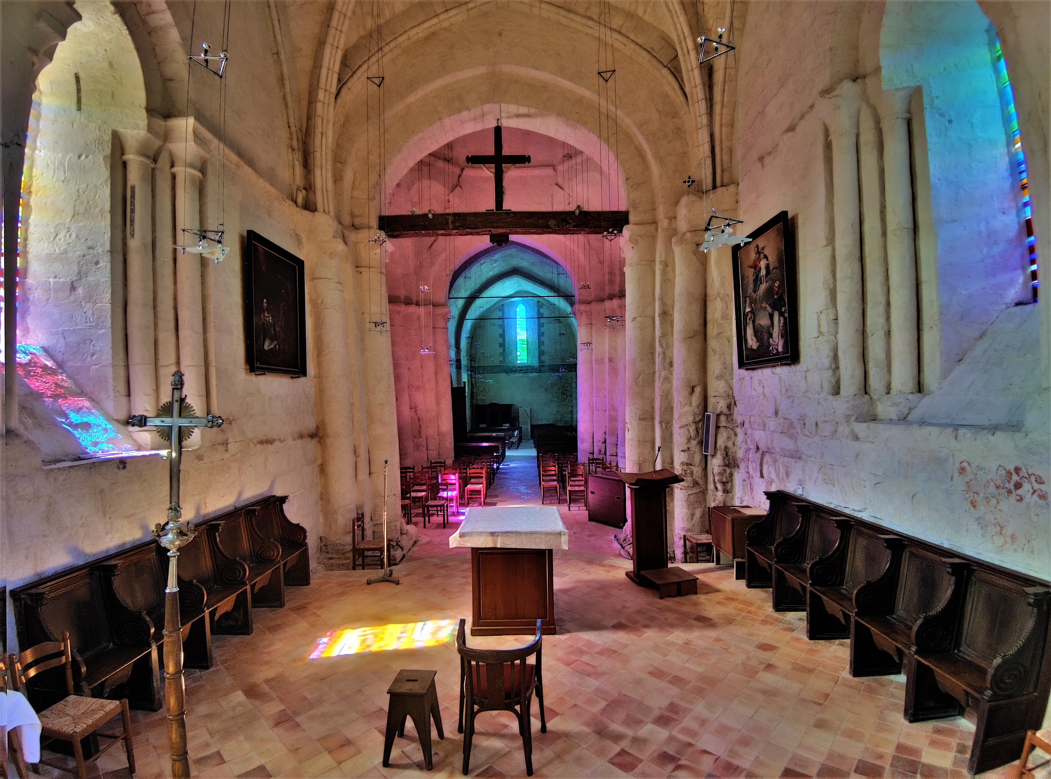 Souvent restaurée de 1985 à 2013, cette église propose un superbe voyage dans le temps. Une église du 11ème marquée par les évènements qu'elle a traversé, mais qui, malgré un chœur sans doute du 15ème, respire l'époque romane. Témoin millénaire de la vie de cette cité, les amateurs apprécieront cette sensation d'authenticité. Peu d'informations sur les conséquences de la guerre de cent ans, mais des certitudes sur celles des guerres de religions. On sait qu'aux 15ème et 16ème de violentes confrontations ont eu lieu dans cette région très protestante. L'église fut rehaussée pour être fortifiée.