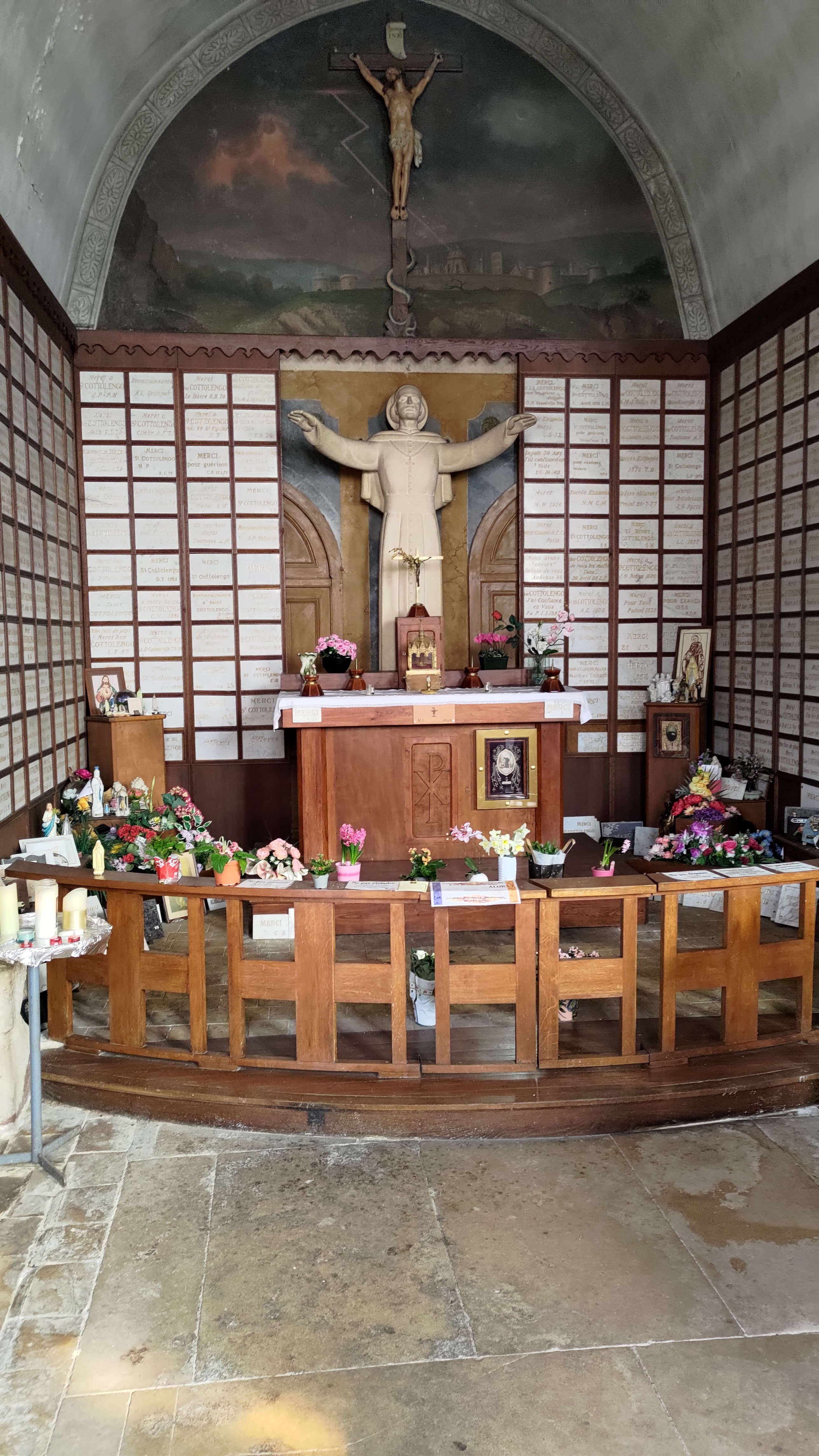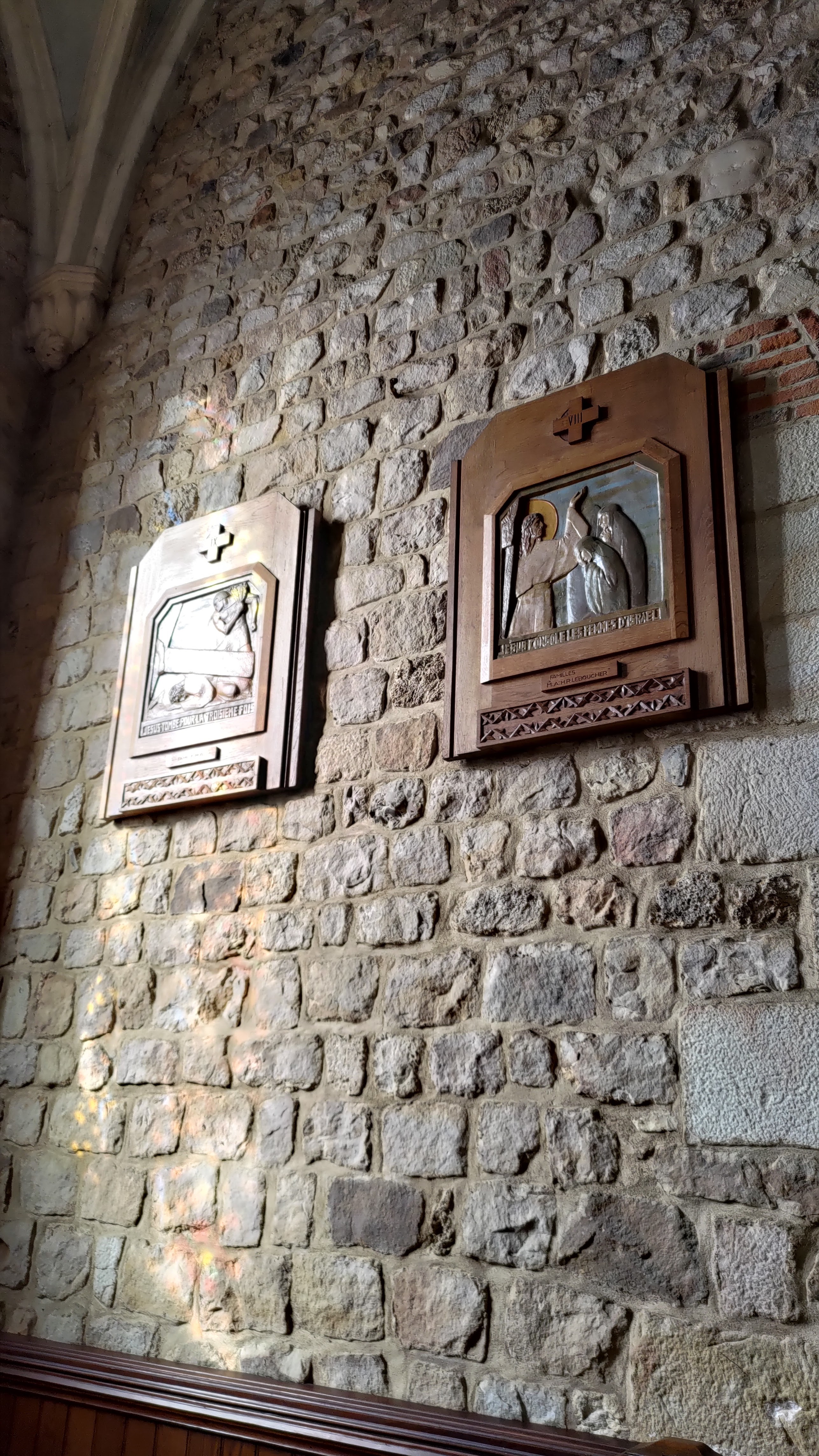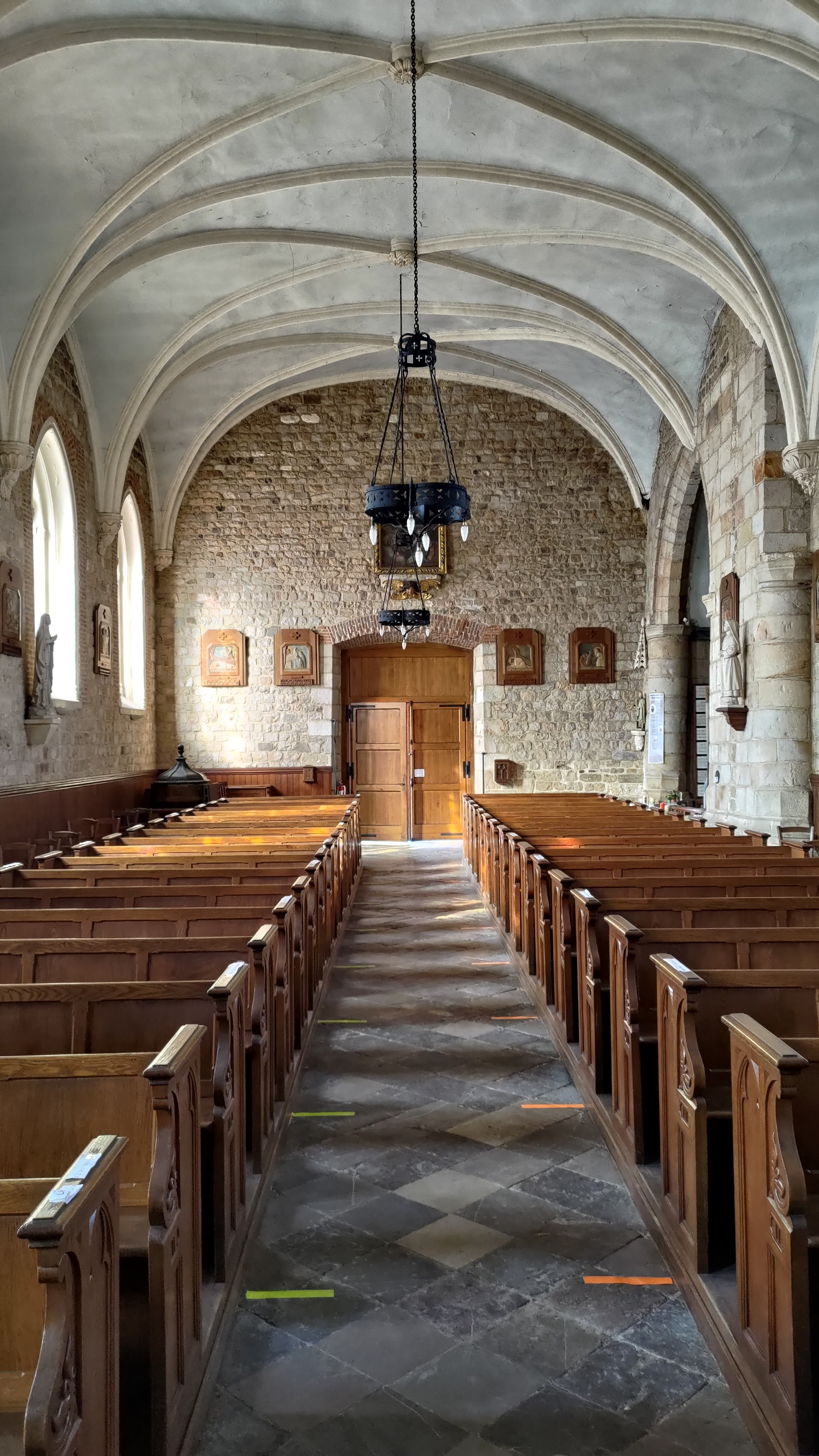 Joli endroit avec chapelle + église. L'église était fermée mais nous avons pu faire le tour de la chapelle. En face joli bâtiment avec quelques panneaux explicatifs de l'histoire du lieu.
