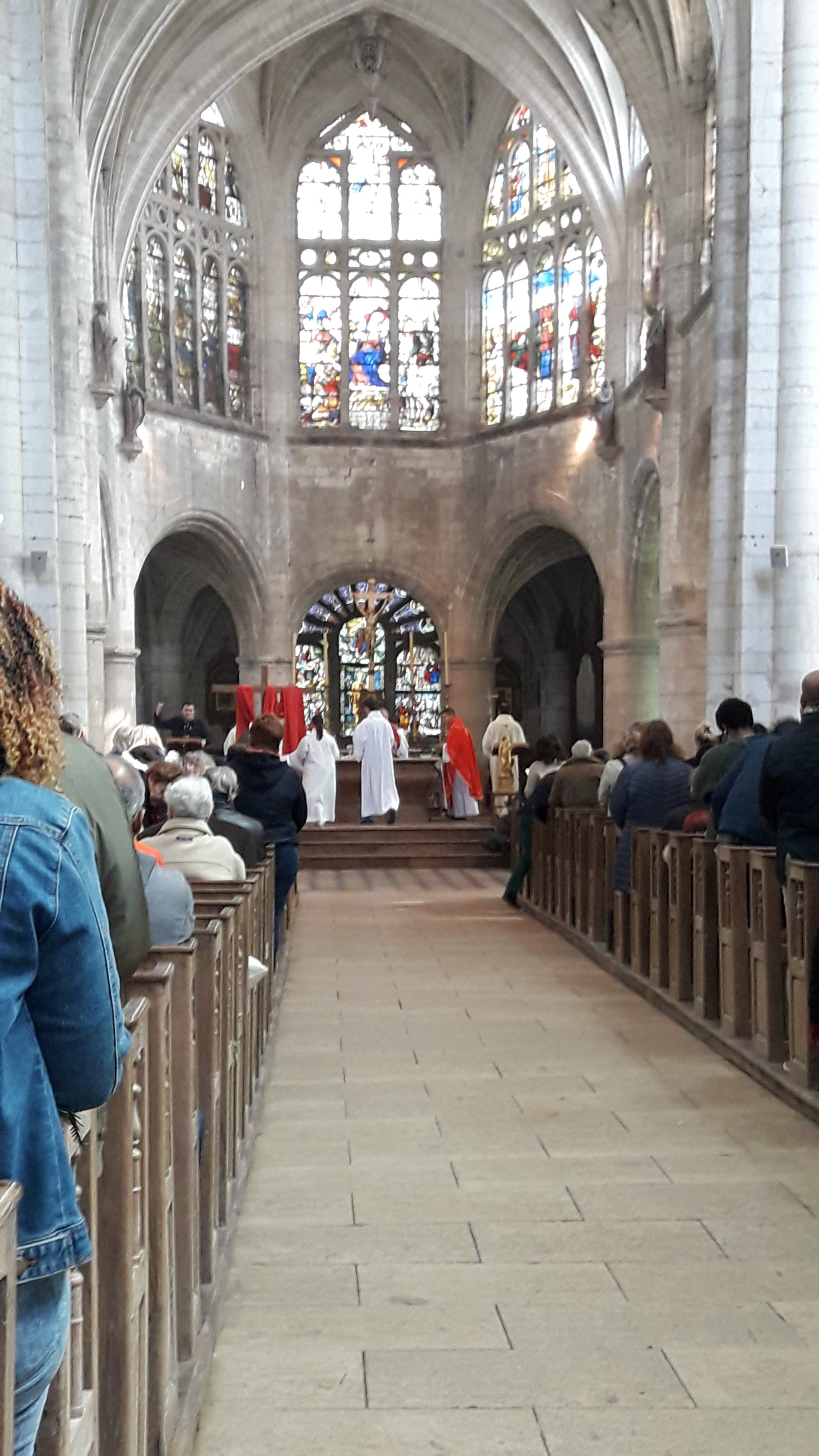 J'ai juste assisté à la fin de la messe, je suis venu chercher un adhérent APF France handicap en fauteuil roulant