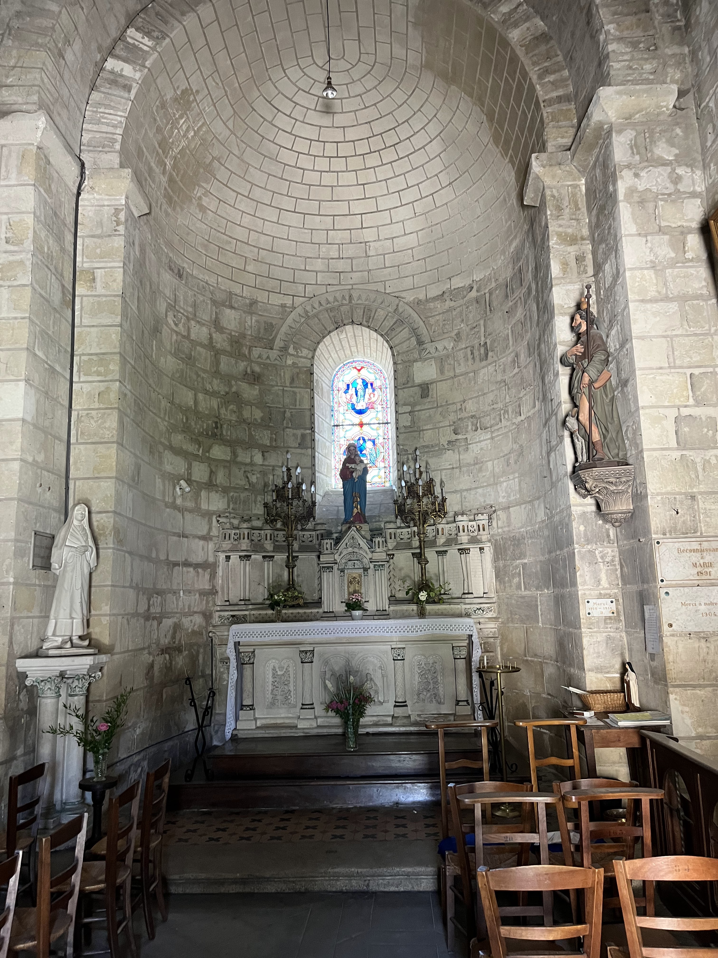 Il s'agit de l'église paroissiale Saint-Médard, mais elle abrite un reliquaire de Saint-Martin de Tours. Une belle église du 11ème siècle avec un clocher plus récent (15ème siècle probablement) qui propose des originalités architecturales : le chœur est voûté en berceau comme la croisée, les deux absidioles sont voûtées en cul de four et la nef possède une voûte de bois.
