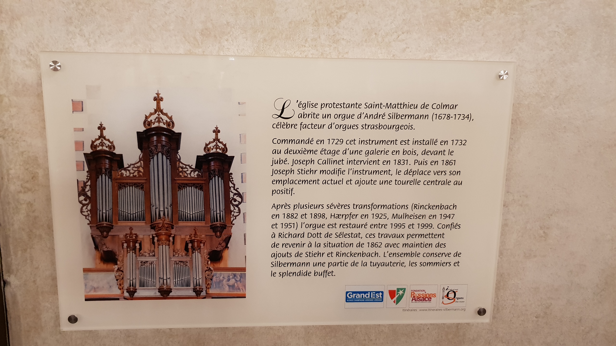 L'église Saint-Matthieu est une ancienne église franciscaine dont la nef a été construite en 1292. Après une longue histoire, en 1937 le chœur fut restitué aux protestants. Ce que je peux apprécier, c'est qu'il n'est pas seulement utilisé comme lieu de culte. Grâce à son acoustique exceptionnelle, les concerts du Festival international de musique de Colmar y ont lieu chaque année.
