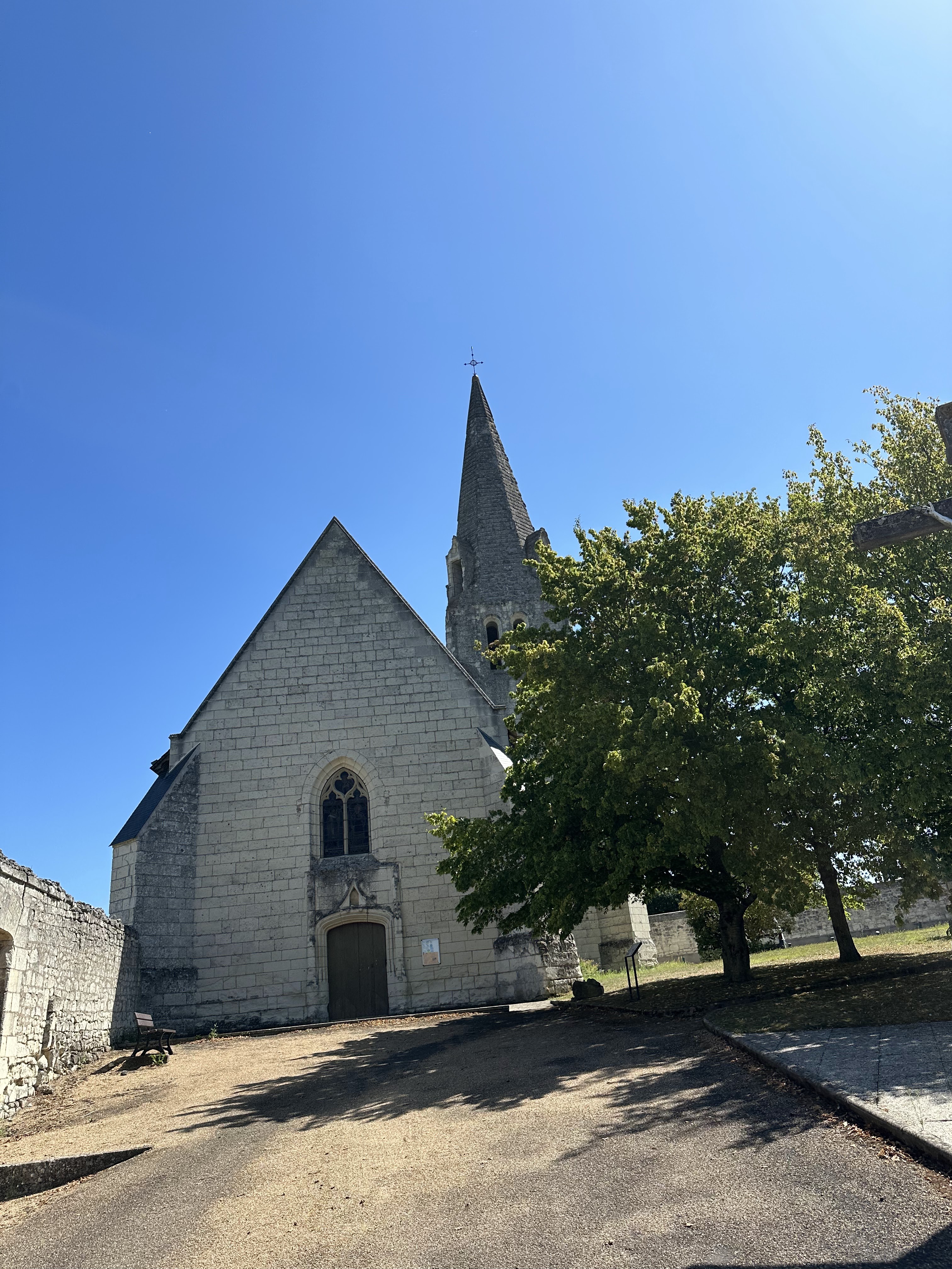 Belle vieille église au milieu des vignes au bord du vélo de Saumur