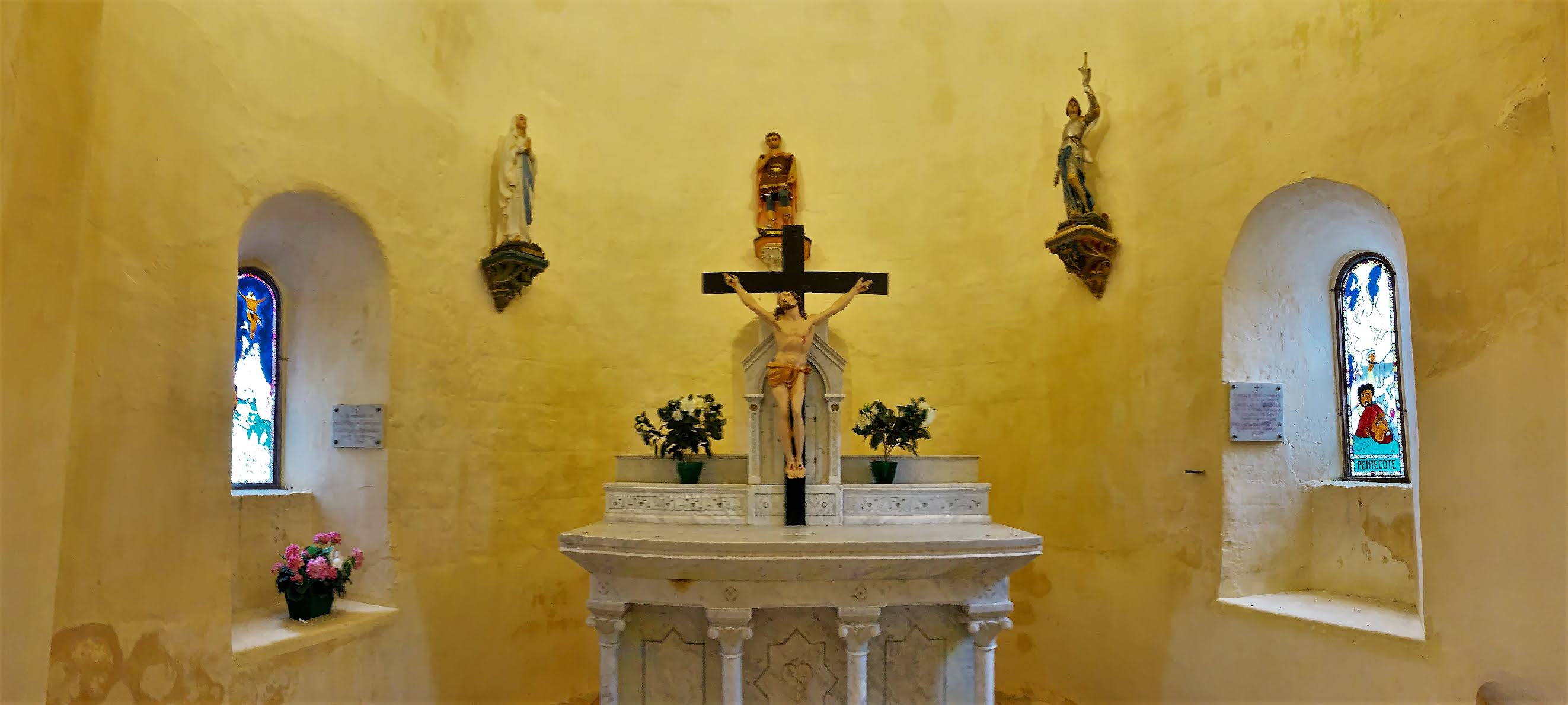 Si vous n'êtes plus entré dans une église depuis fort un longtemps, vous trouverez ici matière à méditer: tout d'abord elle est ouverte (merci) , elle date des X et Xl siècle et recèle un joyau souterrain…