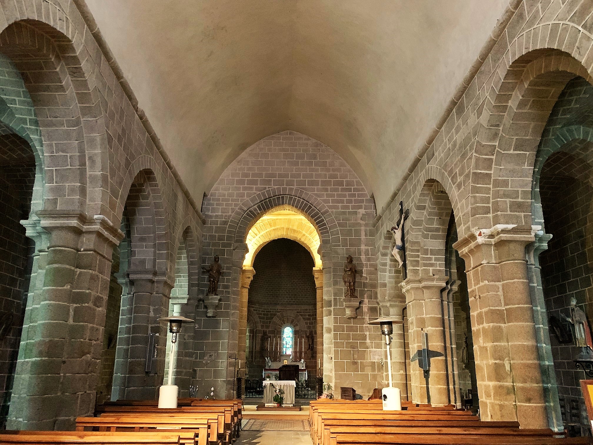 Une église romane du 12ème, en superbe état, classée en 1909, faites le détour, elle le mérite. Construite essentiellement en granit, des apports de calcaire ont été inclus pour quelques décors sculptés. Fortifiée au moment de la guerre de cent ans, elle a bénéficié de campagnes régulières de restaurations, difficiles à datées pour celles supposées du 14ème et 15ème siècles, datées avec certitude pour celles du 19ème et 20ème. Cette église de Charente-limousine est typique, du portail au chevet pentagonal. La nef est voûtée en berceau brisé, les collatéraux en Voûte d'arêtes, la croisée du transept en coupole allongée à trompes, le chœur en demi-coupole. Faites le détour, elle le mérite.