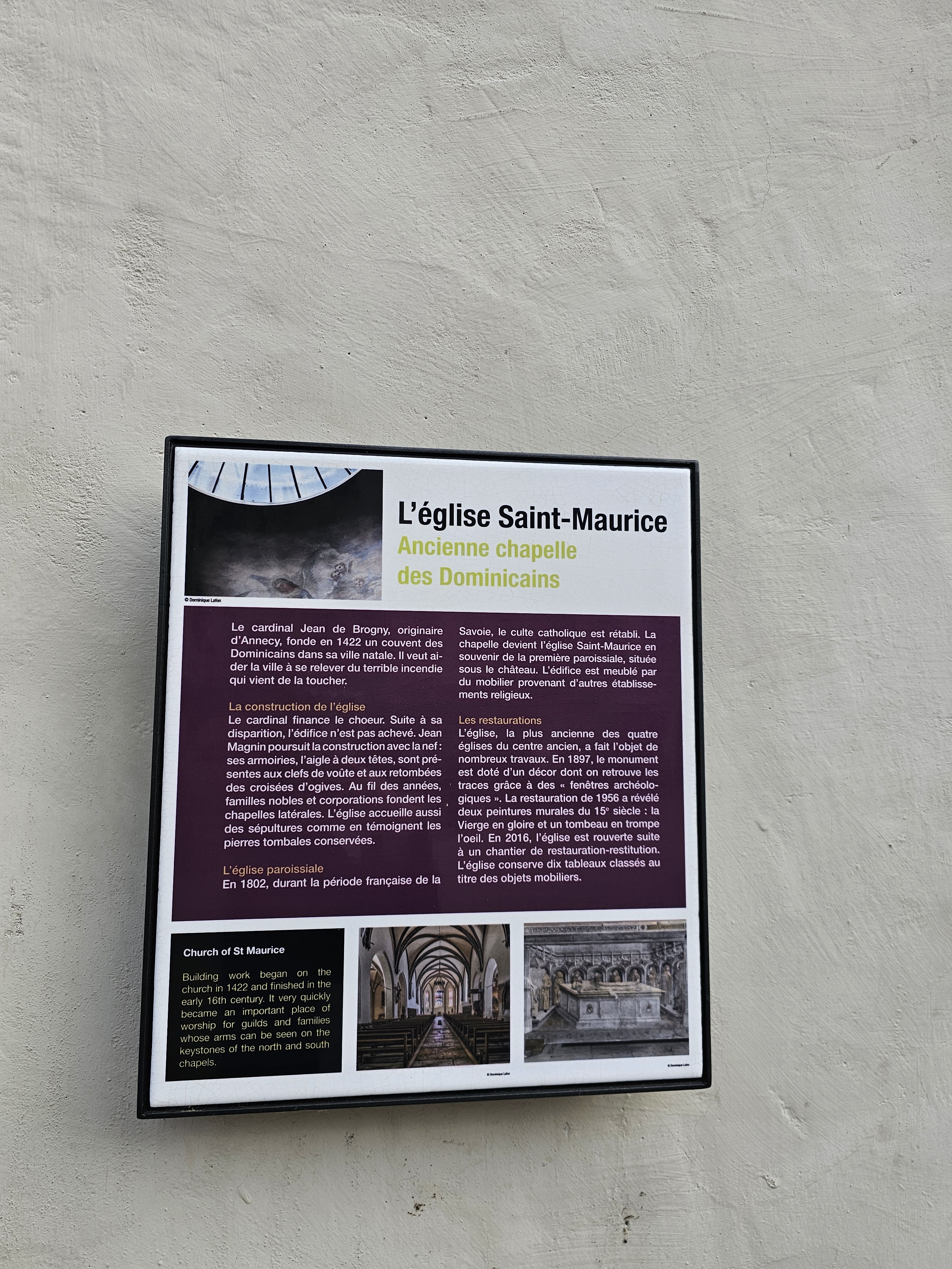 Église San Maurizio, la plus ancienne d'Annecy, lieu de première communion et de confirmation de Saint François de Sales. Ici, en tant qu'évêque, il enseignera le catéchisme aux plus petits. Pas tenu parfaitement