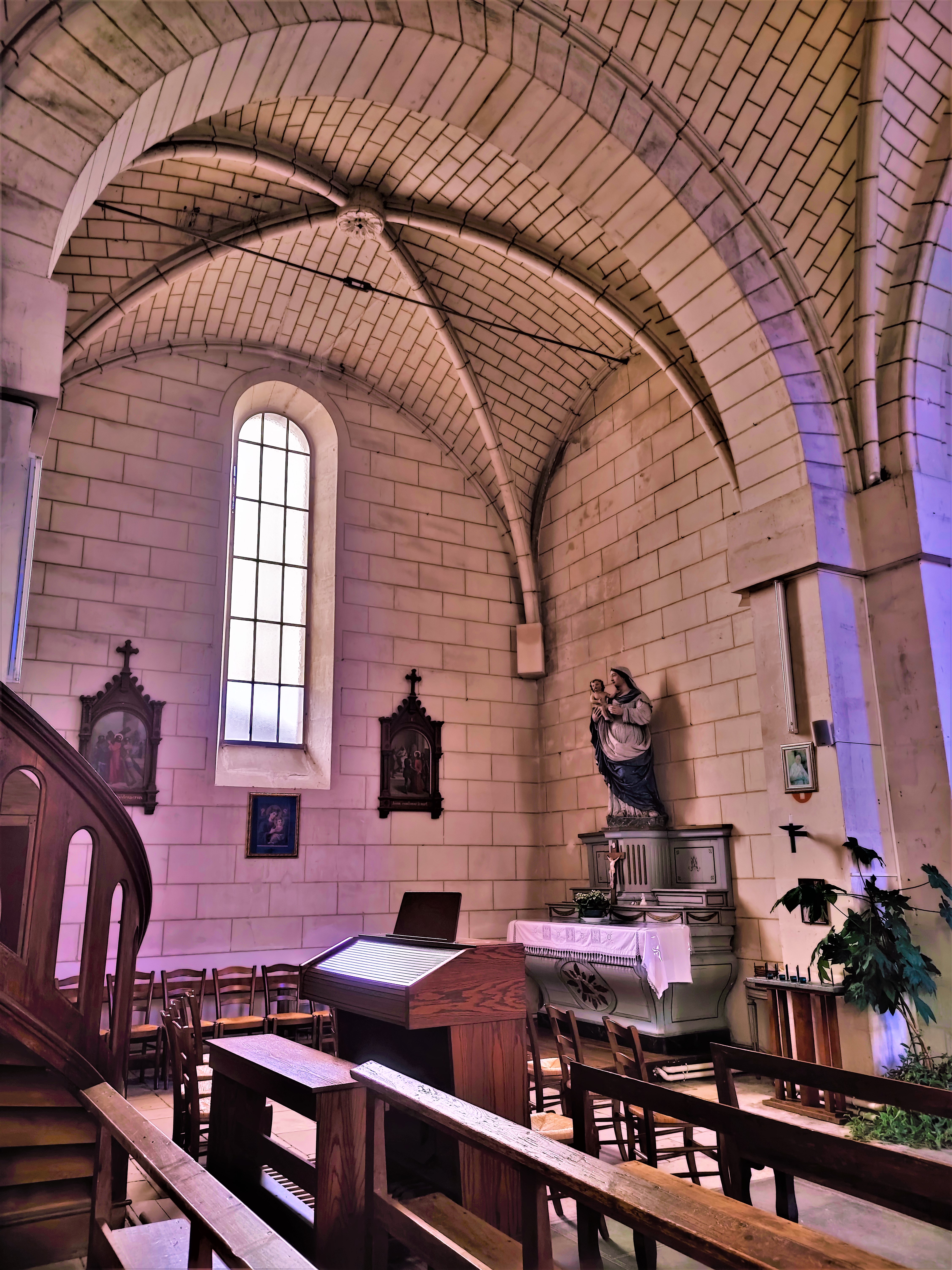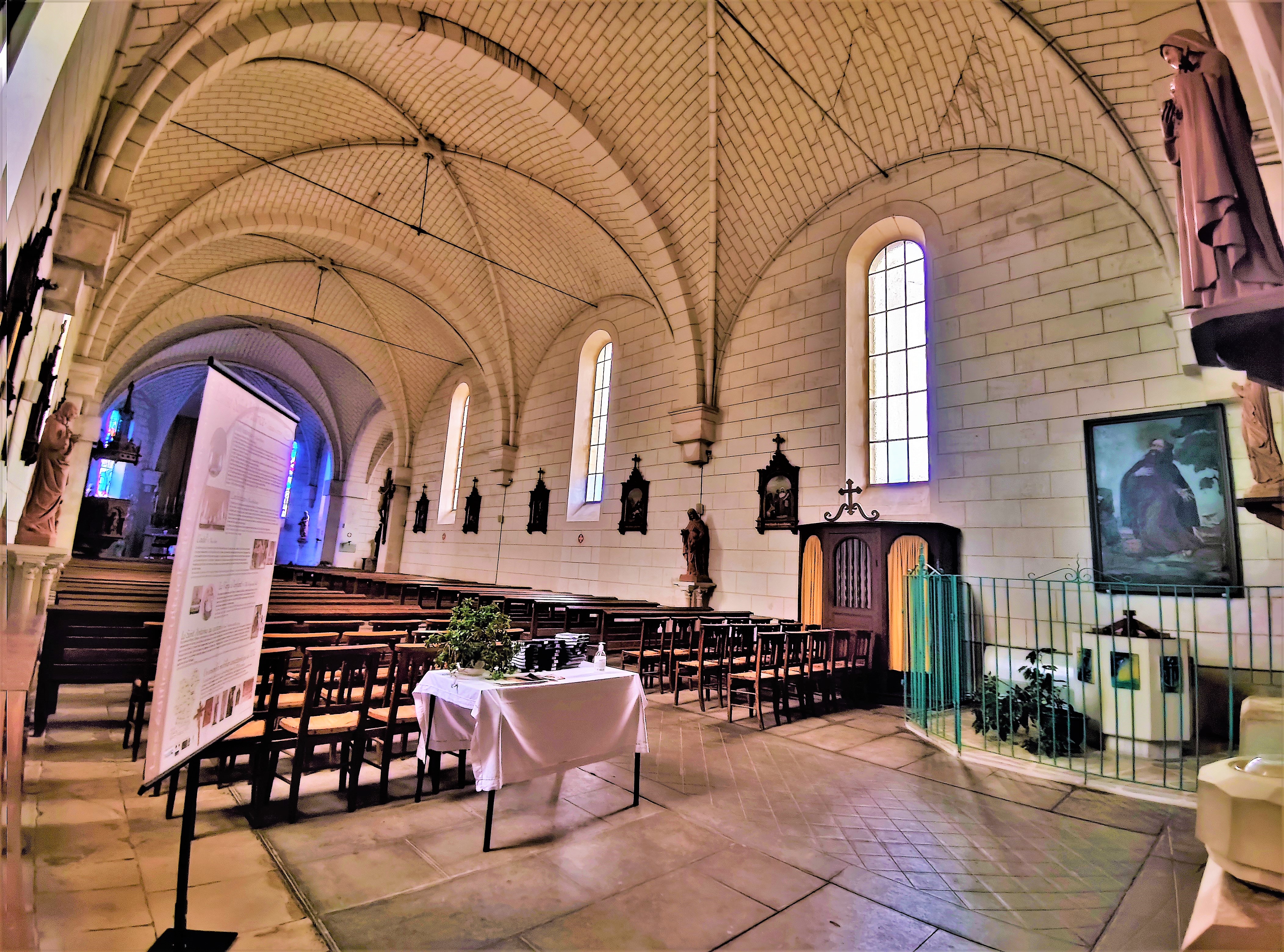 Une belle église du 19ème, construite à force de volonté par des décideurs qui ont su persévérer. On peut regretter que des éléments de l'église du 11ème siècle ne soient pas réutilisés mais, au 19ème, on ne se souciait pas de la préservation du patrimoine. Il faut passer à la mairie pour emprunter les clés, on m'y a offert un dossier très complet, édité en 1996, de l'histoire de l'église. L'édifice abrite de beaux objets, une statuaire importante, un tableau original et quelques vitraux : des éléments du 17ème, d'autres contemporains. Une visite agréable dans une commune particulièrement accueillante.