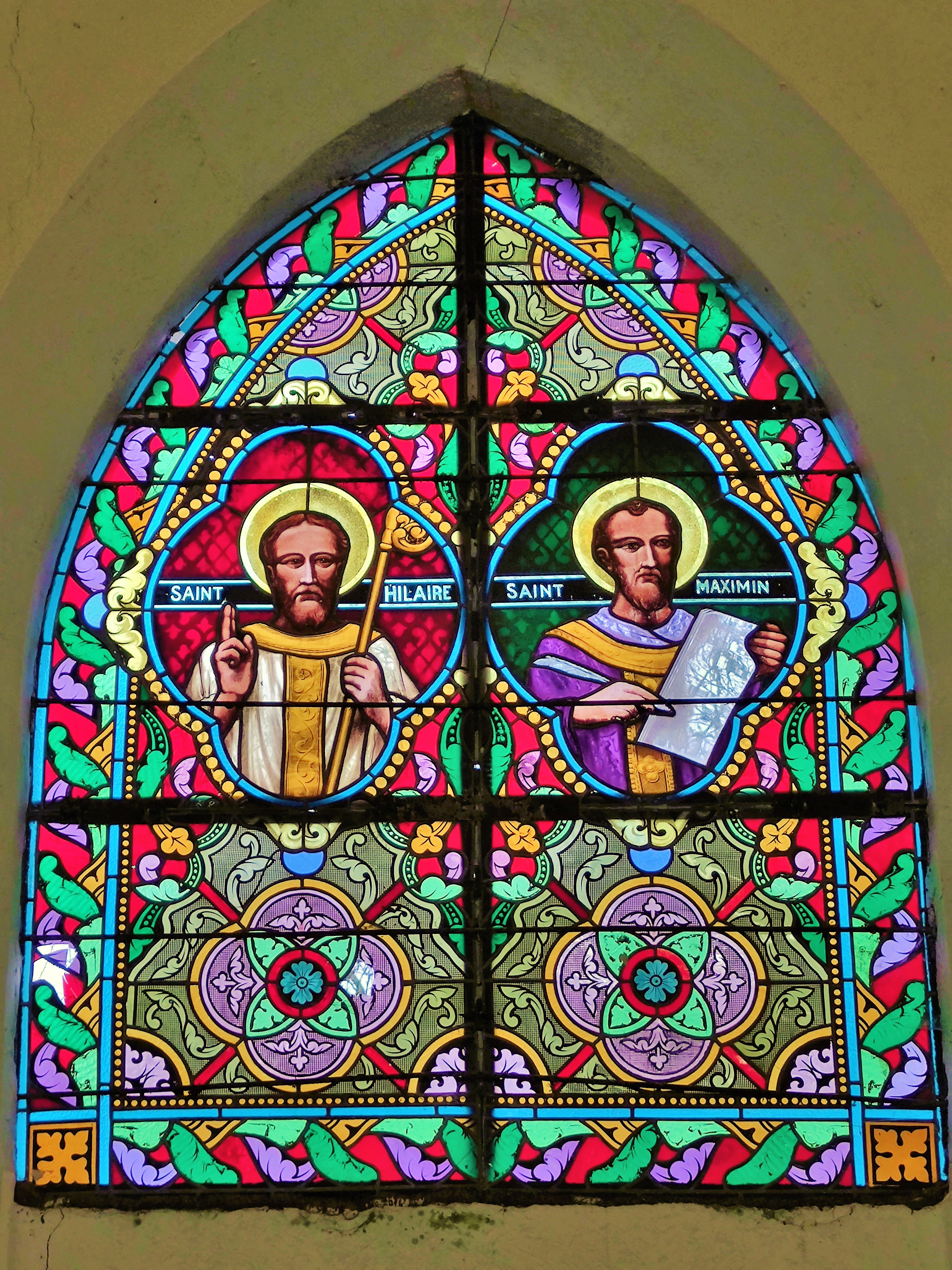 Il faut emprunter les clés à la mairie toute proche. Si l'extérieur de l'église n'est pas attirant, l'intérieur est vraiment joli. Au début 12ème il existait une église rattachée à l'abbaye de Saint-Maixent. Au 15ème, une église est reconstruite, il reste quelques vestiges dans le chœur. l'église actuelle date essentiellement du 17ème, le clocher est du 19ème. Les murs gouttereaux de la nef sont aveugles, l'éclairage vient des deux baies ouvertes dans la façade Ouest, de part et d'autre du clocher-porche. Le chœur et les deux chapelles Nord et Sud qui font transept apportent aussi beaucoup de lumière. L'église est bien entretenue, elle est fort accueillante. Le plafond blanc de la nef bénéficie à l'éclairage, le vitrail axial du sanctuaire présente les deux titulaires, Saint-Hilaire et Saint-maximin. Un vieux crucifix, quelques statues et un joli mobilier meublent cet édifice.