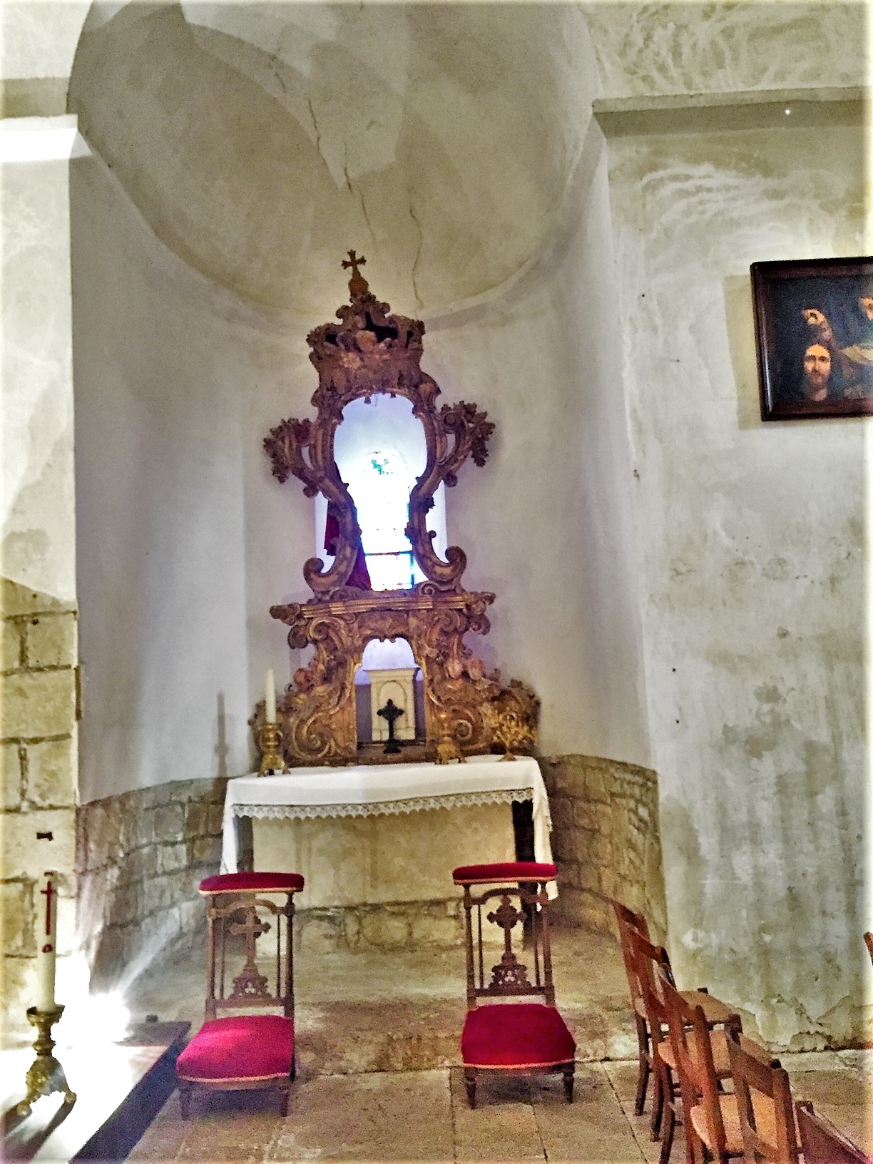 Église qui présente une ouverture décentrée et surtout un beau point de vue sur Verteuil !